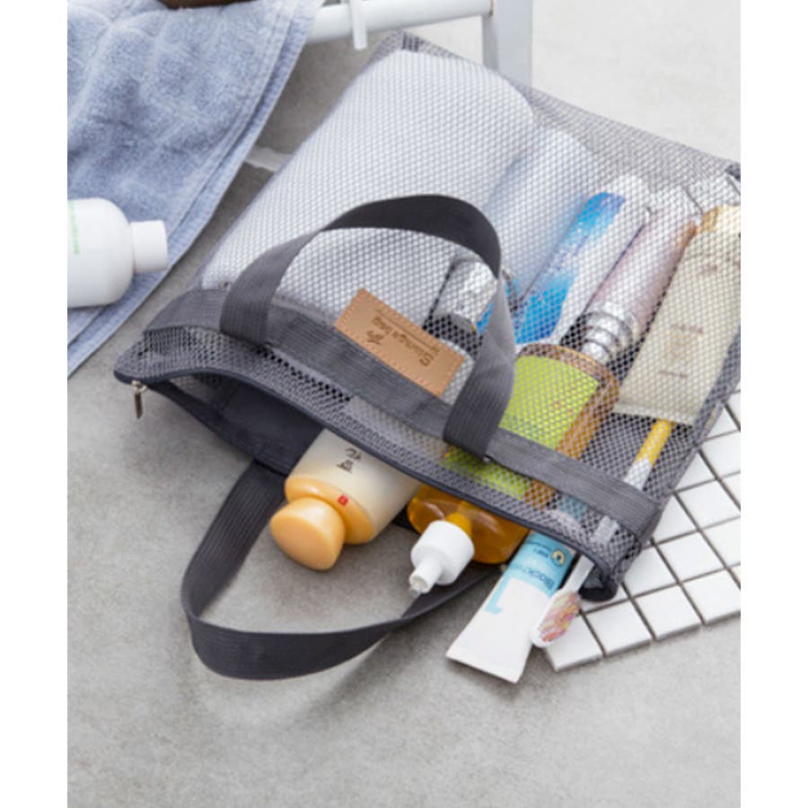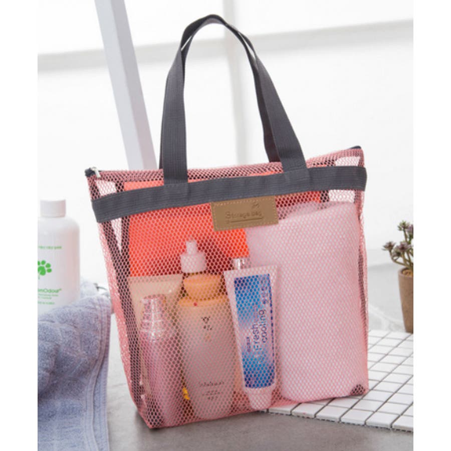 水切れ抜群のメッシュ素材を使用し、濡れたままのアイテムでもそのまま収納可能な便利グッズに!