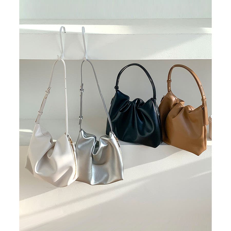 滑らかなスムースPUレザーにふっくらフォルムに仕立てたおしゃれなデザイン♪