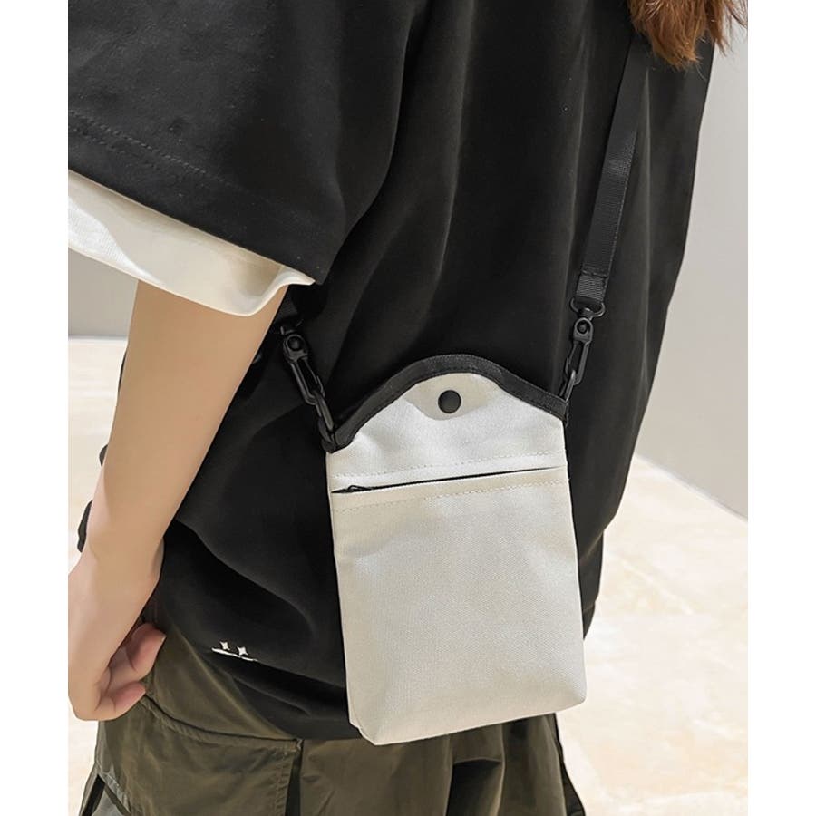 カジュアルバイカラー縦型ショルダーバッグ/スマホポーチ/スマホショルダー。