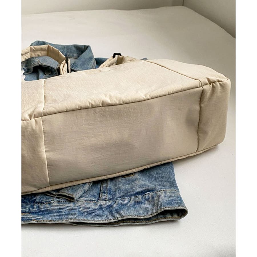 大きめながらバッグ自体はとっても軽いのも魅力の1つです。開口口にはファスナーが付いているので荷物が外から見えず安心◎