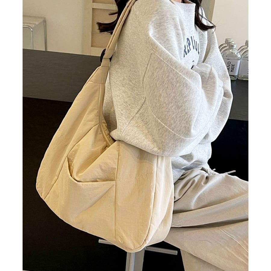 サラリとした肌触りのナイロンを使用し、程よく体にフィットする曲線シルエットを採用。使いごこちも抜群のショルダーバッグです。