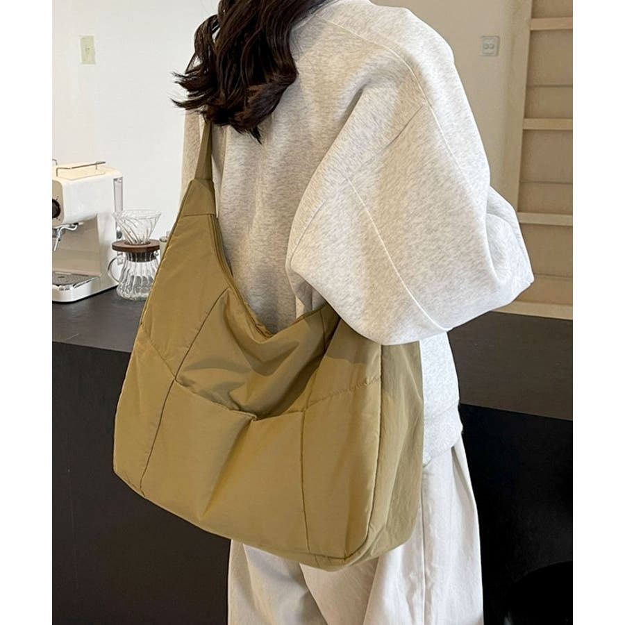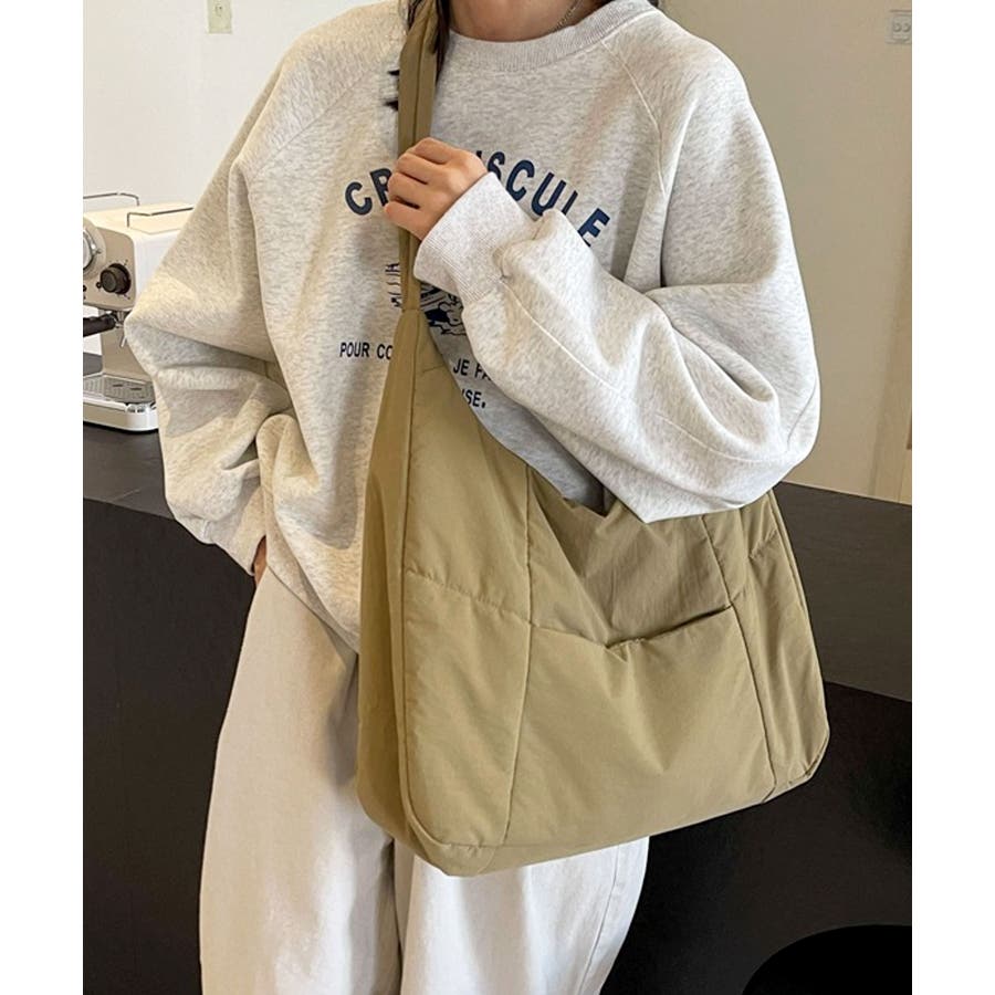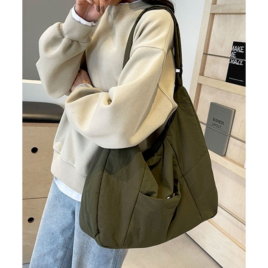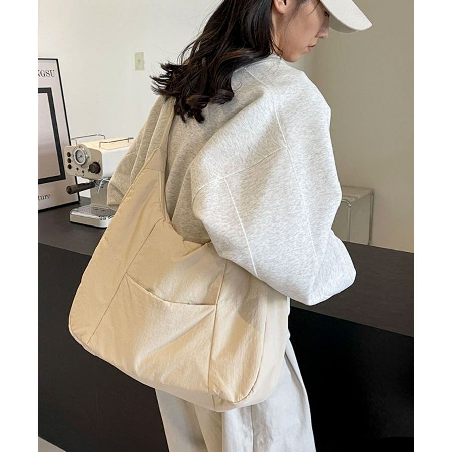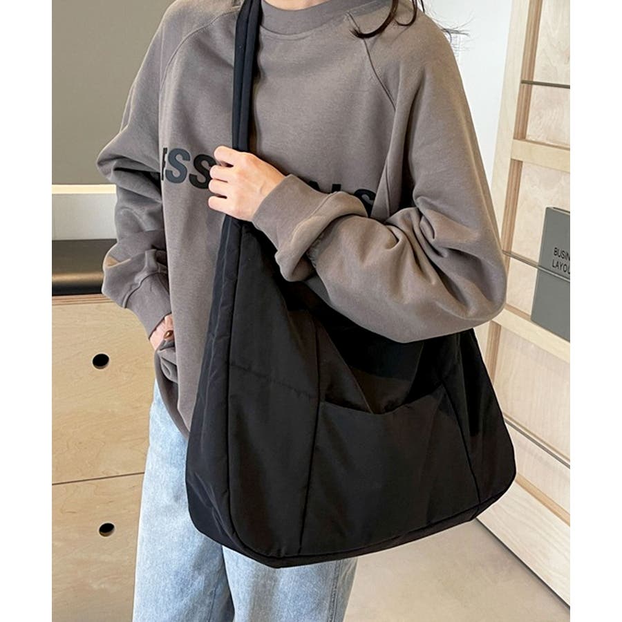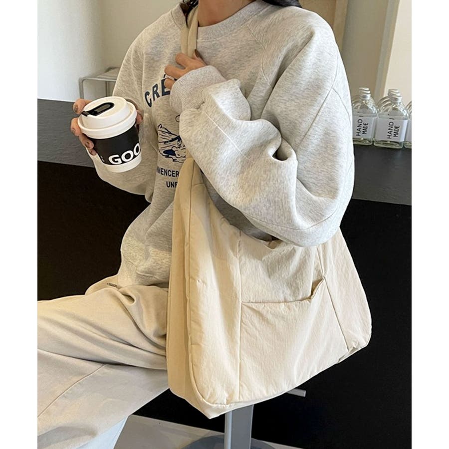 きれいめコーデや大人のカジュアルスタイルにもマッチする、大人かわいい大きめショルダーバッグに仕上げました。