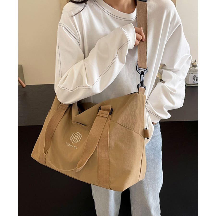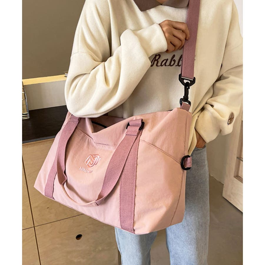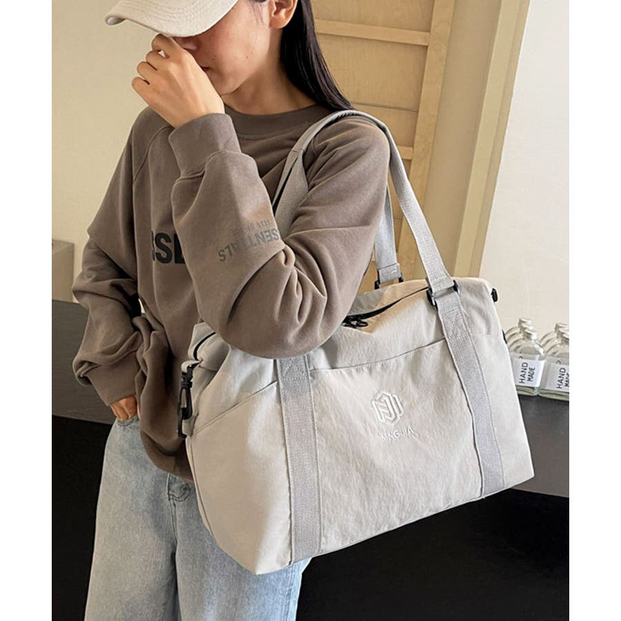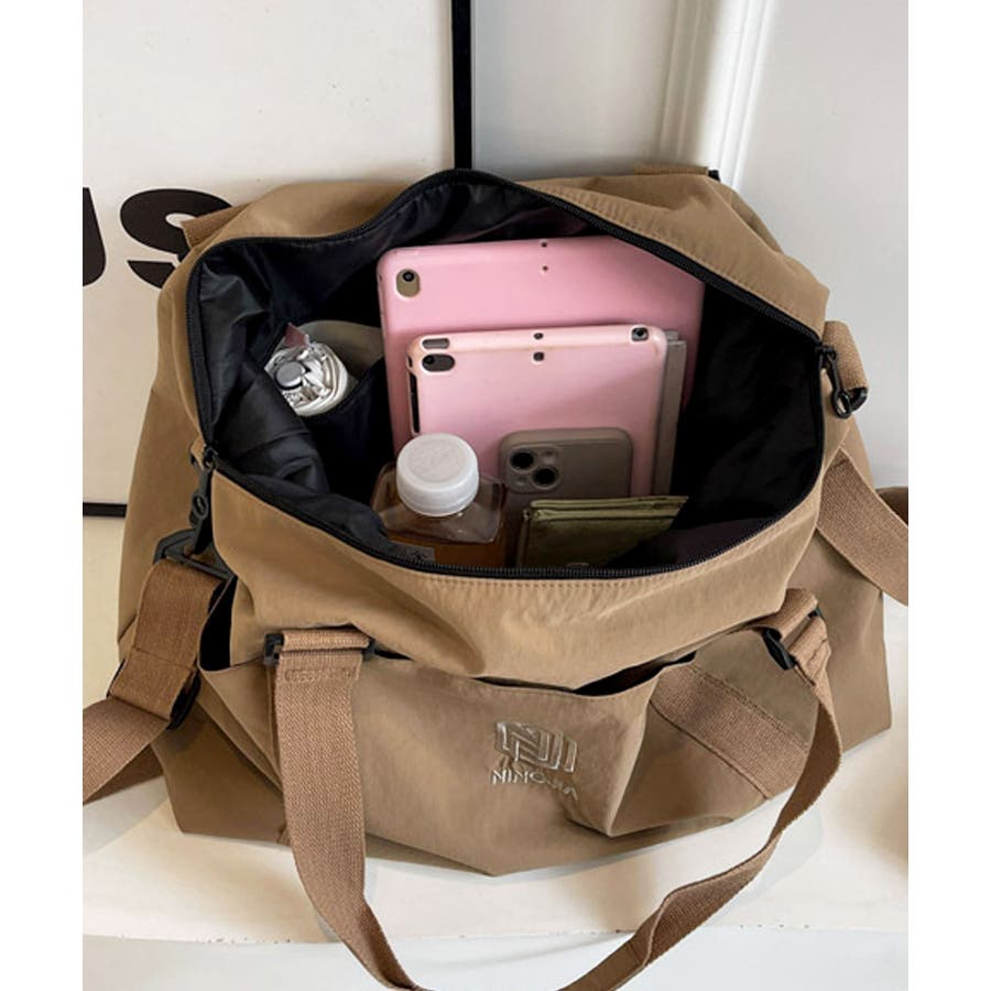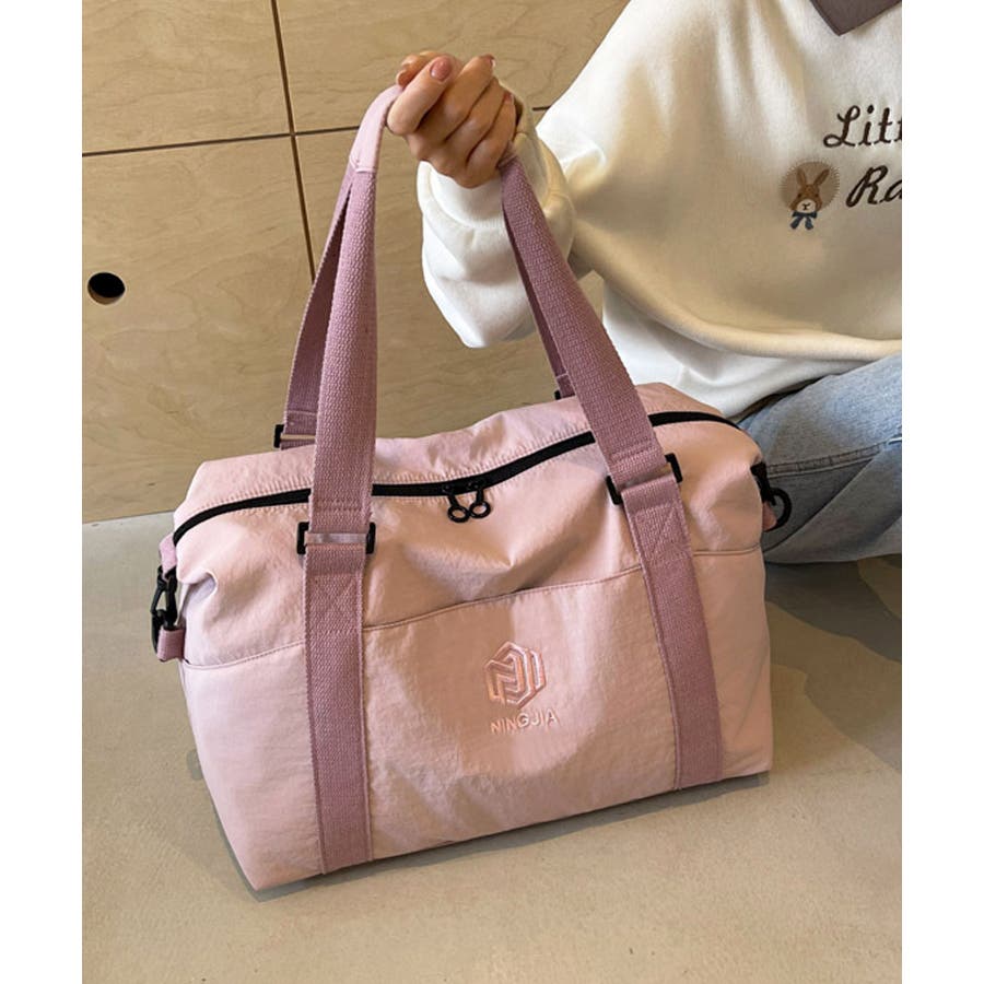 サラリとした肌触りのナイロン生地を使用し、どんな服にも合わせやすいシンプルカジュアルなボストンバッグに♪