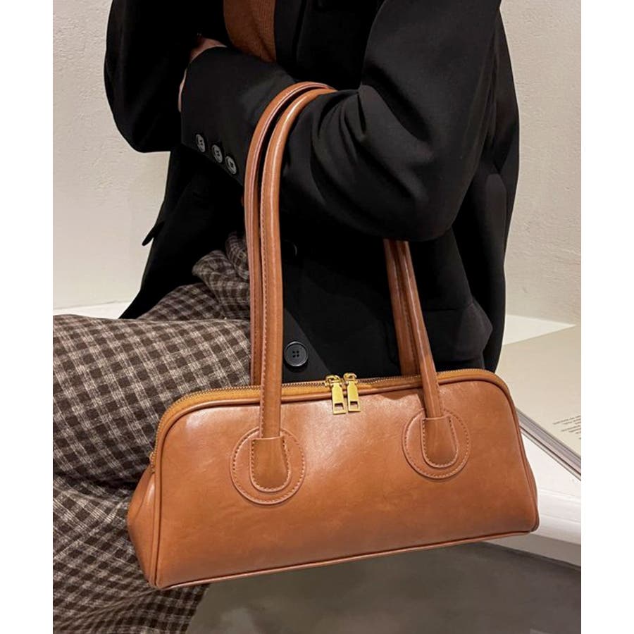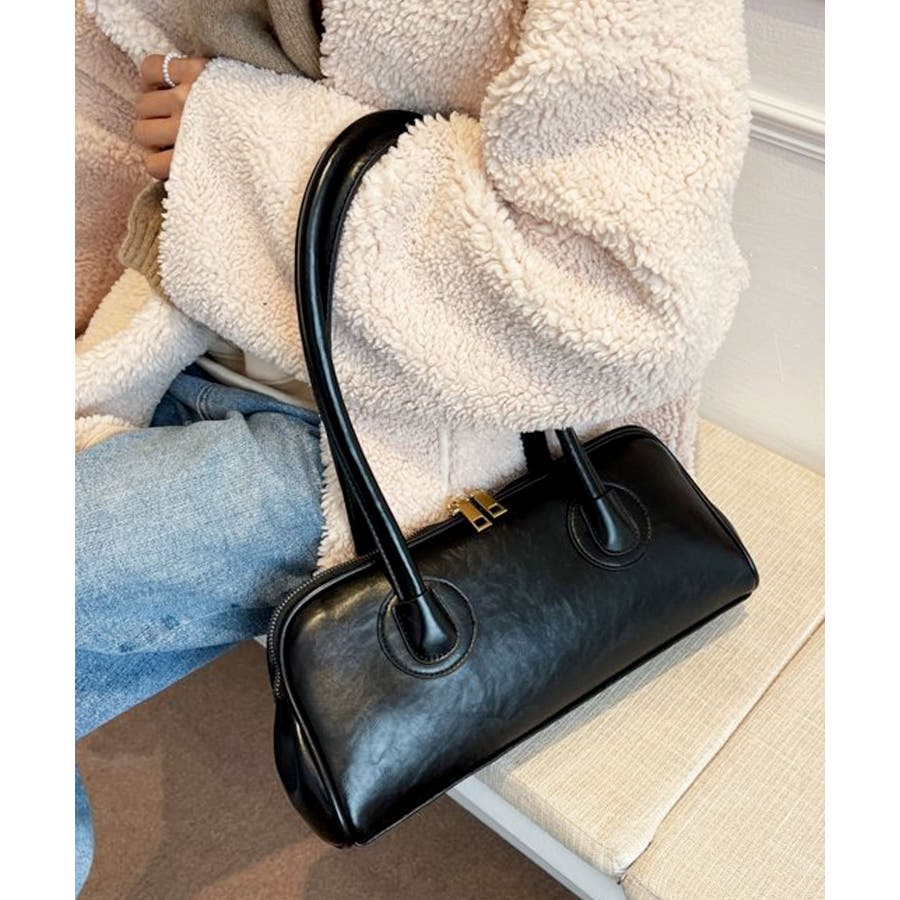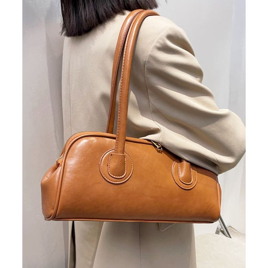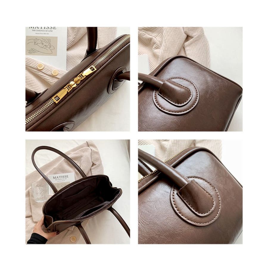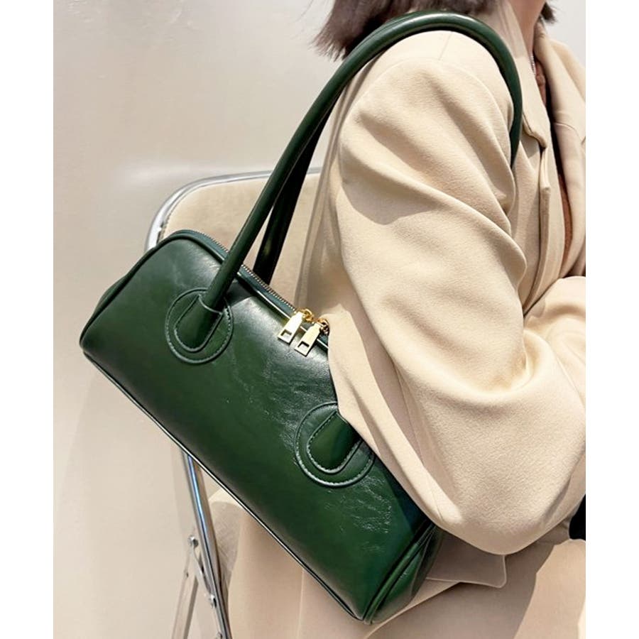 高見えするセミマットPUレザーを使用し、ゴールドファスナーがレトロかわいい表情のハンドバッグに。