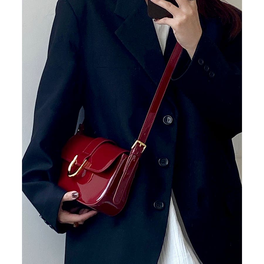 ワインレッドには、贅沢なツヤを纏うエナメル調PUレザーを使用。