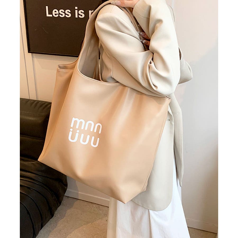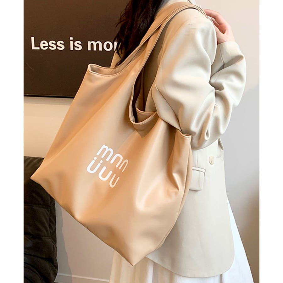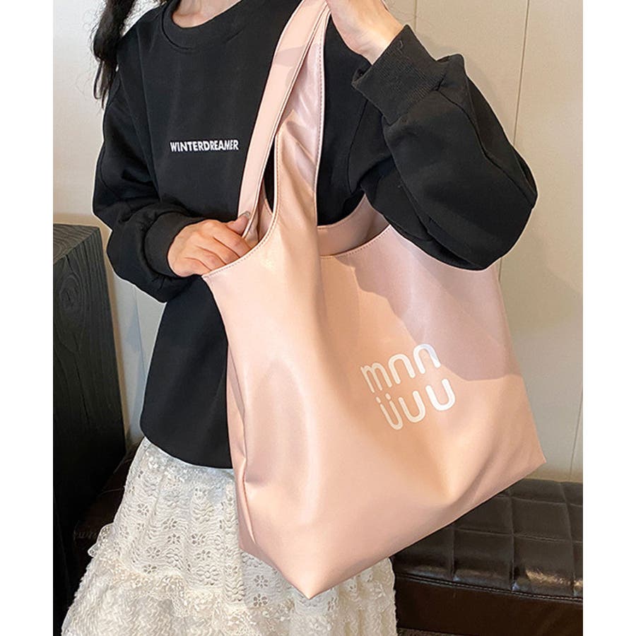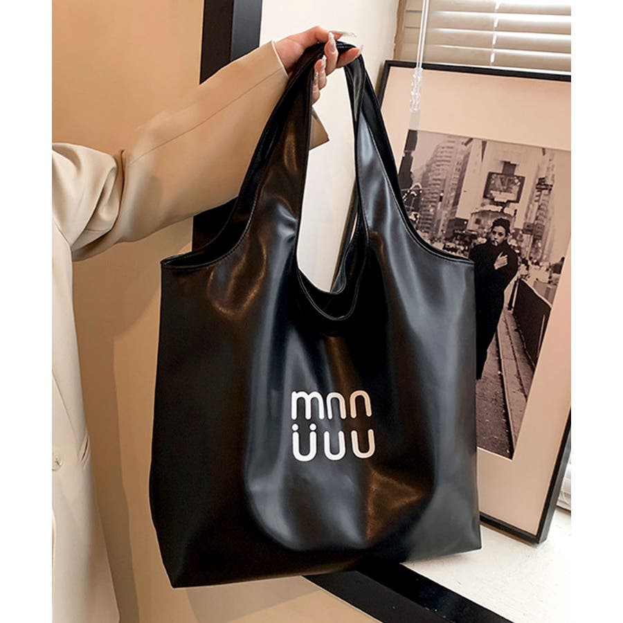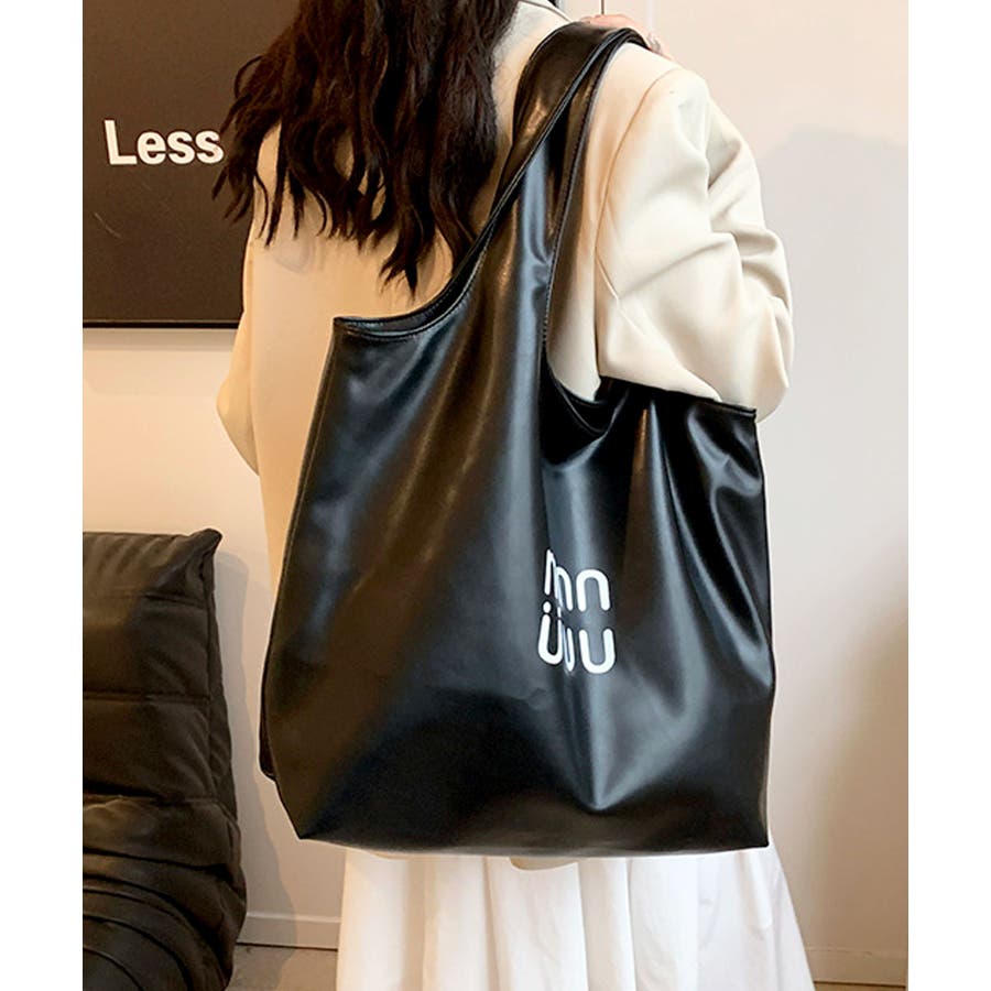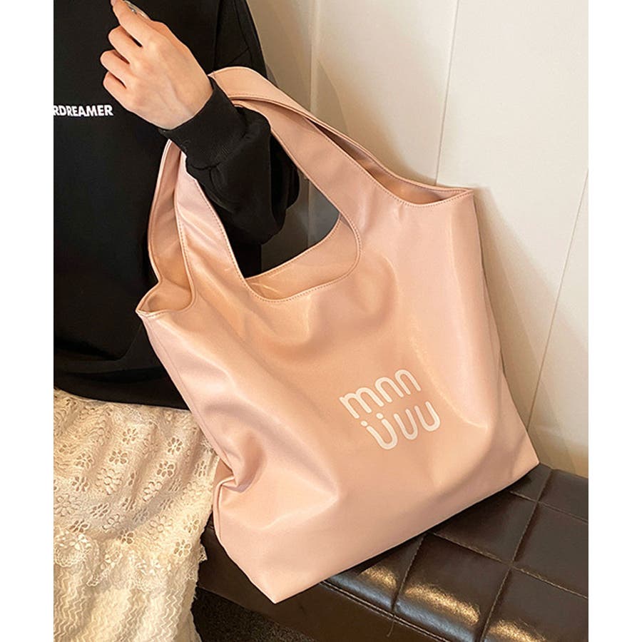 滑らかなPUレザーに、韓国を想わせるロゴをプリントしたトレンドライクなトートバッグ♪