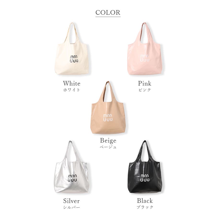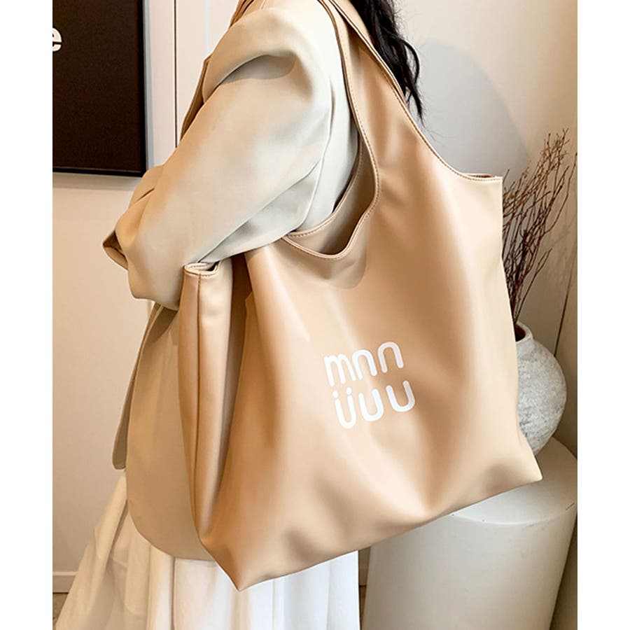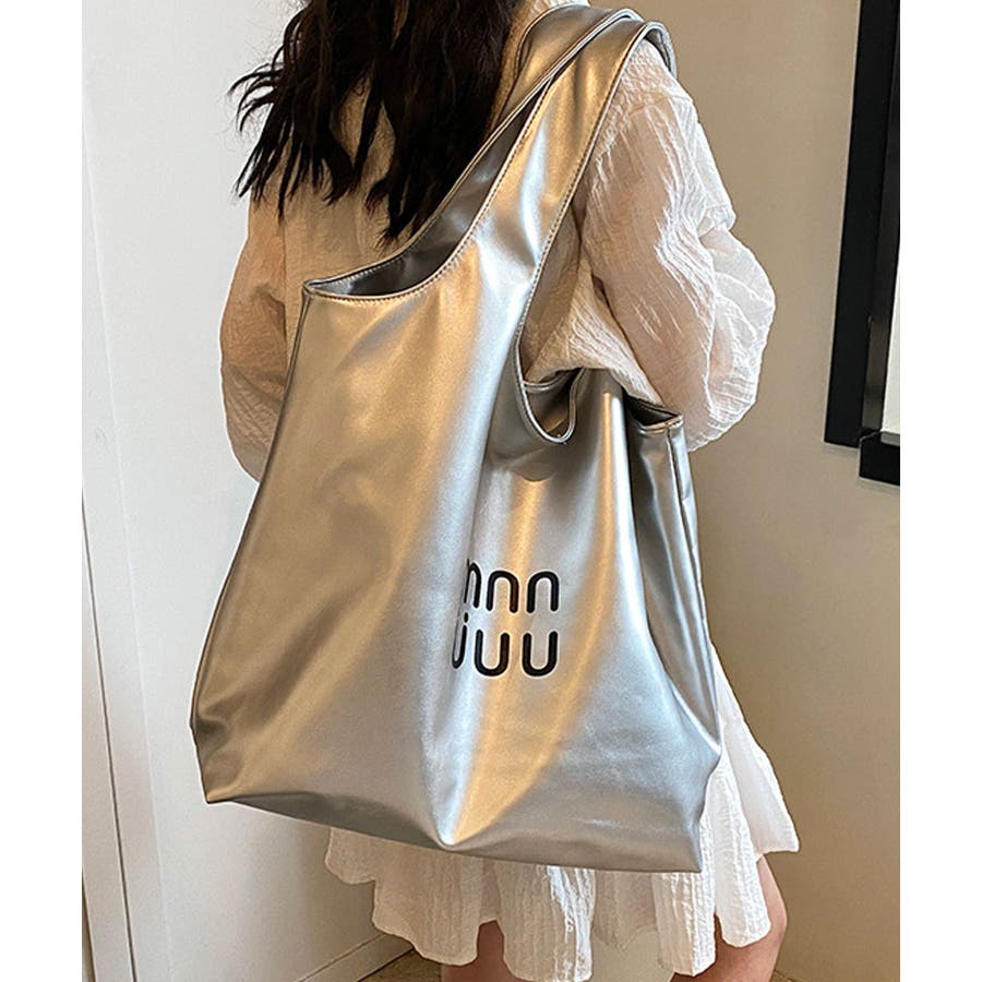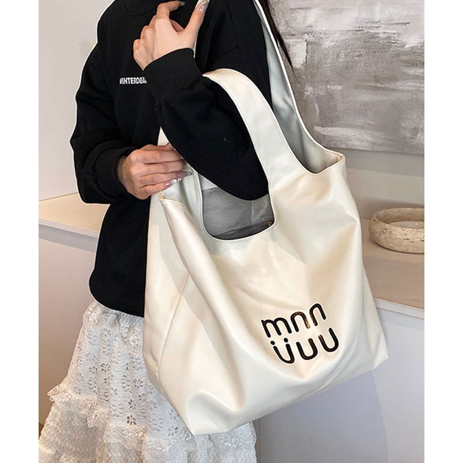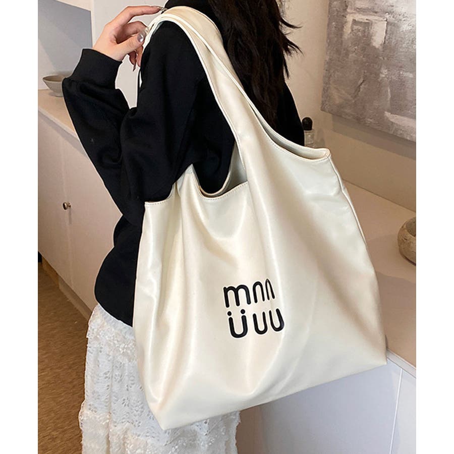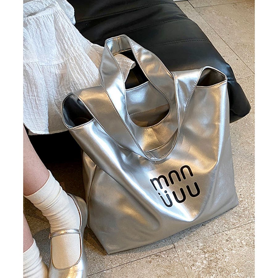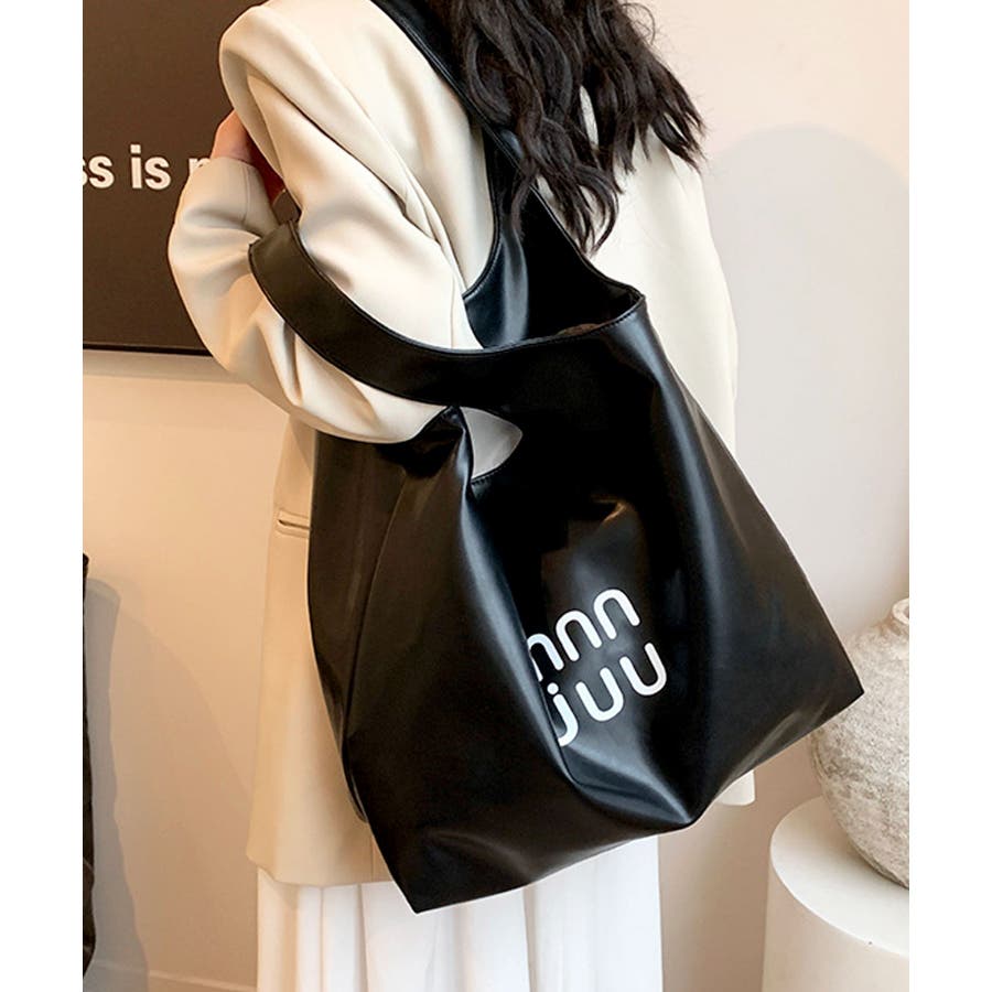 滑らかなPUレザーに、韓国を想わせるロゴをプリントしたトレンドライクなトートバッグ♪
