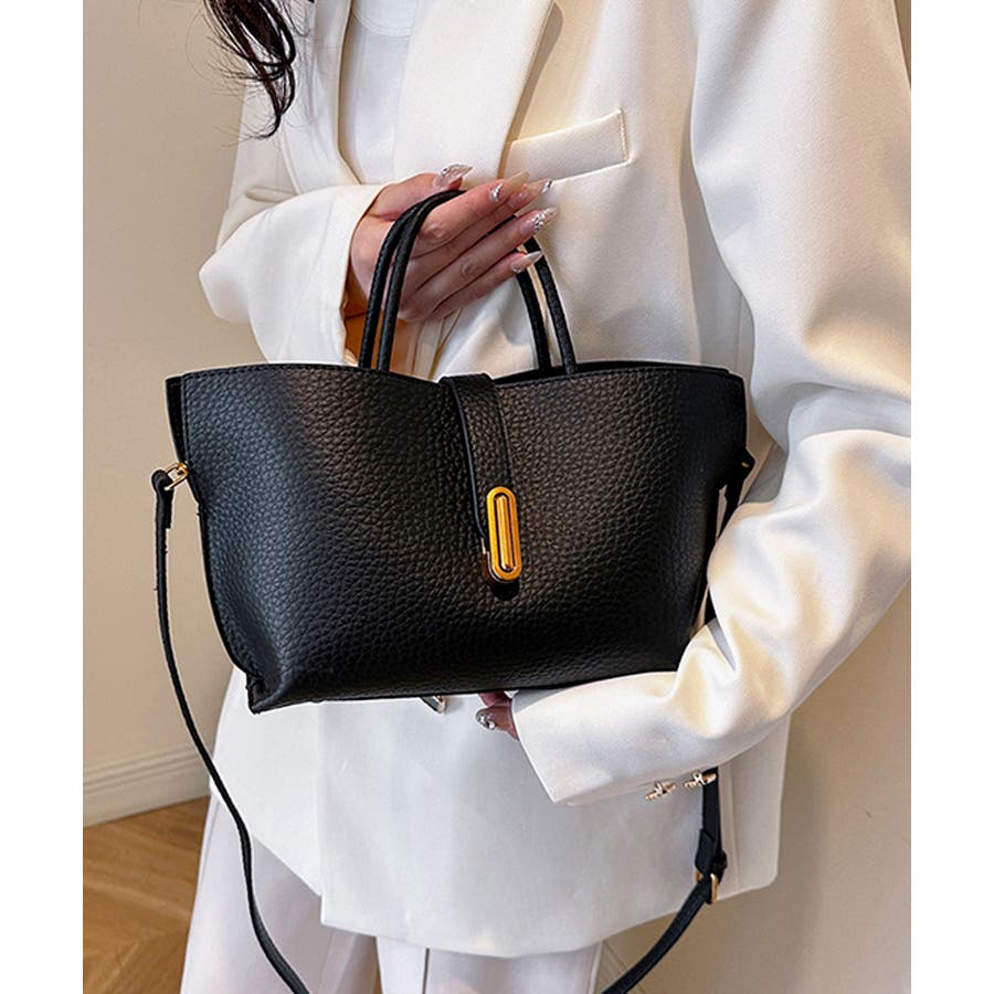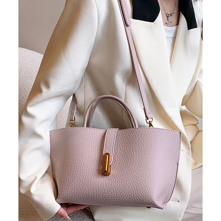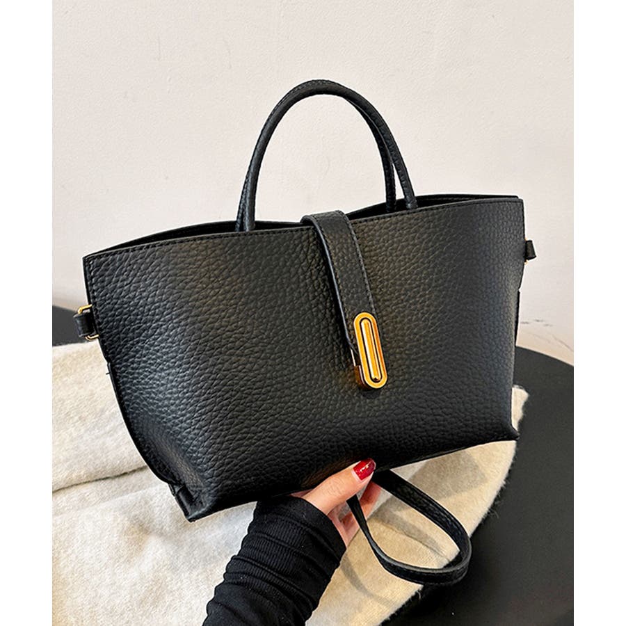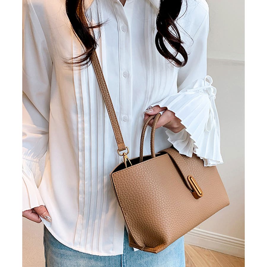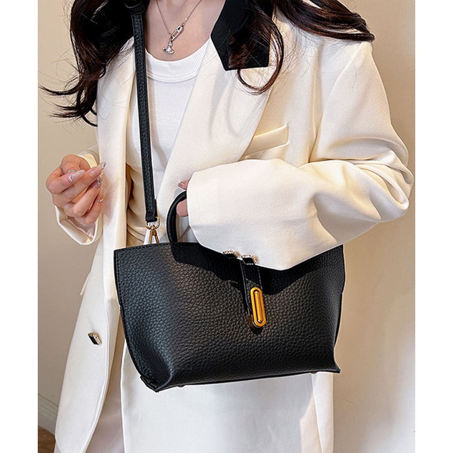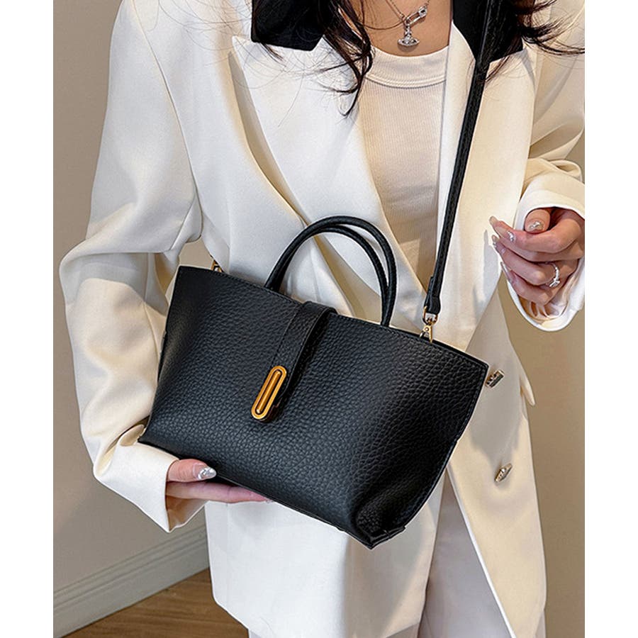 シボが高級感を漂わせる上質なPUレザーを使用し、トップベルトで抜け感をプラスしたエレガントルック。