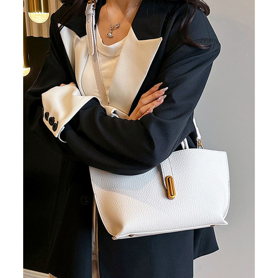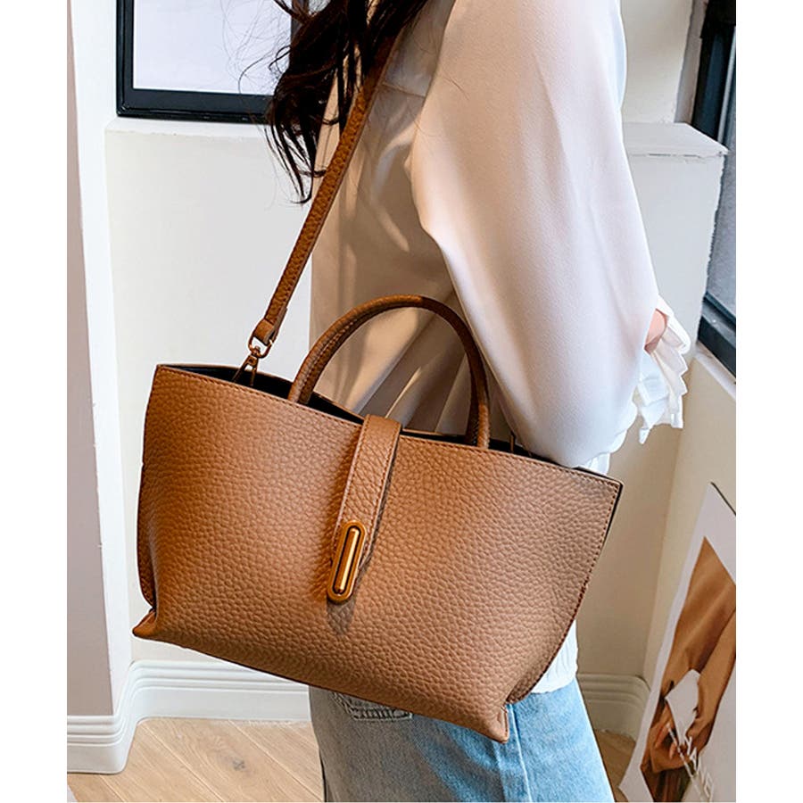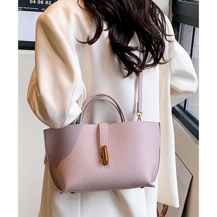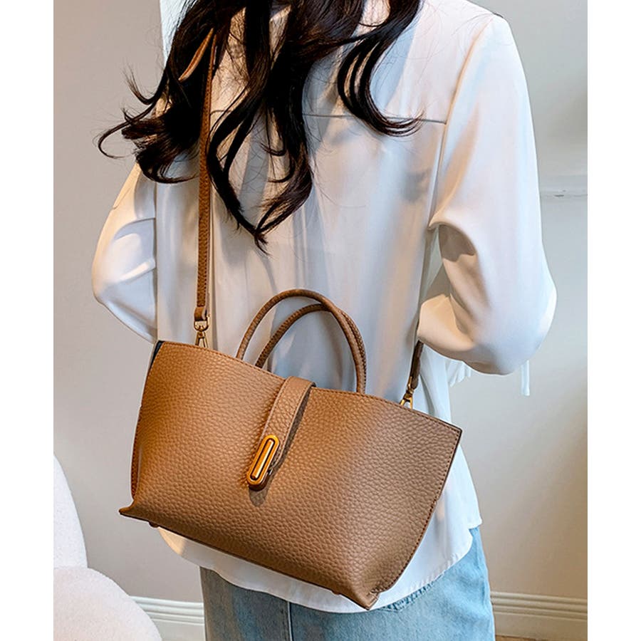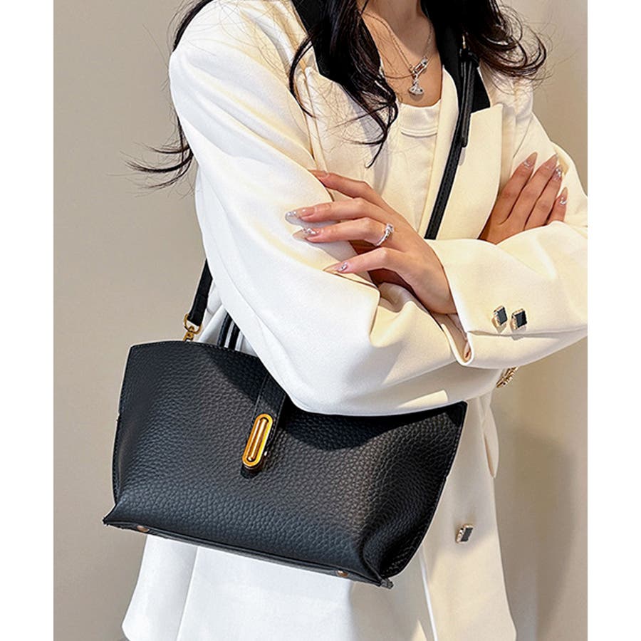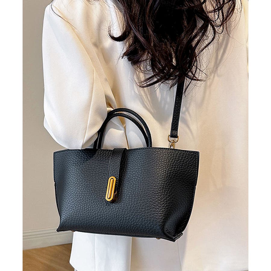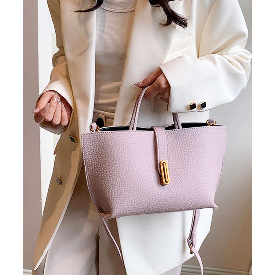シボが高級感を漂わせる上質なPUレザーを使用し、トップベルトで抜け感をプラスしたエレガントルック。