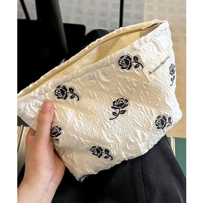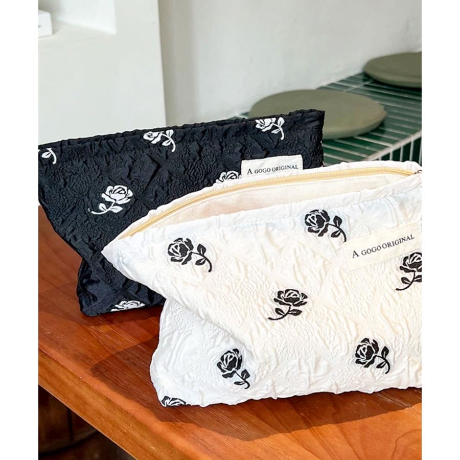 【柄12(バラ柄/ブラック)】ポーチ 小物入れ 大きめ