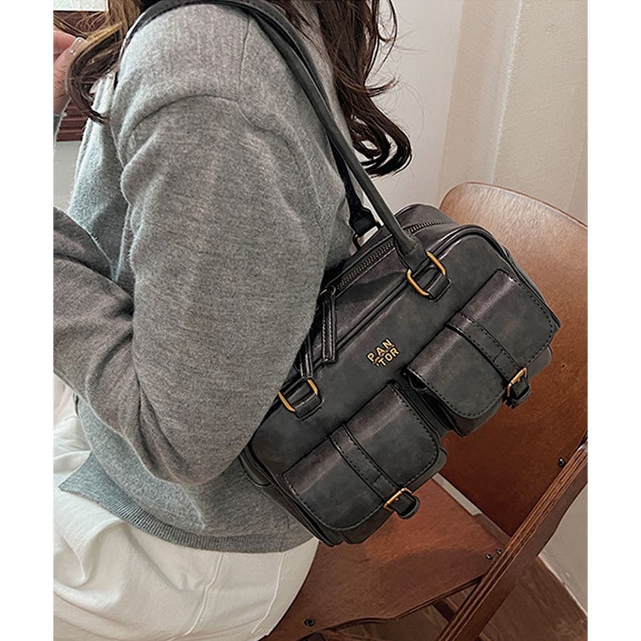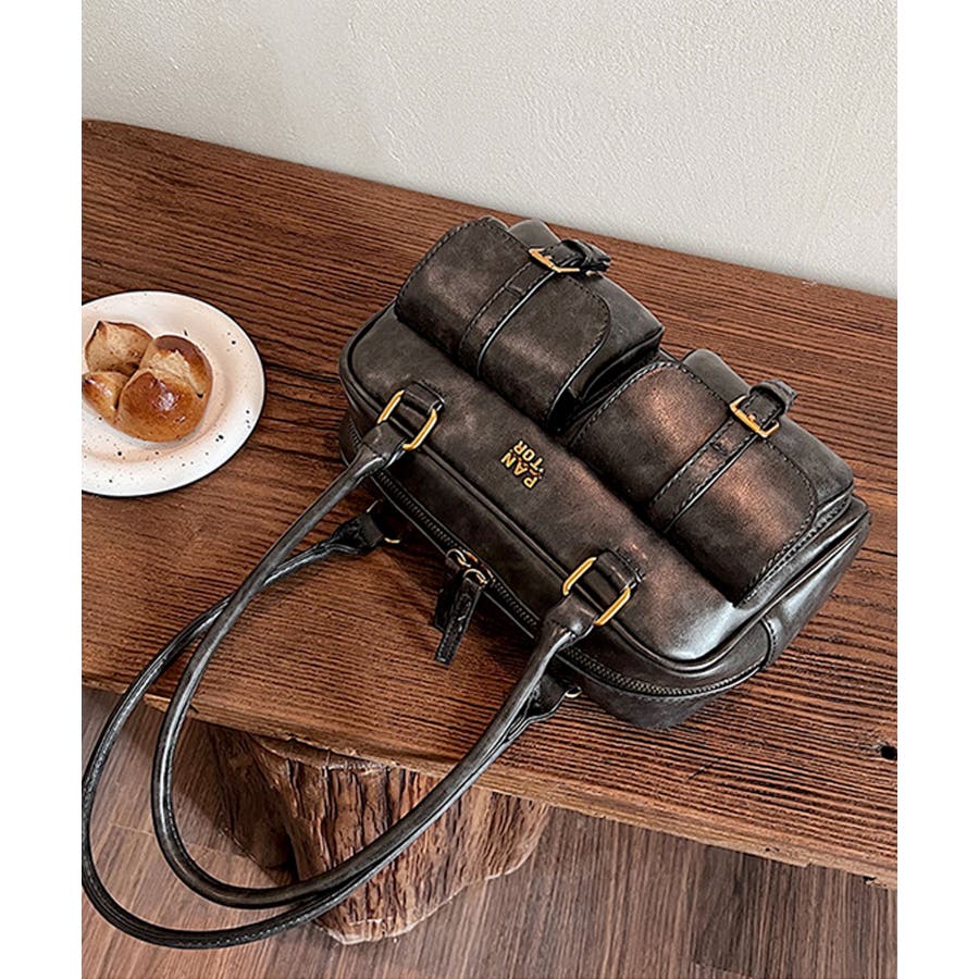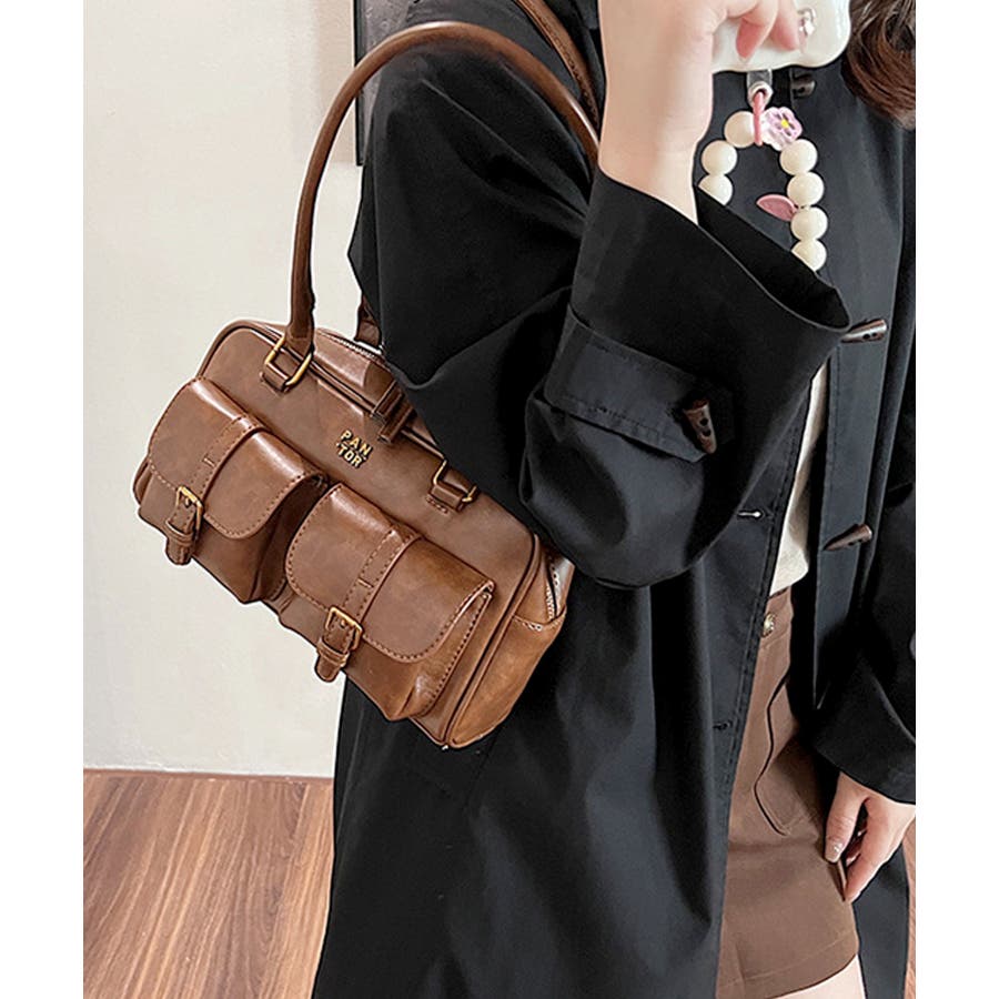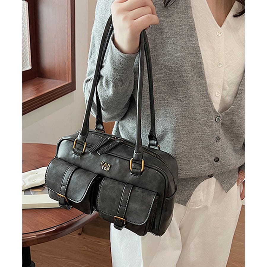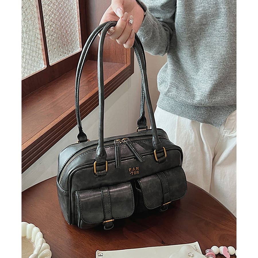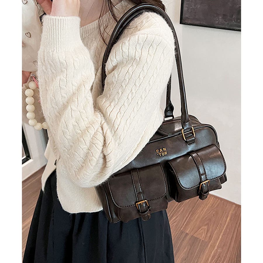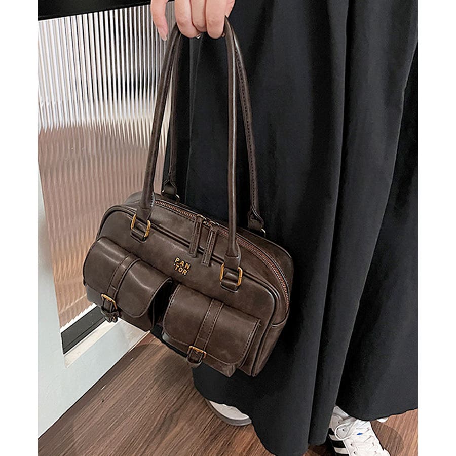 しっとり滑らか質感のPUレザーを使用し、トレンドのダブルポケットをあしらった大人かわいいハンドバッグ♪