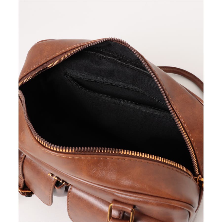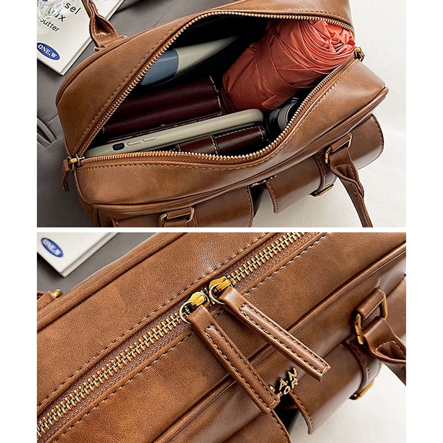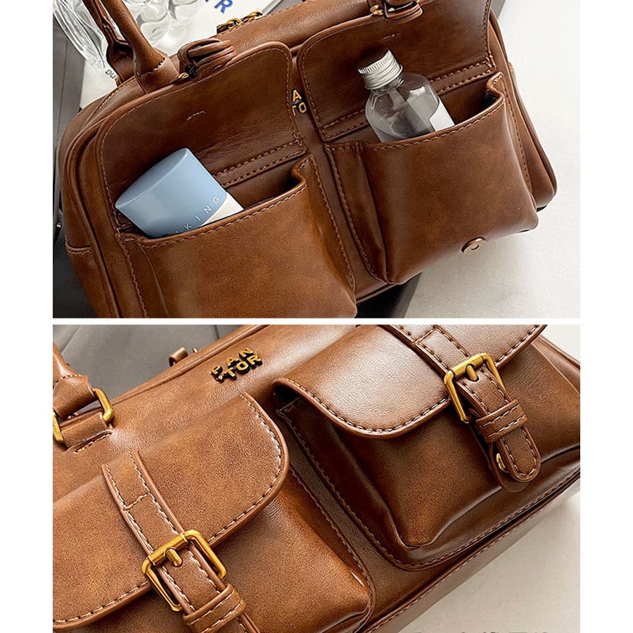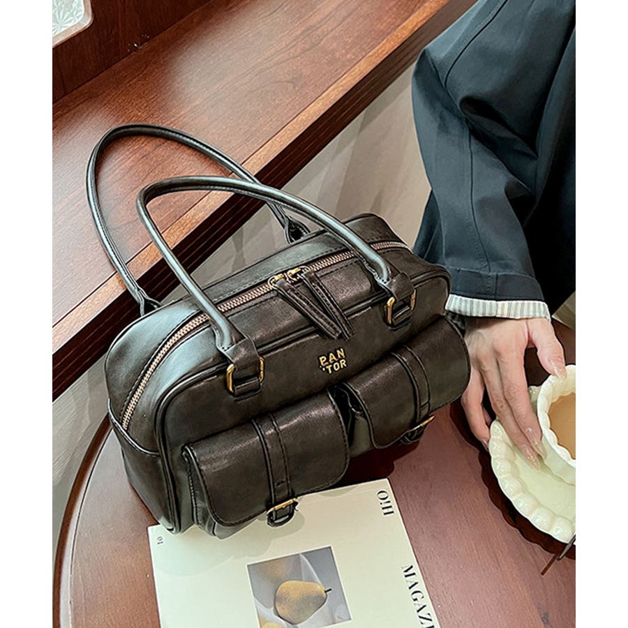 PUレザーライクダブルポケットボストンバッグ/肩掛けバッグ/ハンドバッグ。