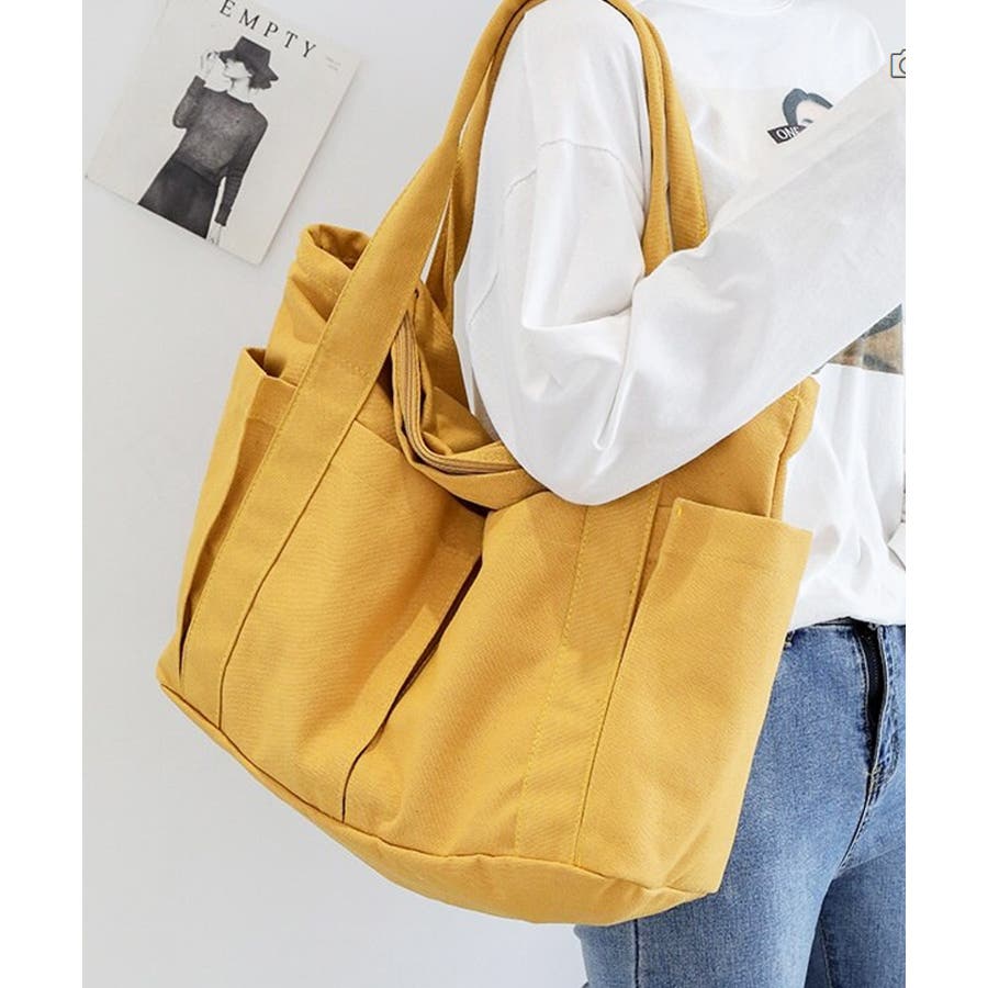 丈夫なキャンバス生地を使用し、くったりフォルムが優しい印象のおしゃれなトートバッグ◎
