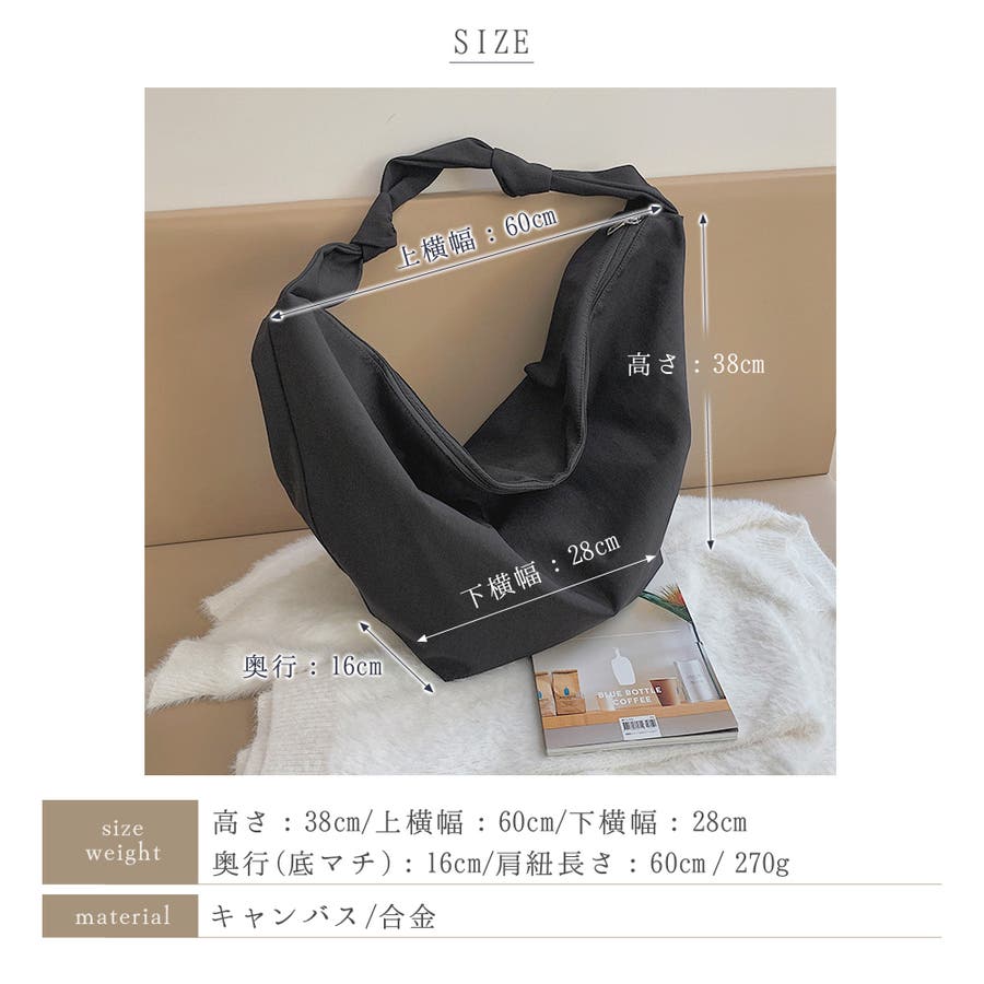 サイズ:高さ38cm/上横幅60cm/下横幅28cm/奥行(底マチ)16cm/肩紐長さ60cm