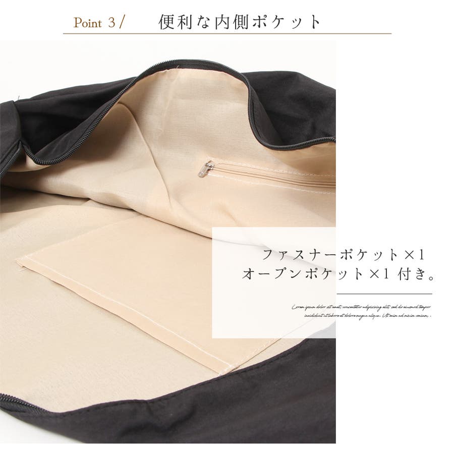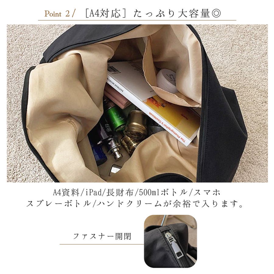 さらに、メイン口はファスナー開閉なので荷物が外に飛び出さない安心設計◎