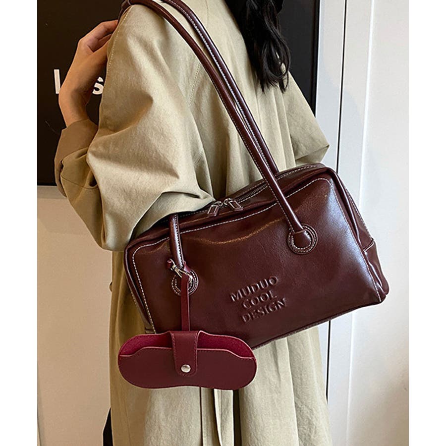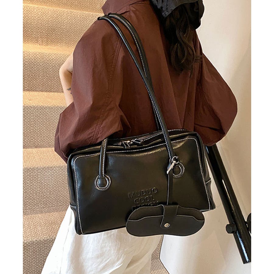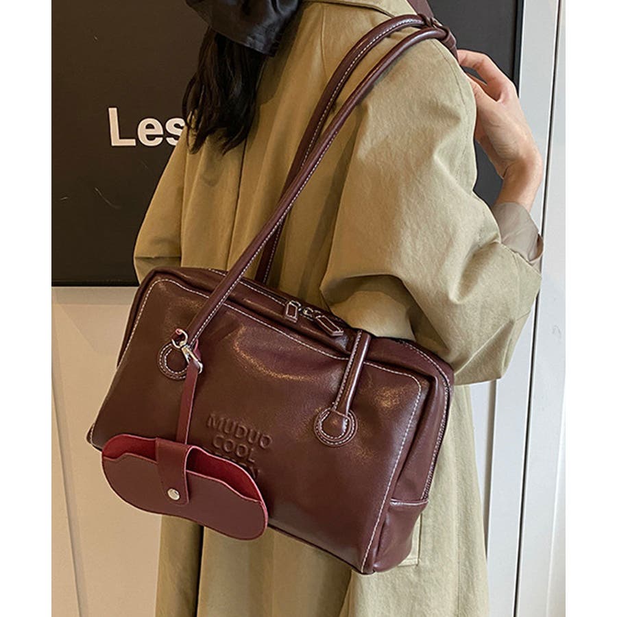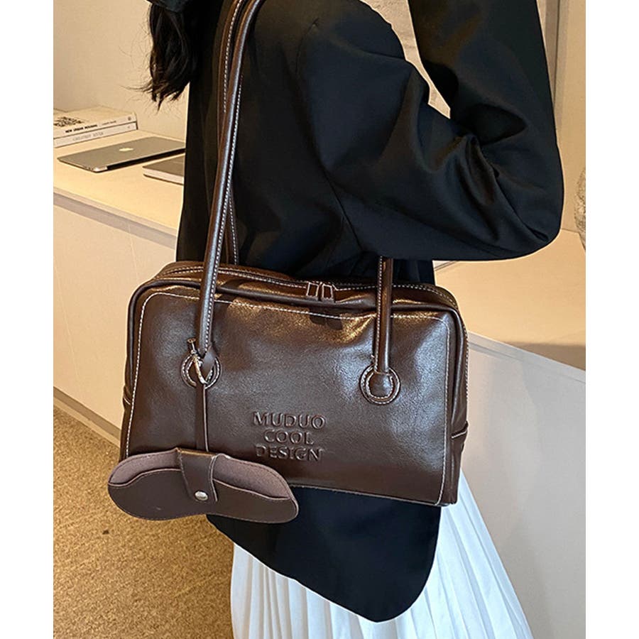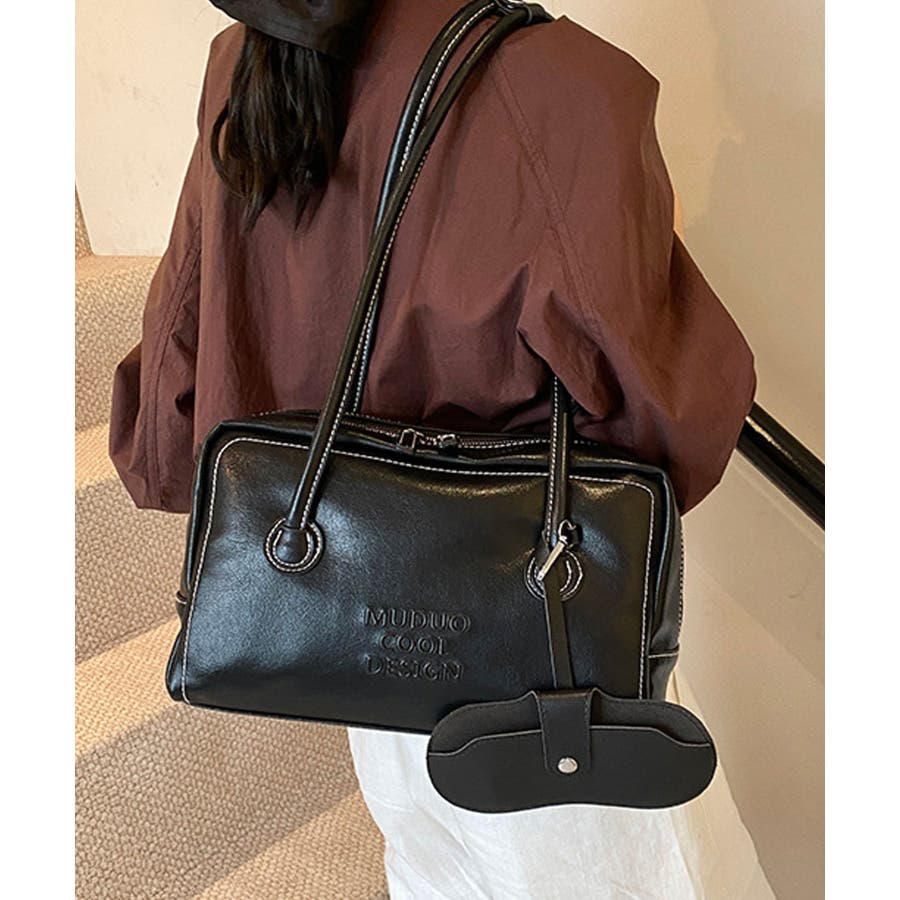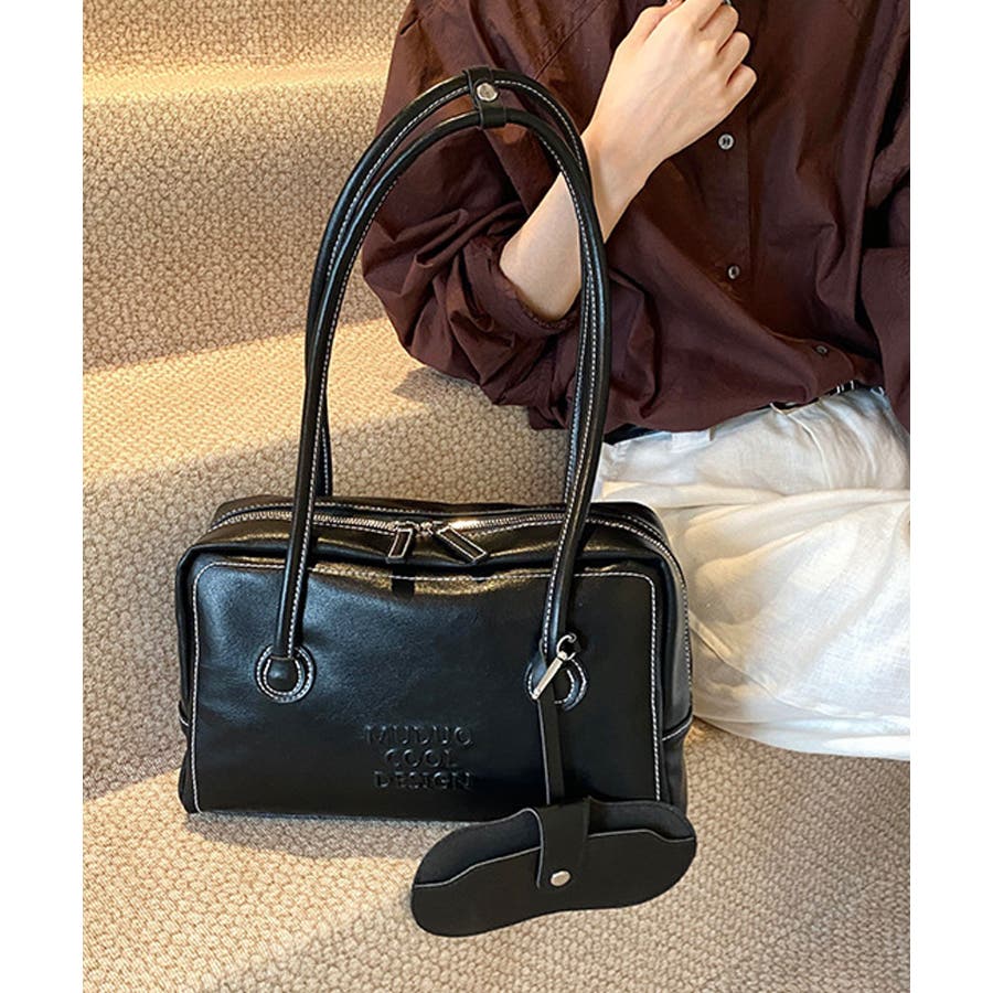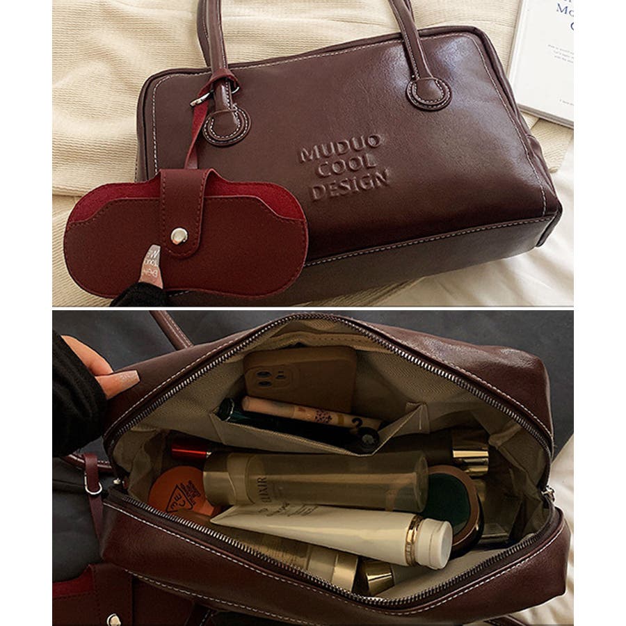 PUレザーライクボックス型ボストンバッグ/トートバッグ/肩掛けバッグ。