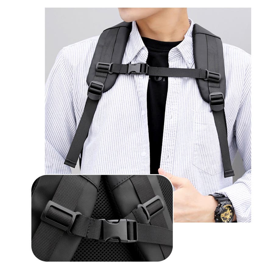 ・背面&肩紐裏:クッション入りメッシュ素材、チェストベルト
