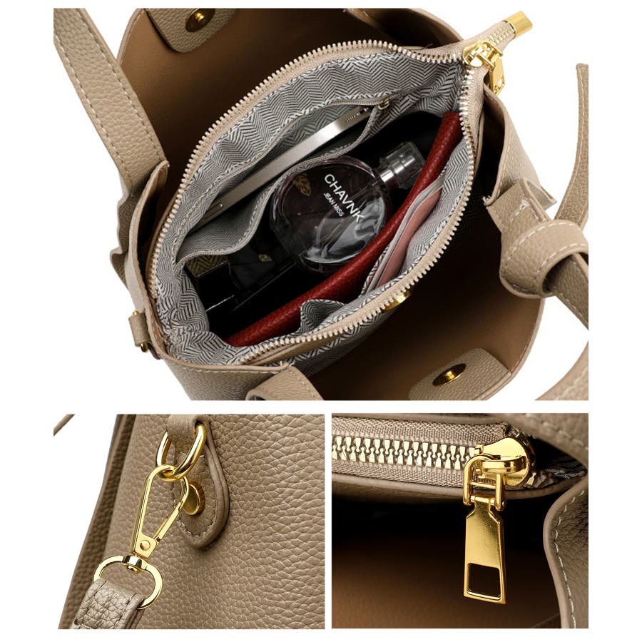 ・内側中央:仕切りファスナーポケット×1(仕切りはバッグ底面と繋がっていない仕様です)