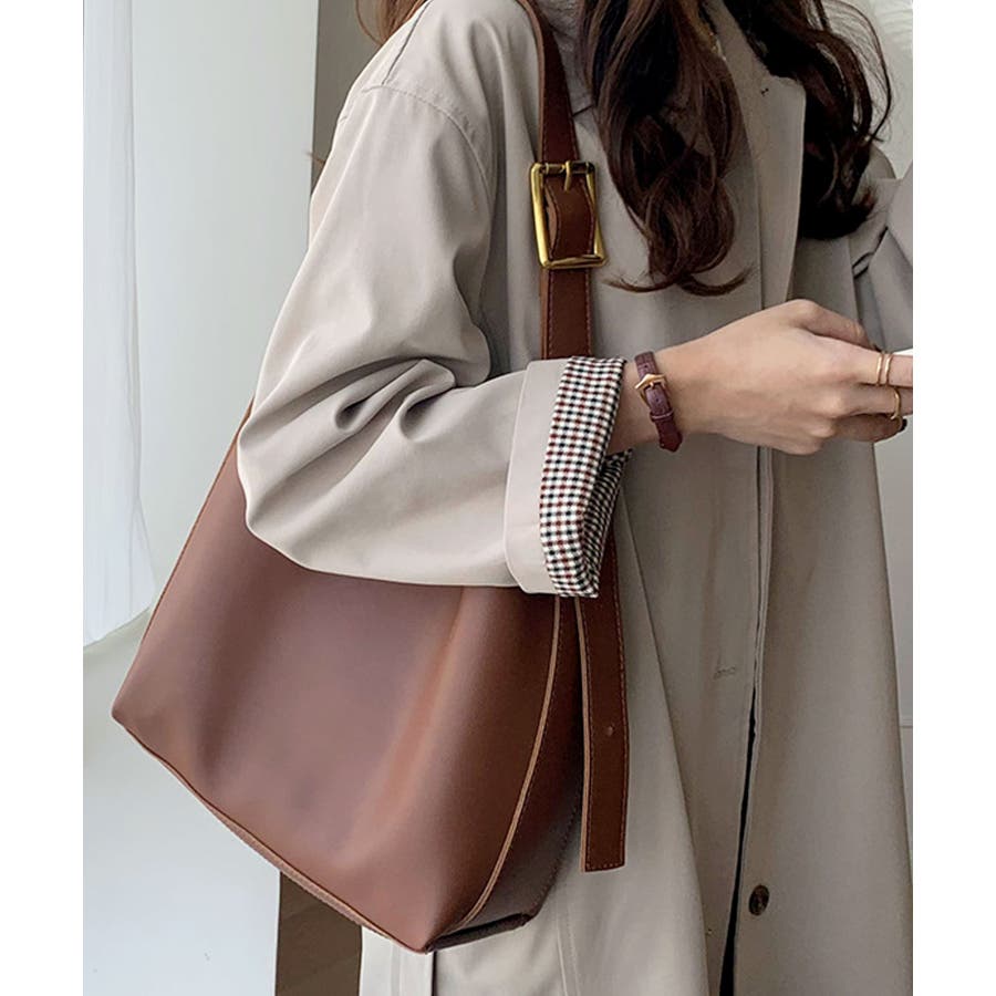キメ細やかなシュリンクPUレザーを使用し、どんな服にも合わせやすい大人シックなショルダーバッグに。
