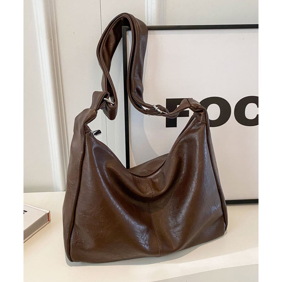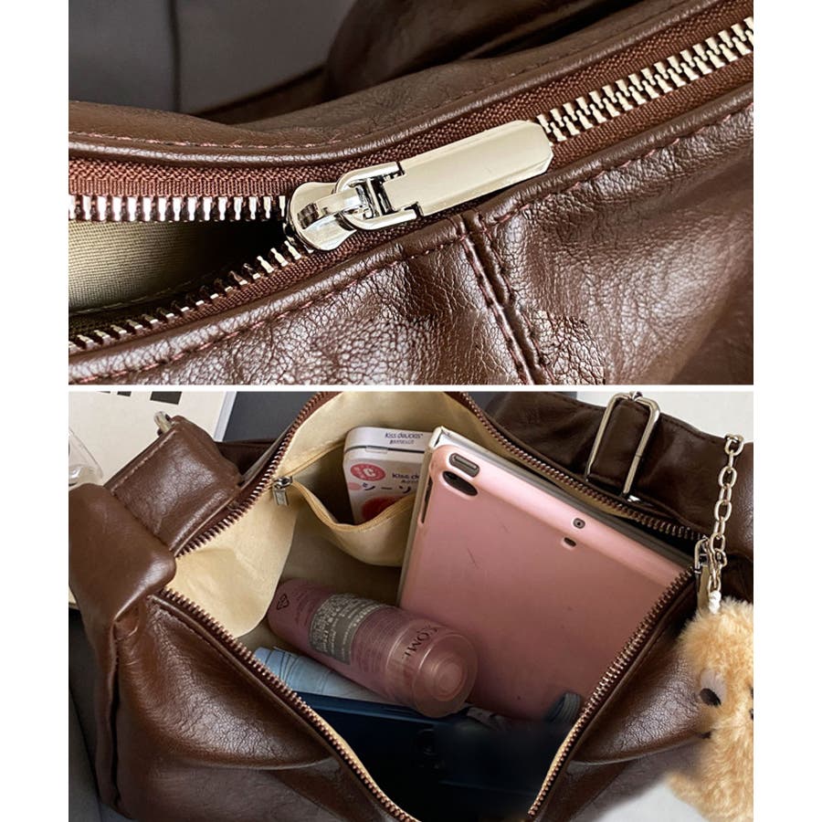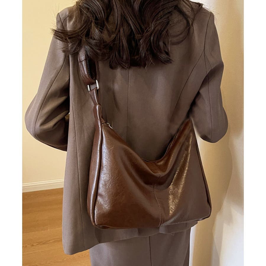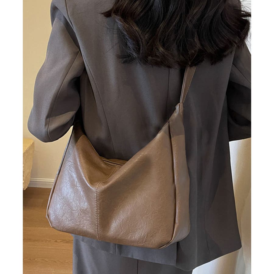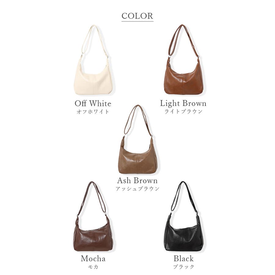 シュリンク加工を施したソフトPUレザーを使用し、どんな服にも合わせやすいオーソドックスな大人かわいいショルダーバッグに。