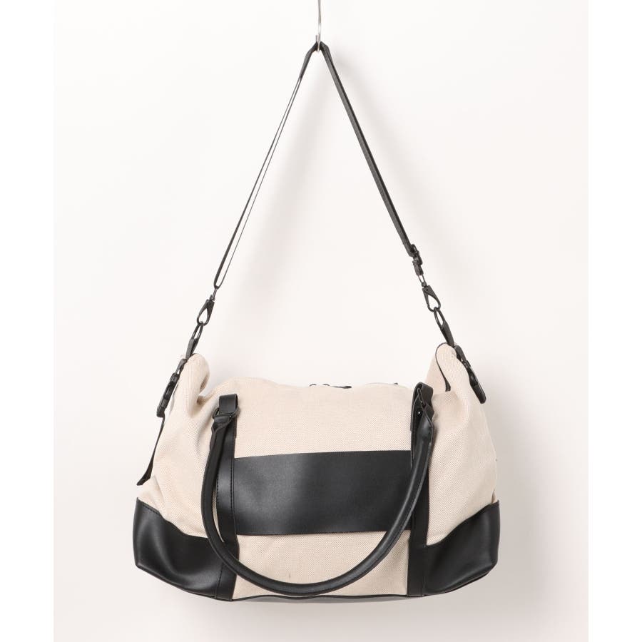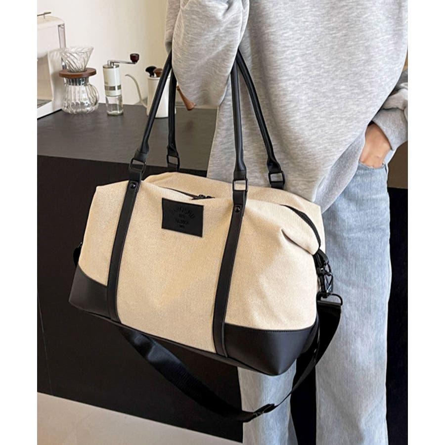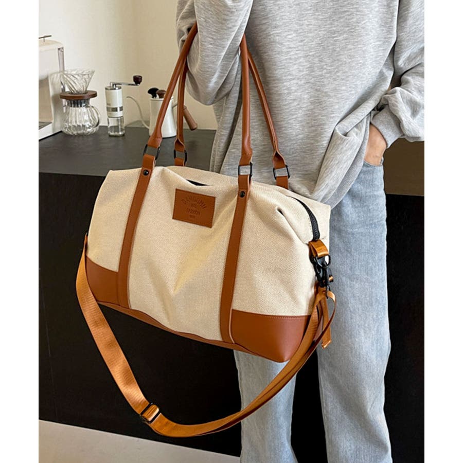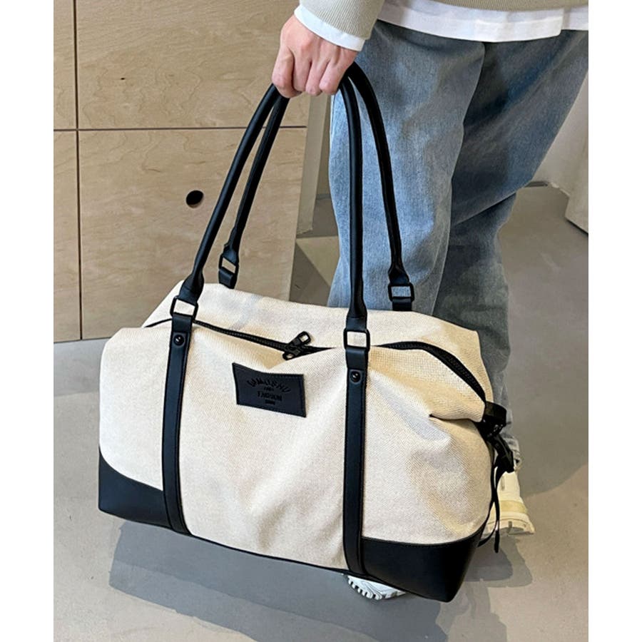 ラフな印象のキャンバス生地に上質なPUレザーを組み合わせ、きれいめカジュアルなボストンバッグに。