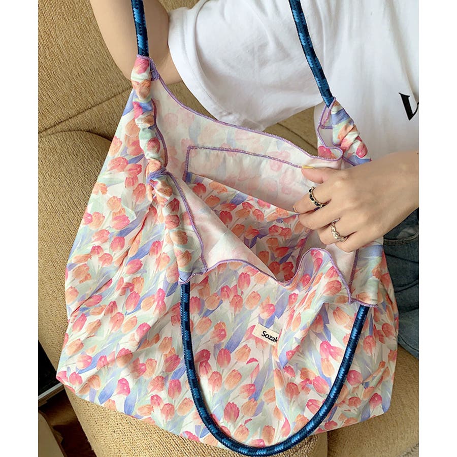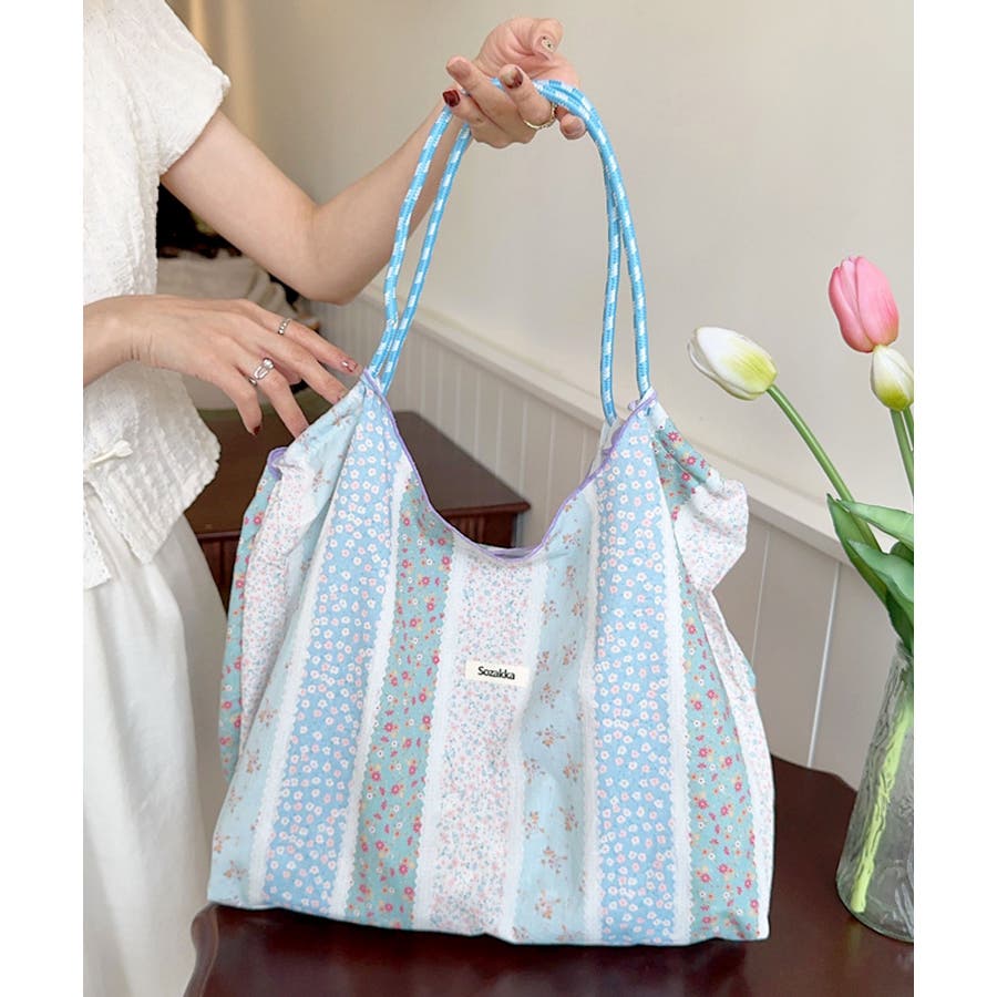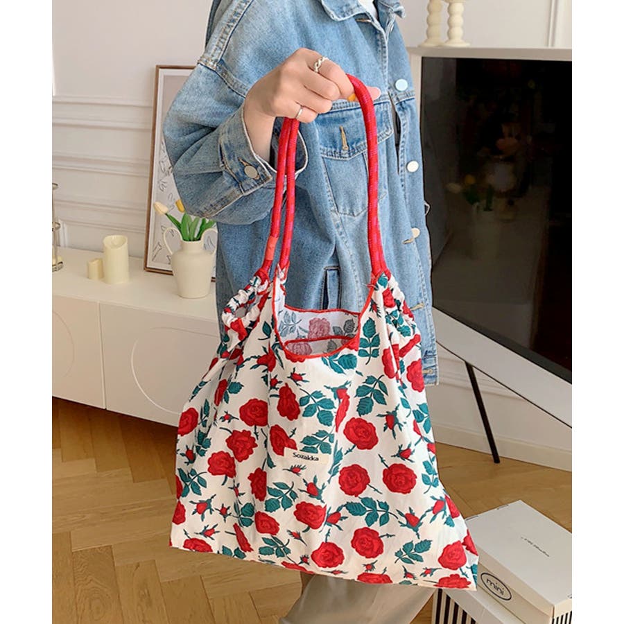 リボンフラワー総柄ショッピングバッグ/サブバッグ/トートバッグ。