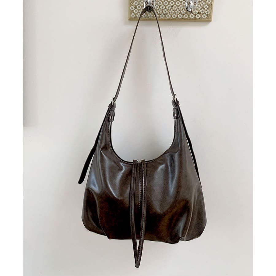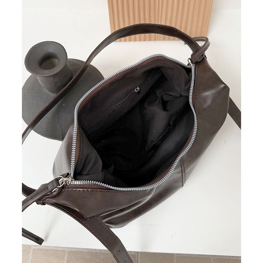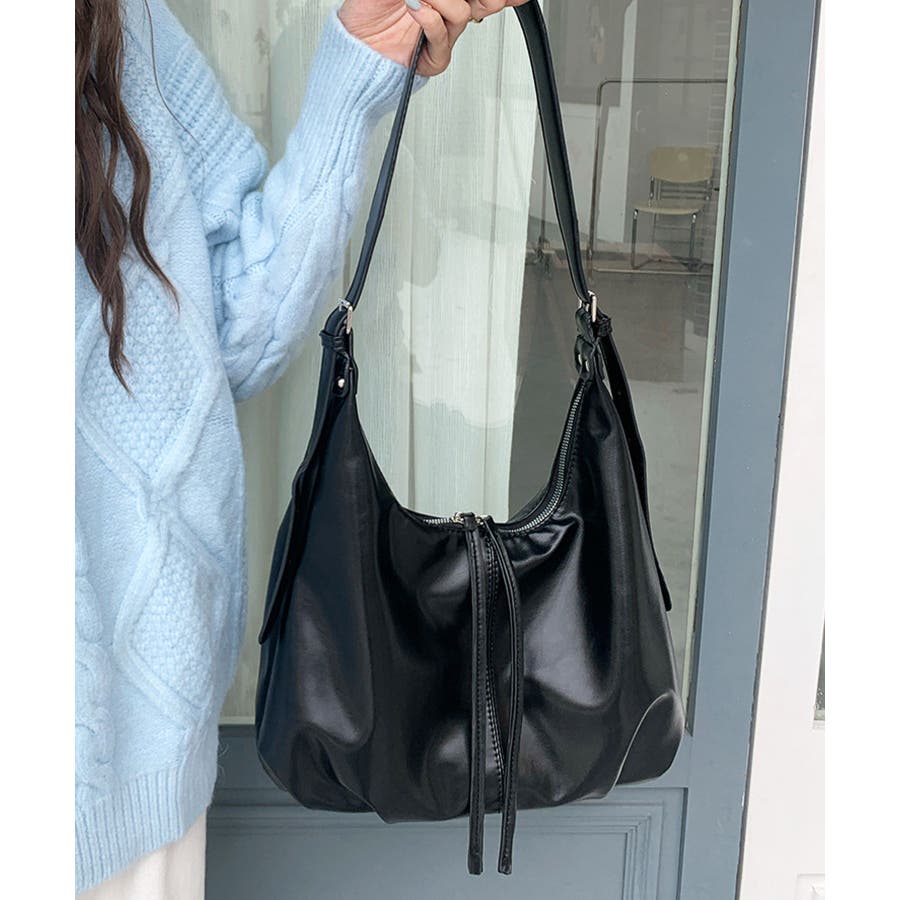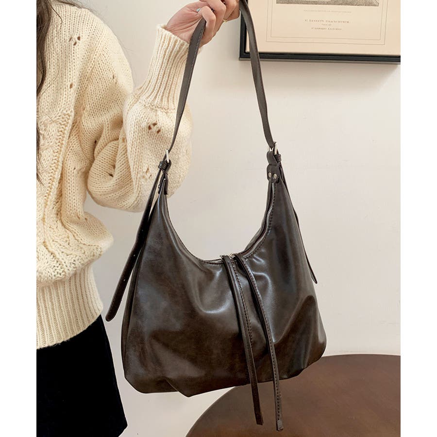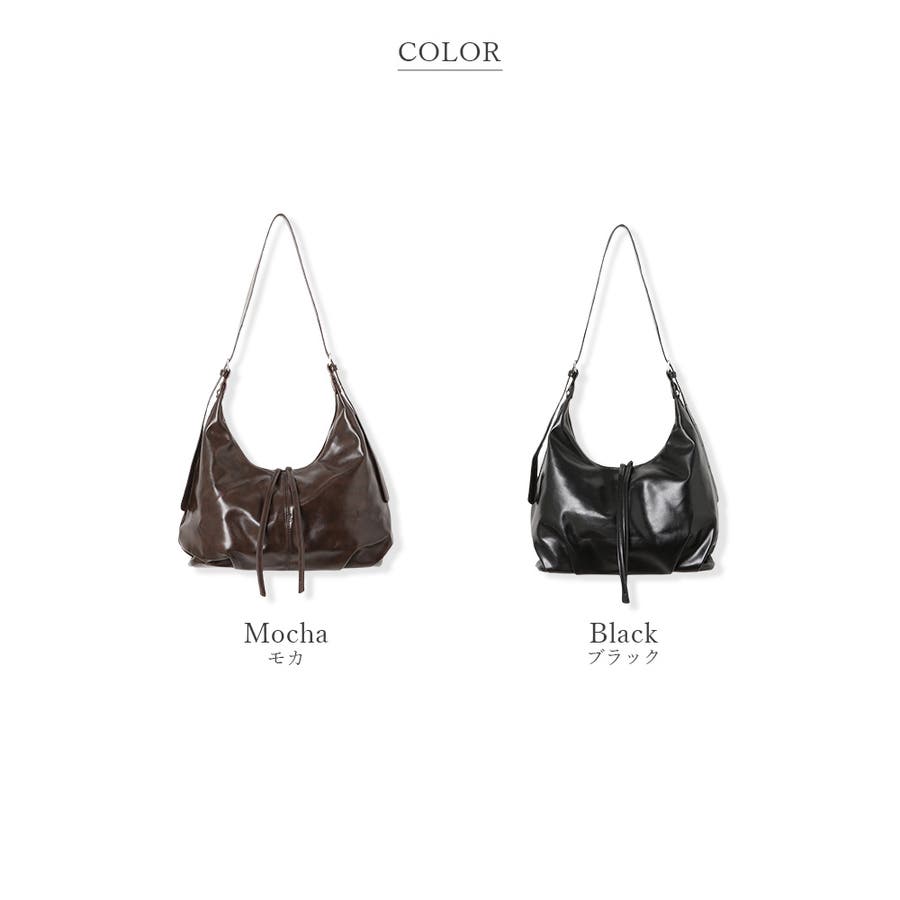 ふわっとソフトなPUレザーを使用し、ハーフムーンフォルムに仕立てた大人かわいいショルダーバッグ。