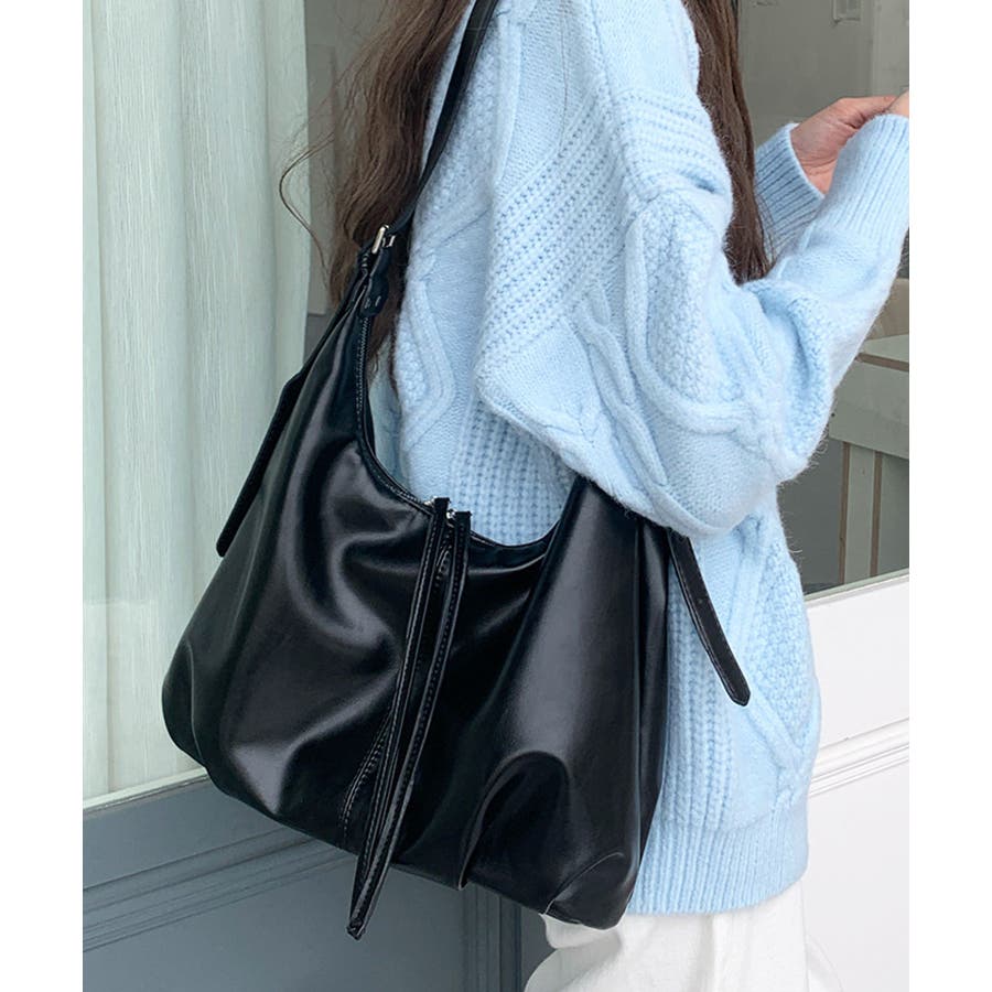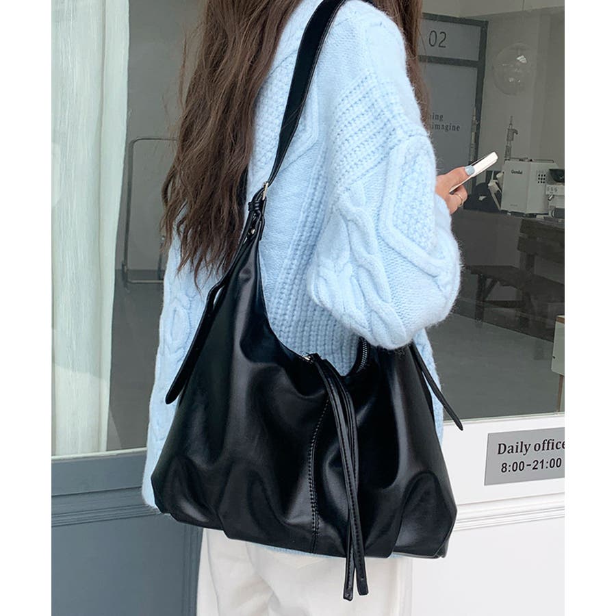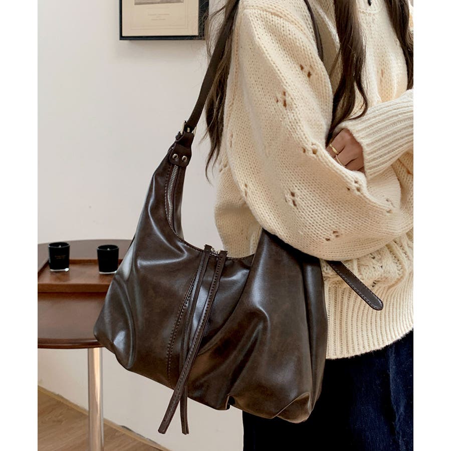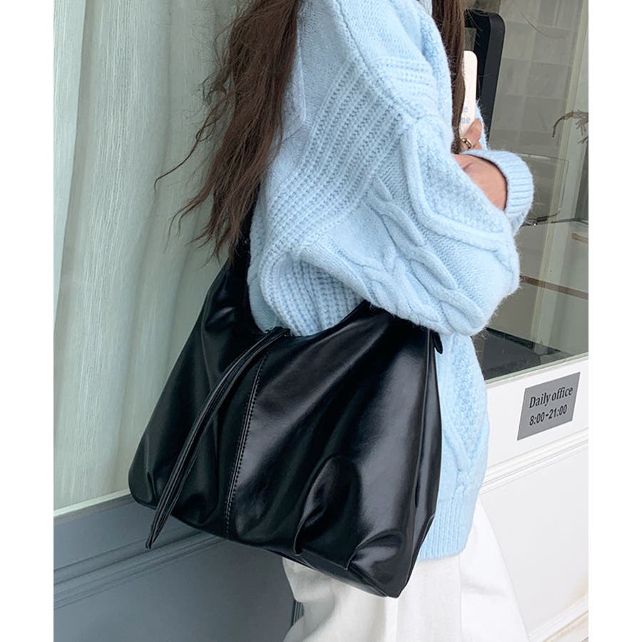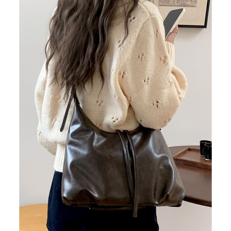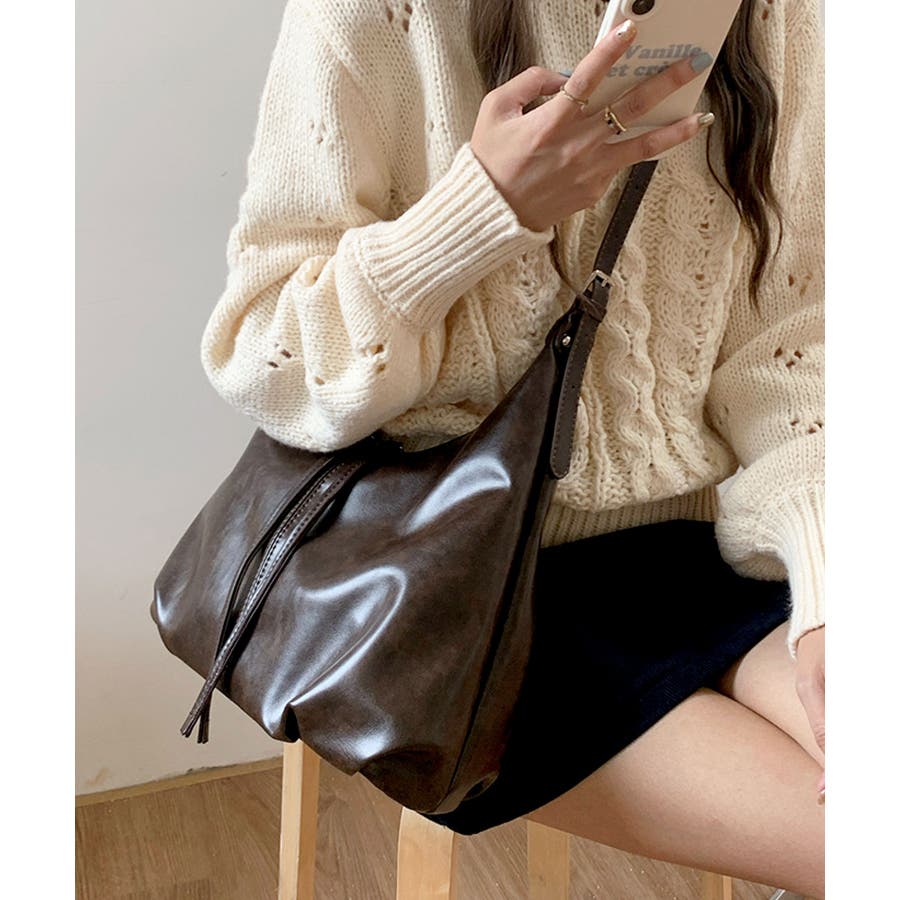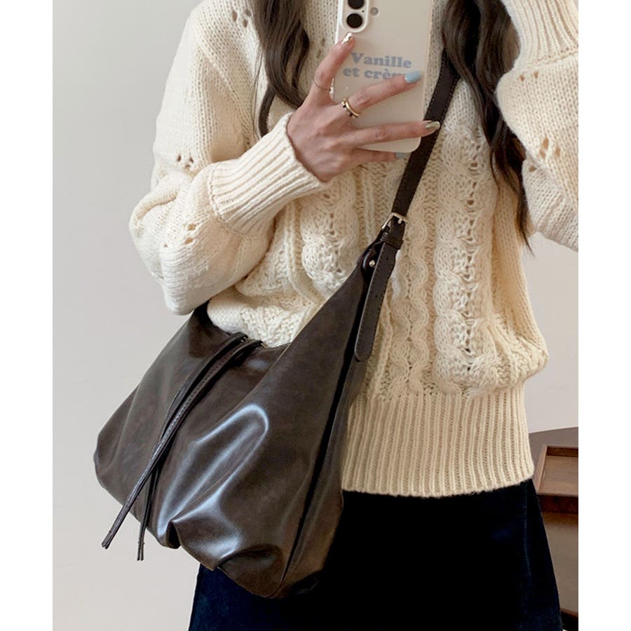 きれいめワンピースやカジュアルなデニムパンツコーデなど、どんな服にも合わせやすい上品なショルダーバッグに仕上げました。
