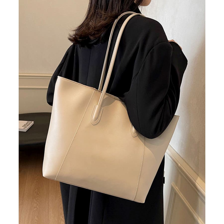 台形フォルムに2本のステッチラインが上品な印象を与えてくれる、スタイリッシュなトートバッグです。