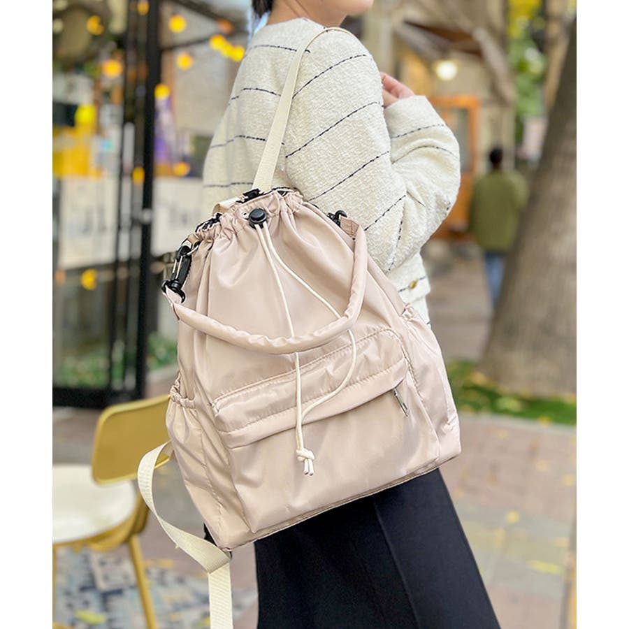 サラリとした肌触りのナイロンを使用し、シーズンレスで使える大人かわいいリュックに♪