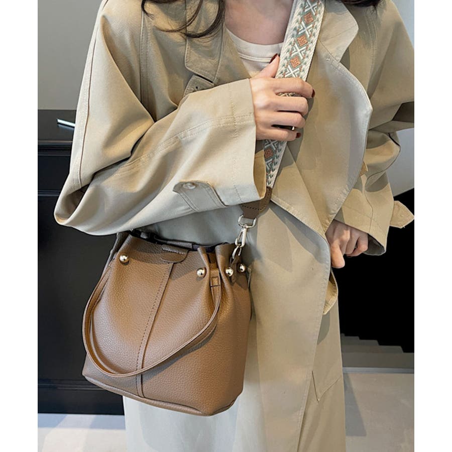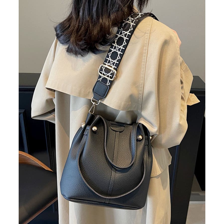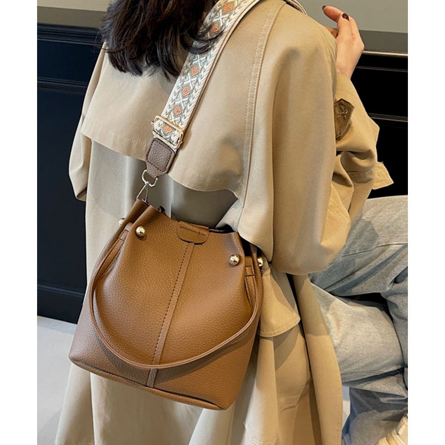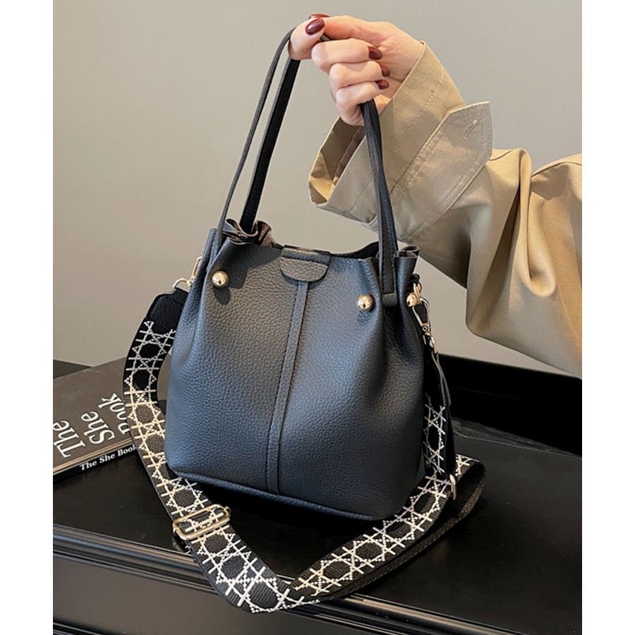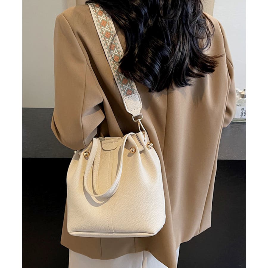 広幅ショルダーストラップには幾何学模様が織り込まれ、シンプルなコーデに映えるショルダーバッグです。