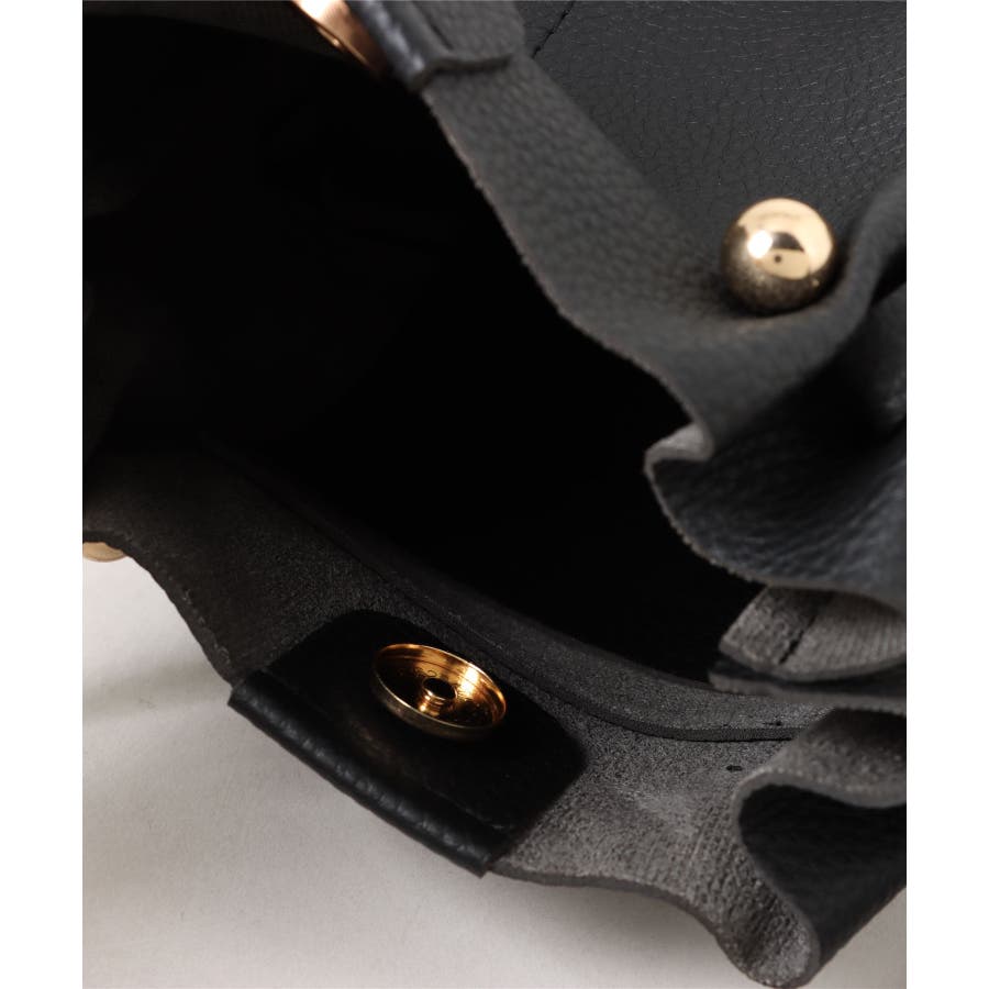 こなれ感のあるシュリンクPUレザーを使用し、4隅にタックを効かせた大人かわいいショルダーバッグ。