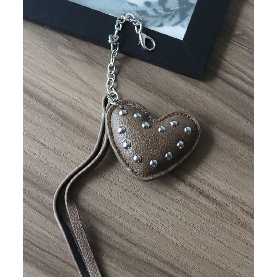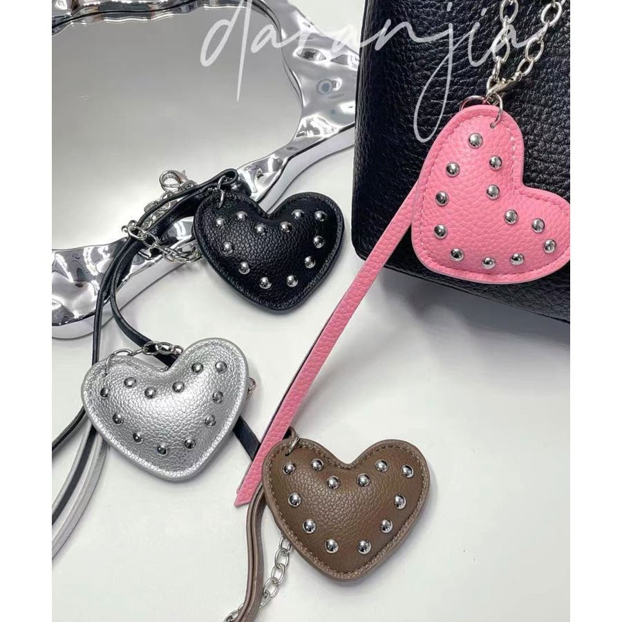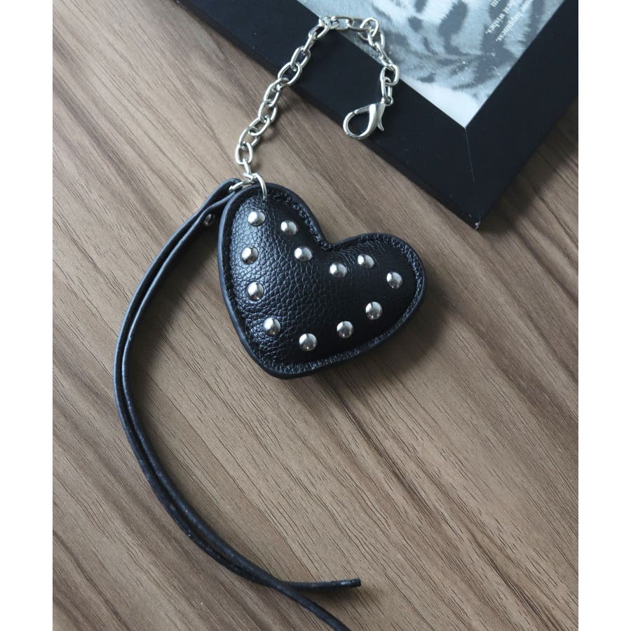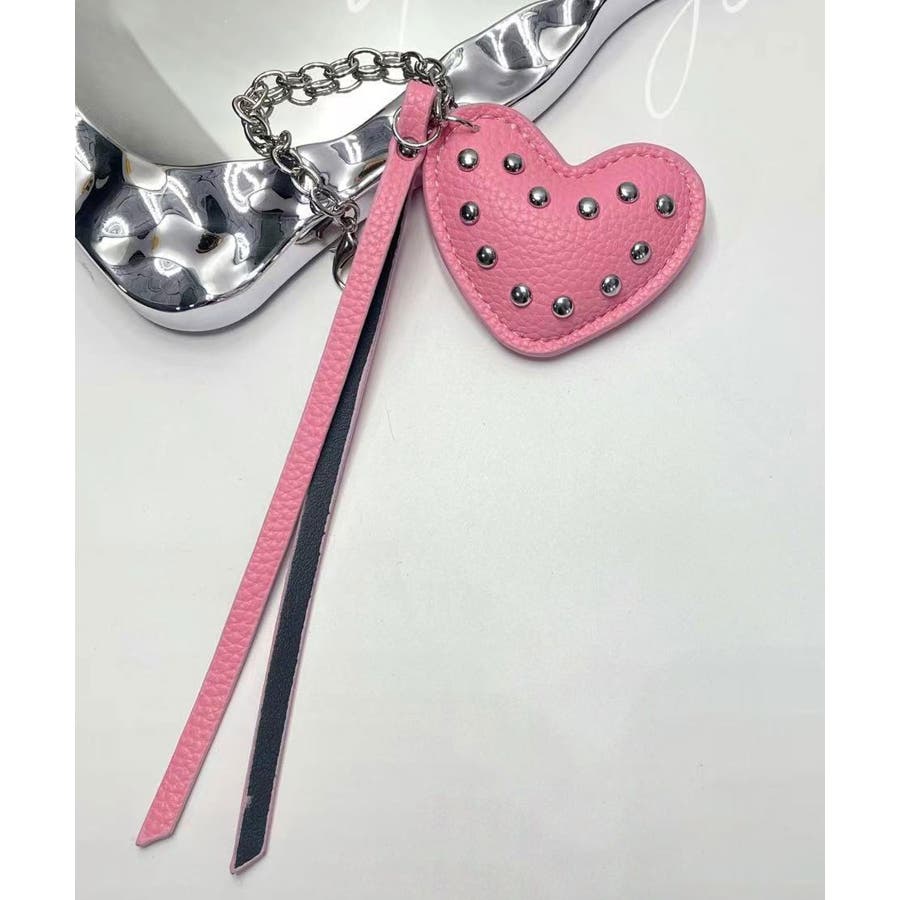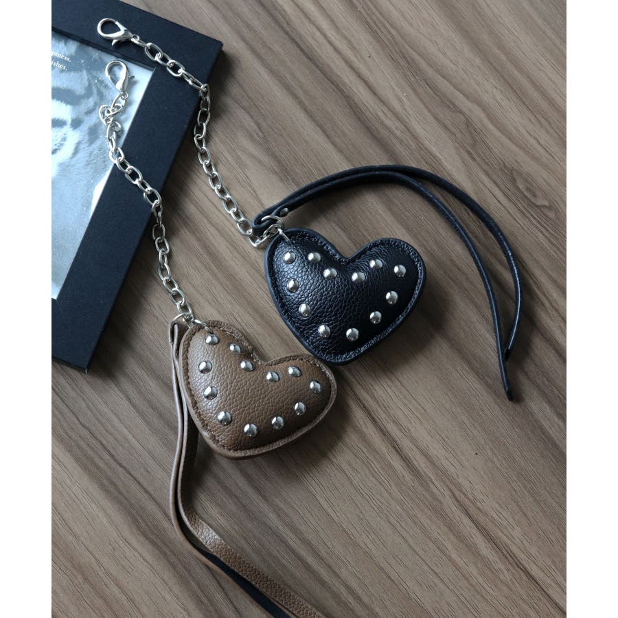 ハートレザーにスタッズをあしらい、韓国系Y2Kロックテイストに仕上げたバッグチャーム。