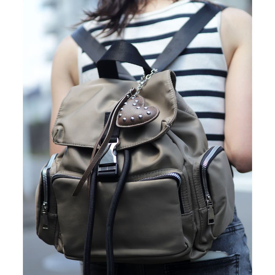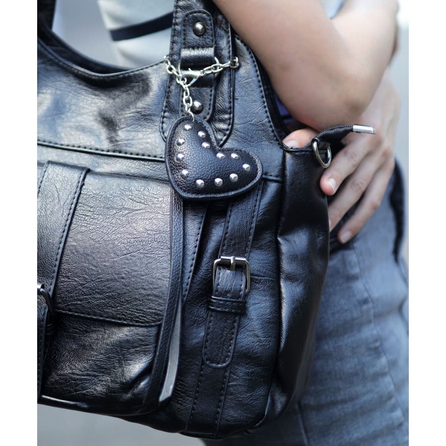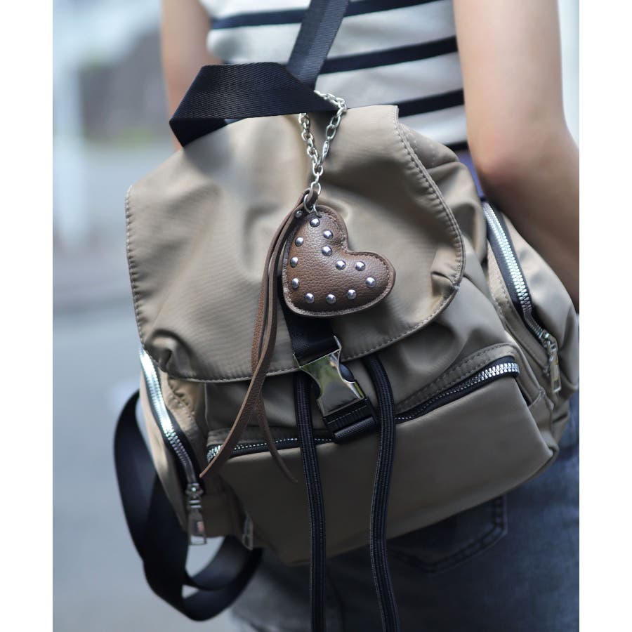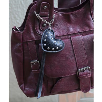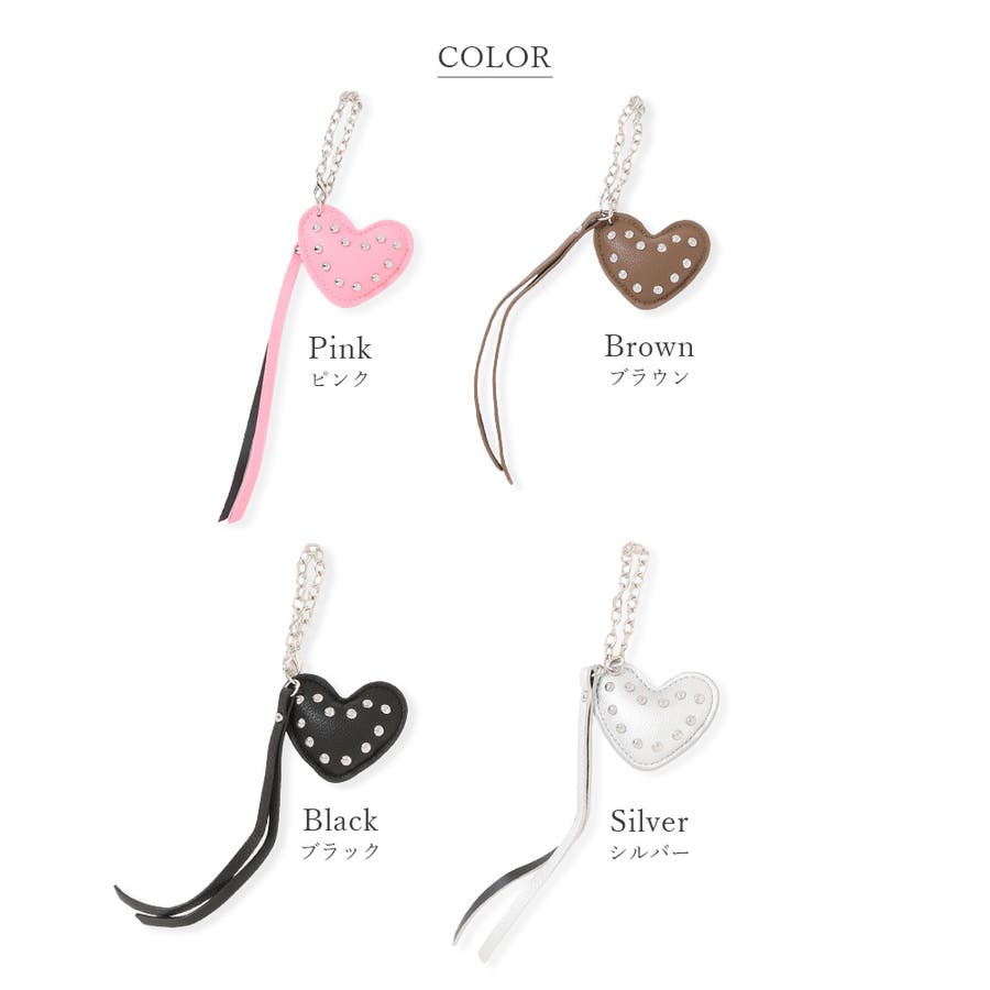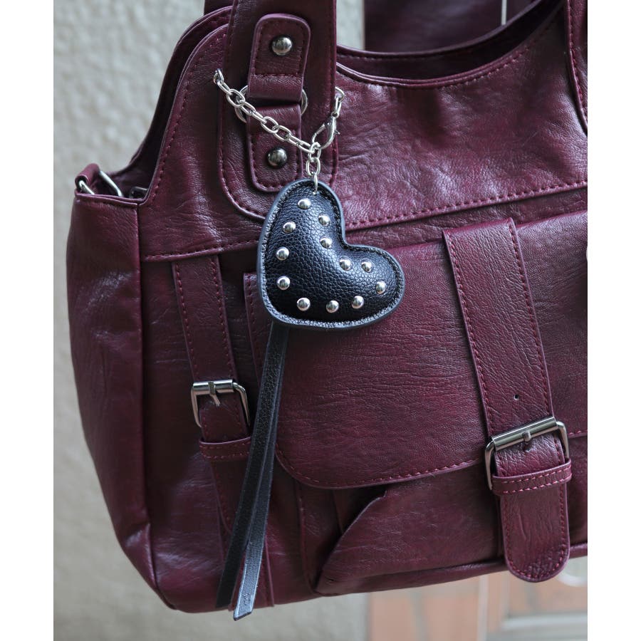 ハートレザーにスタッズをあしらい、韓国系Y2Kロックテイストに仕上げたバッグチャーム。
