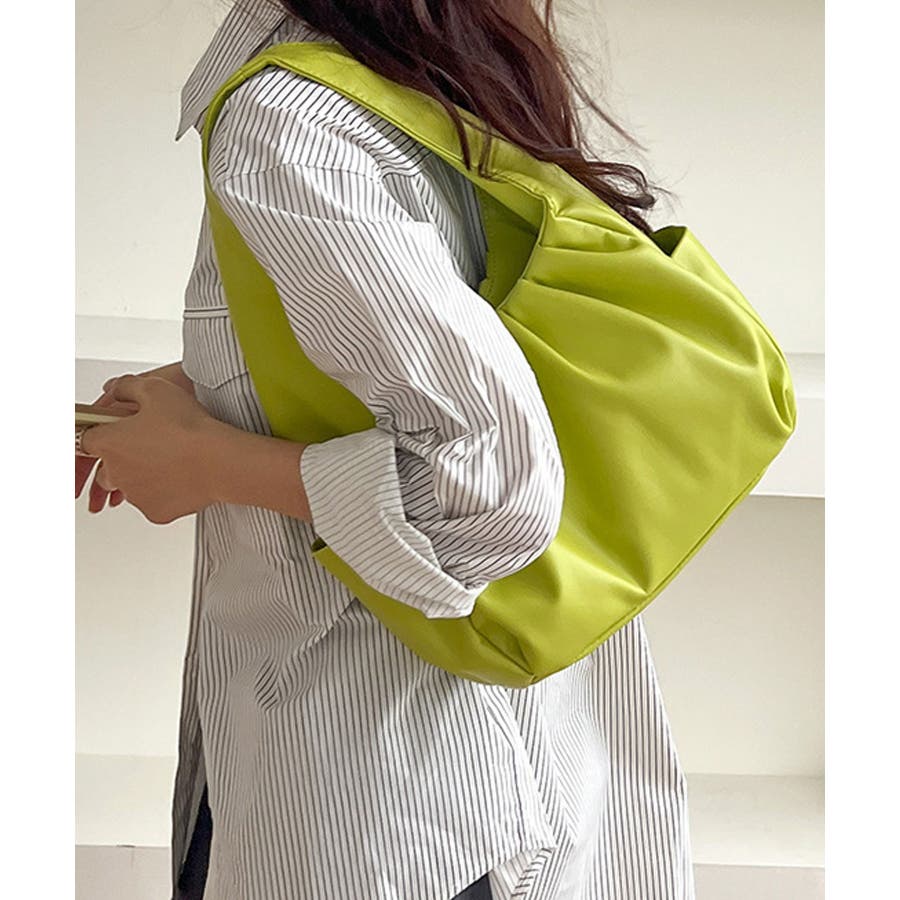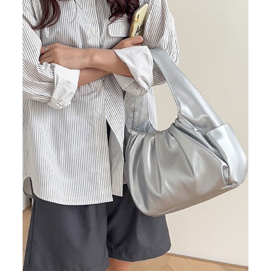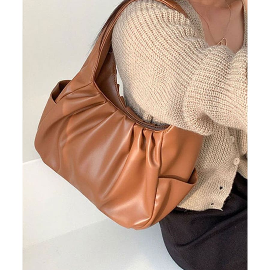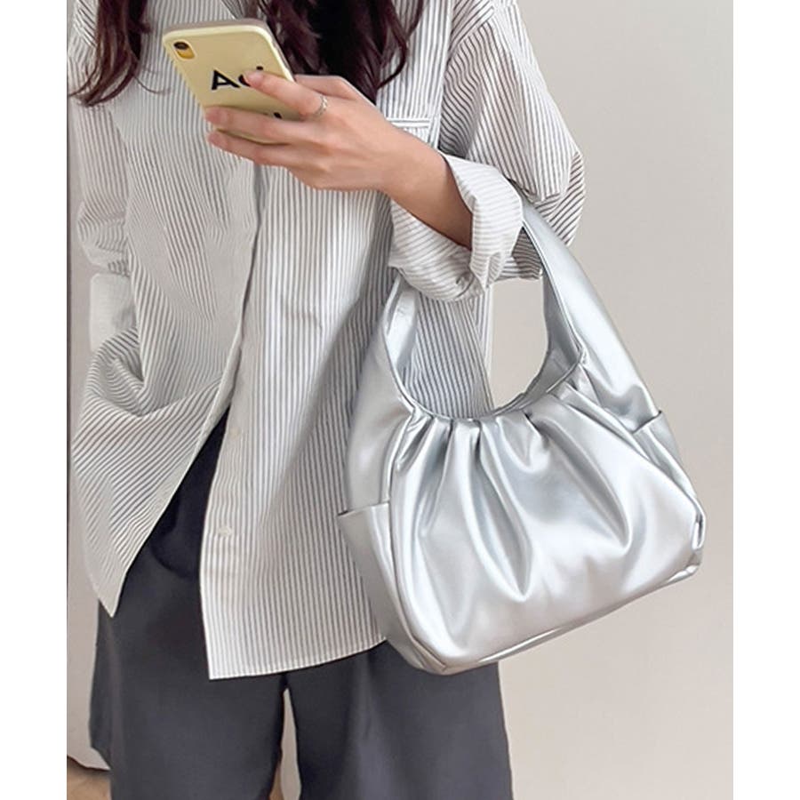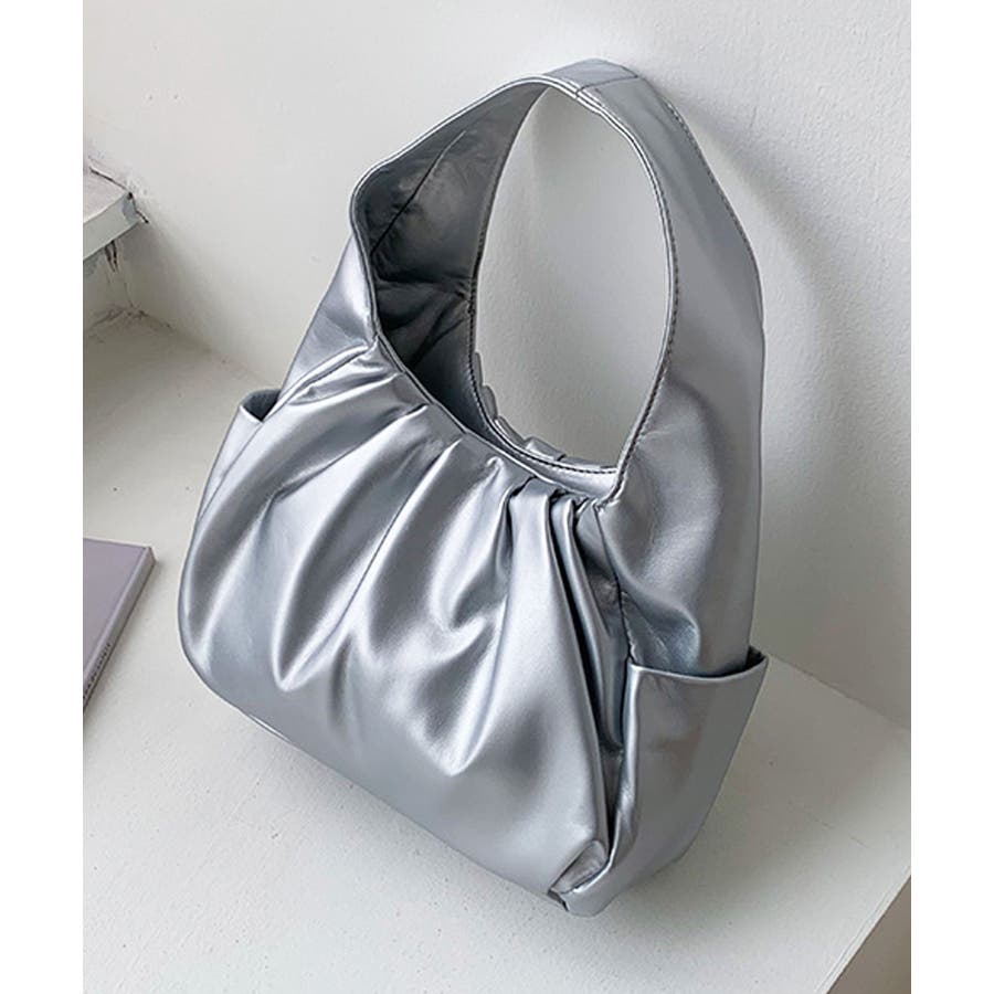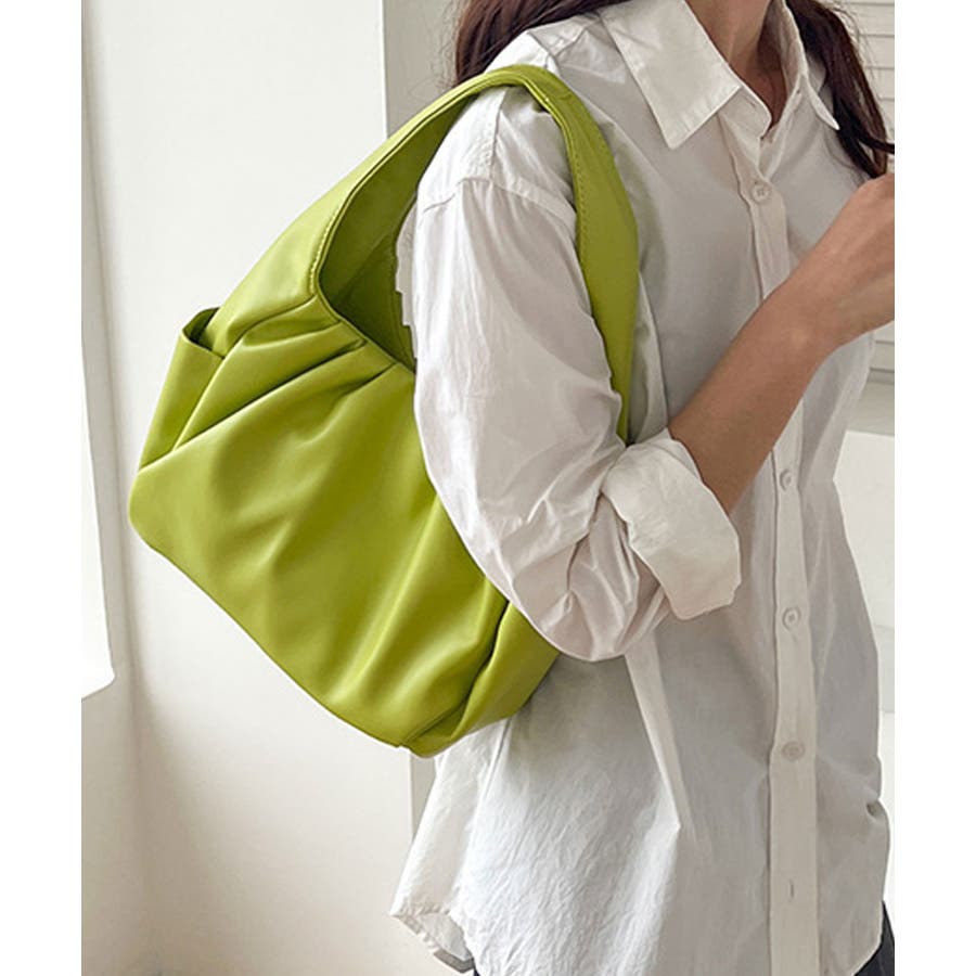 しっとりソフトなPUレザーを使用し、洗練されたギャザーアレンジが上品なハンドバッグ。