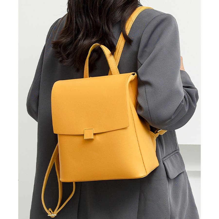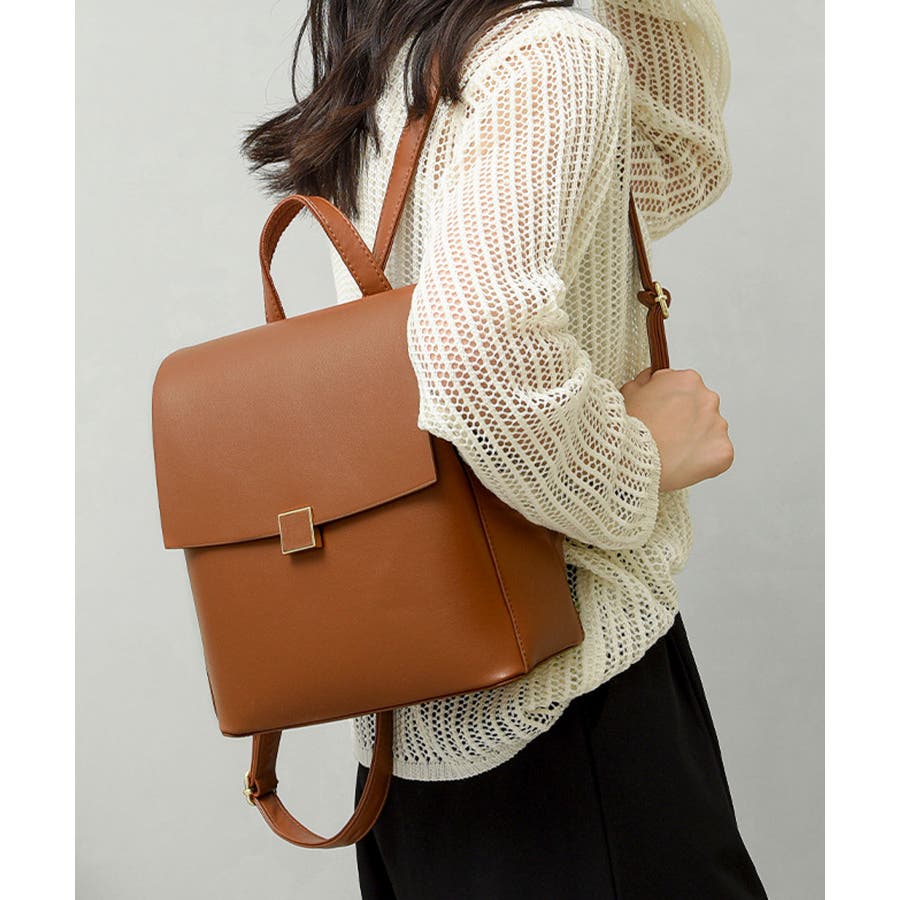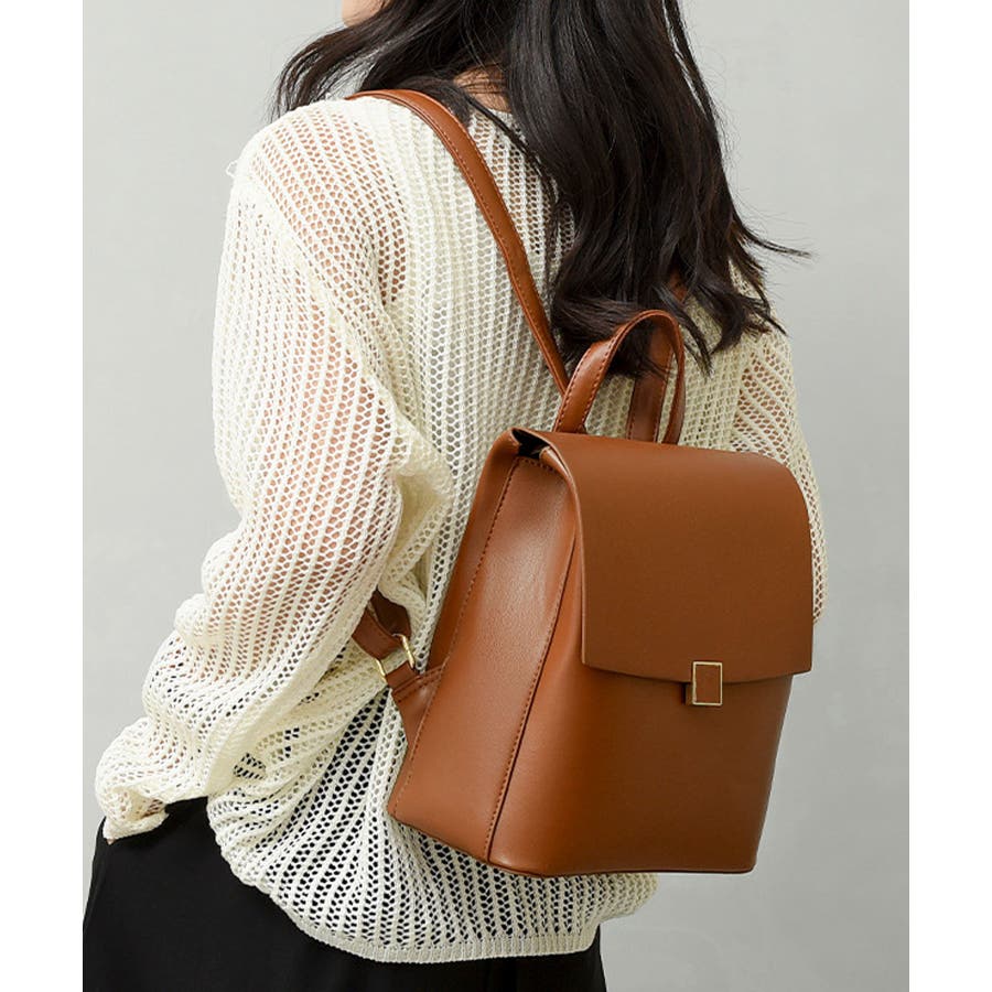 シボ感が高見えするシュリンクPUレザーを使用し、プレーンなデザインに仕立てたおしゃれなリュック。