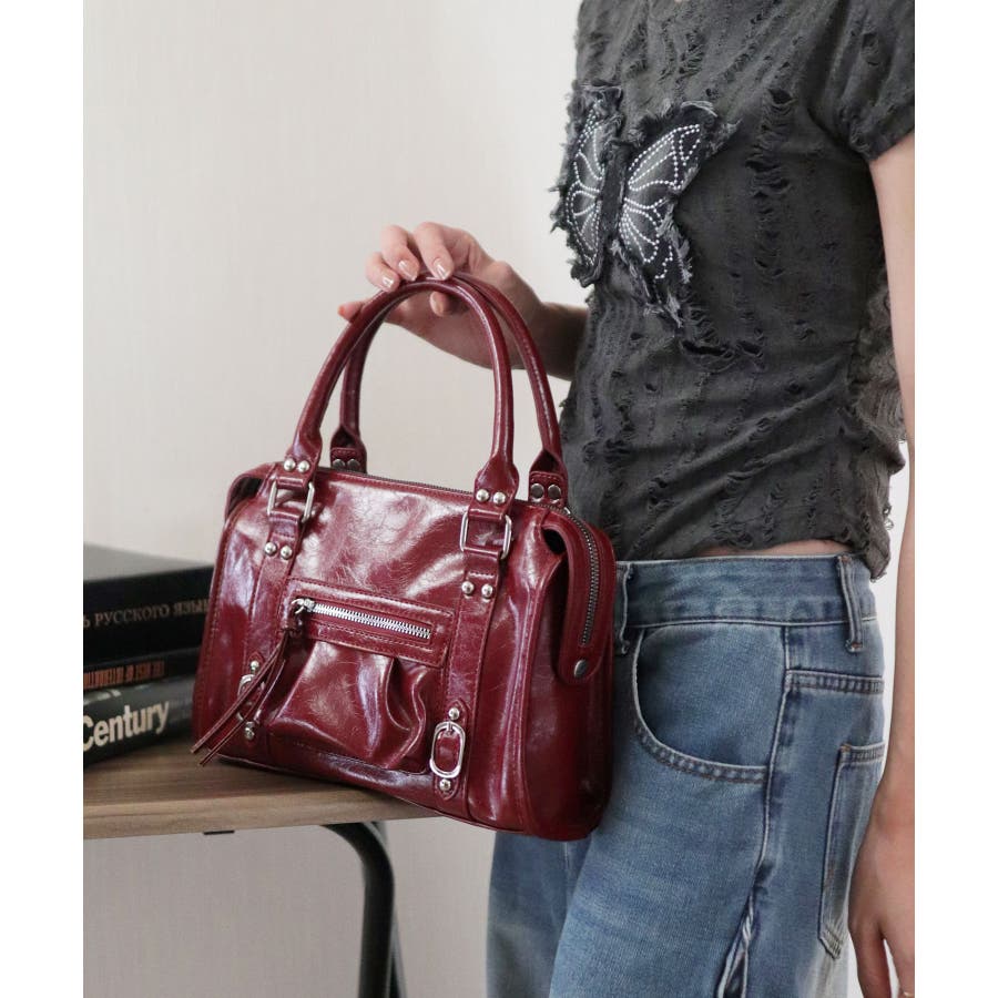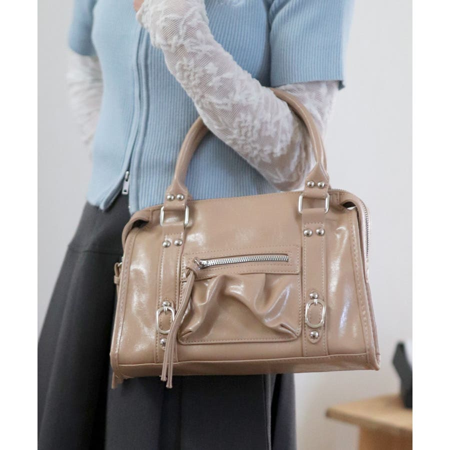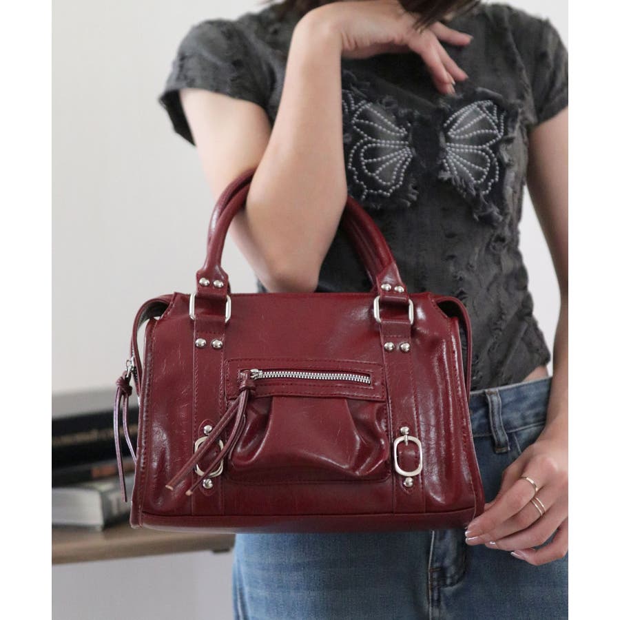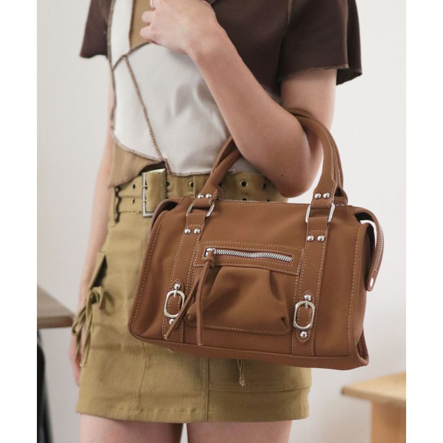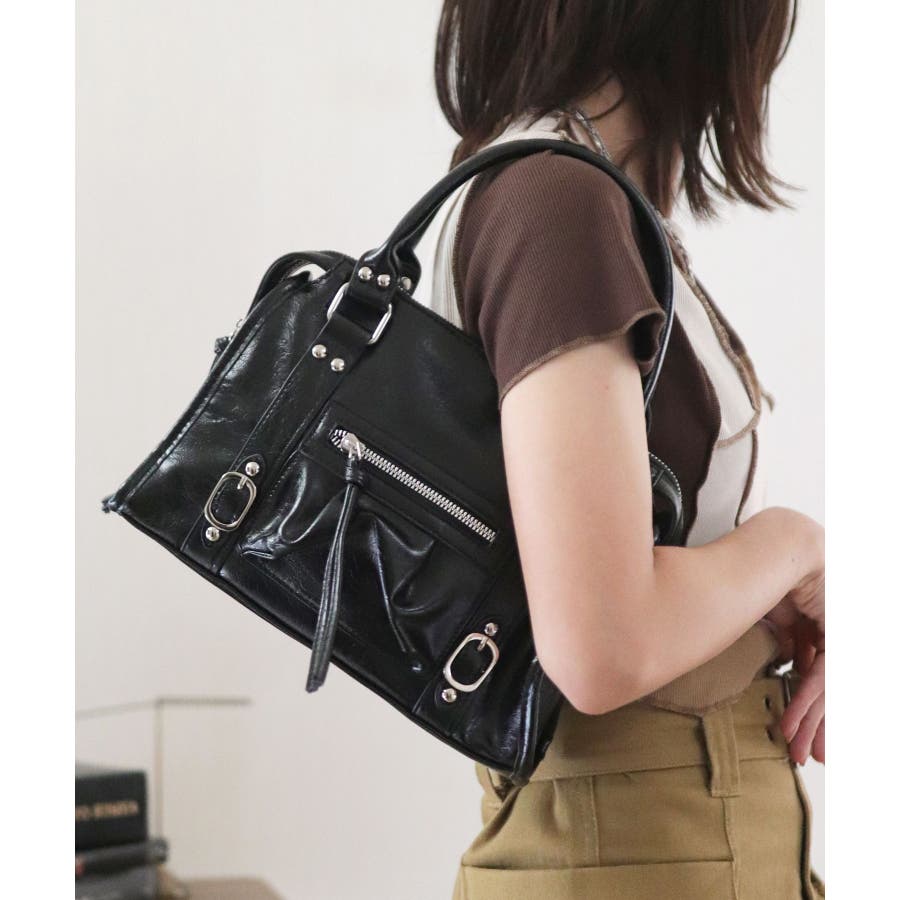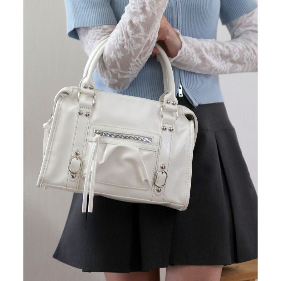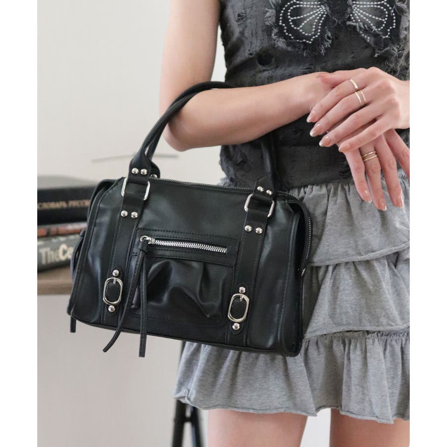 ハードな印象のサークルスタッズにベルトデザインを組み合わせた、トレンドライクな韓国Y2Kデザインのショルダーバッグ。