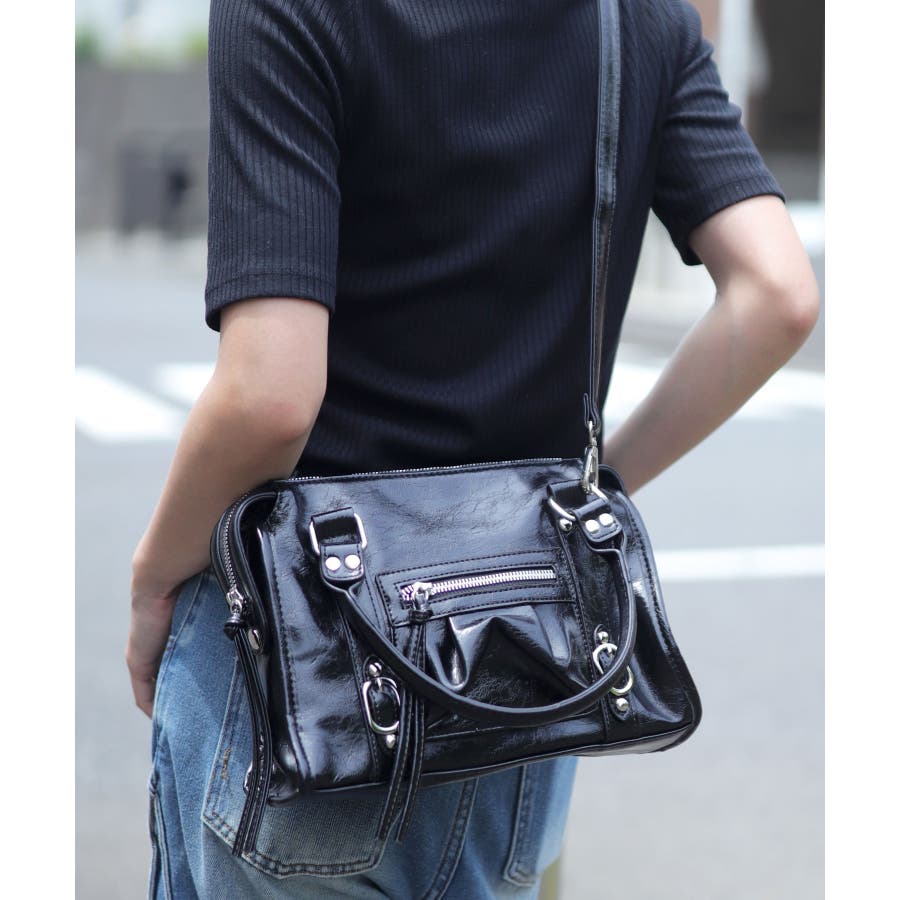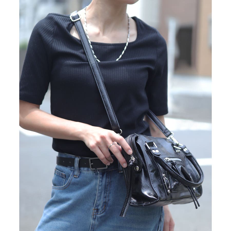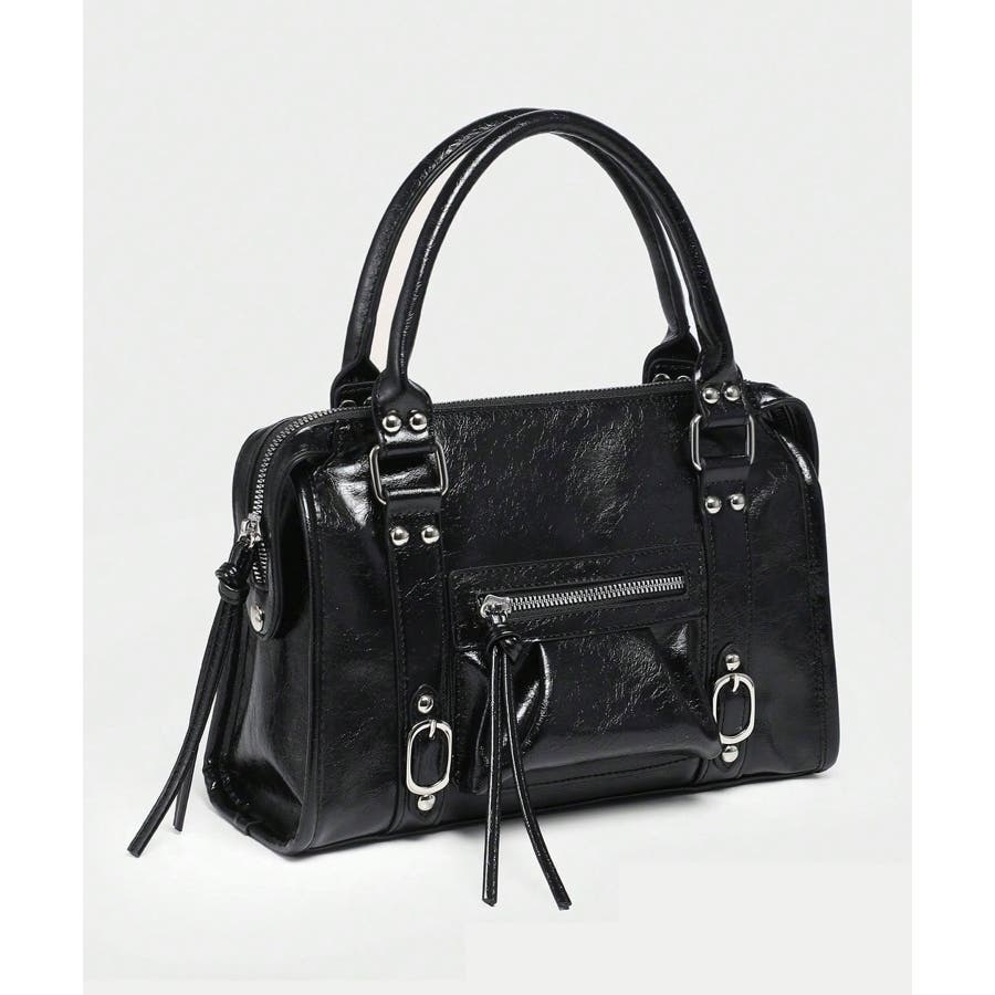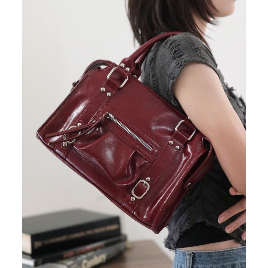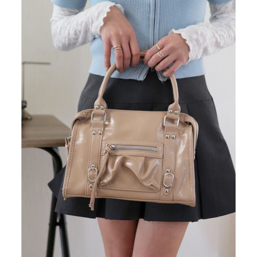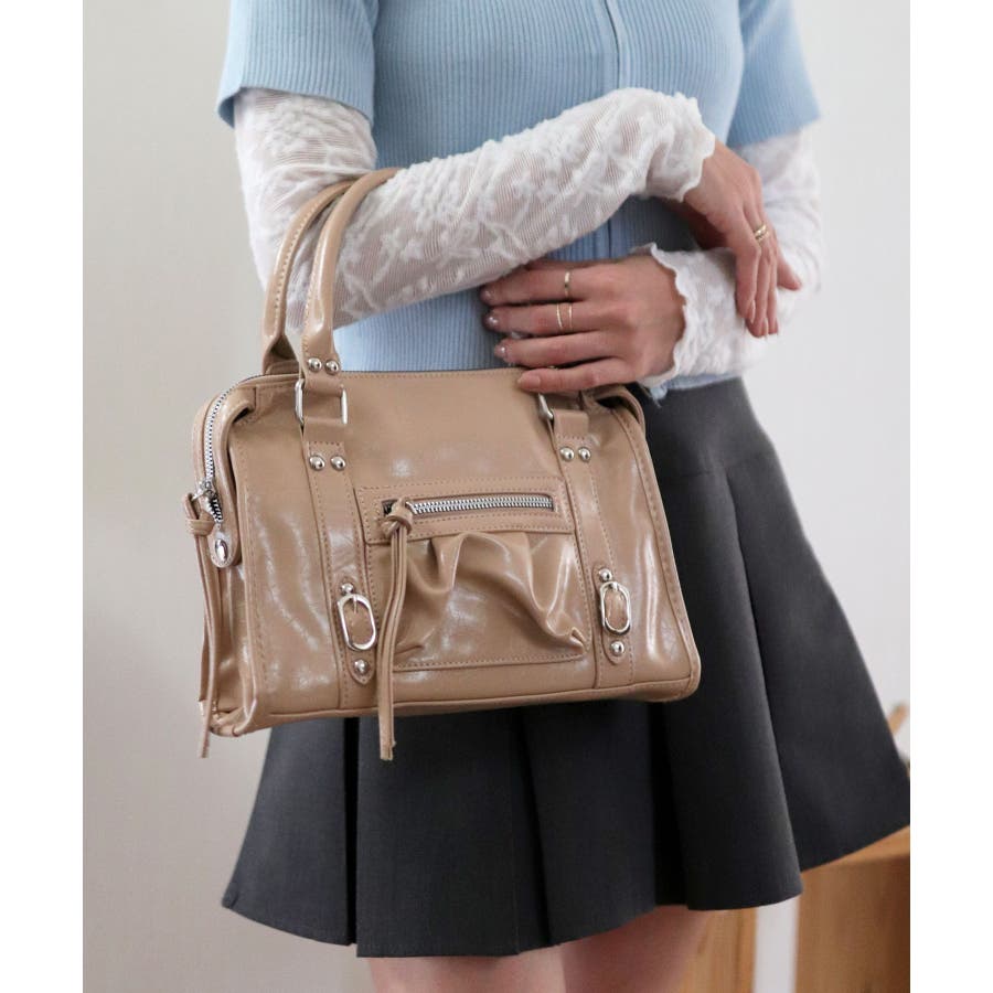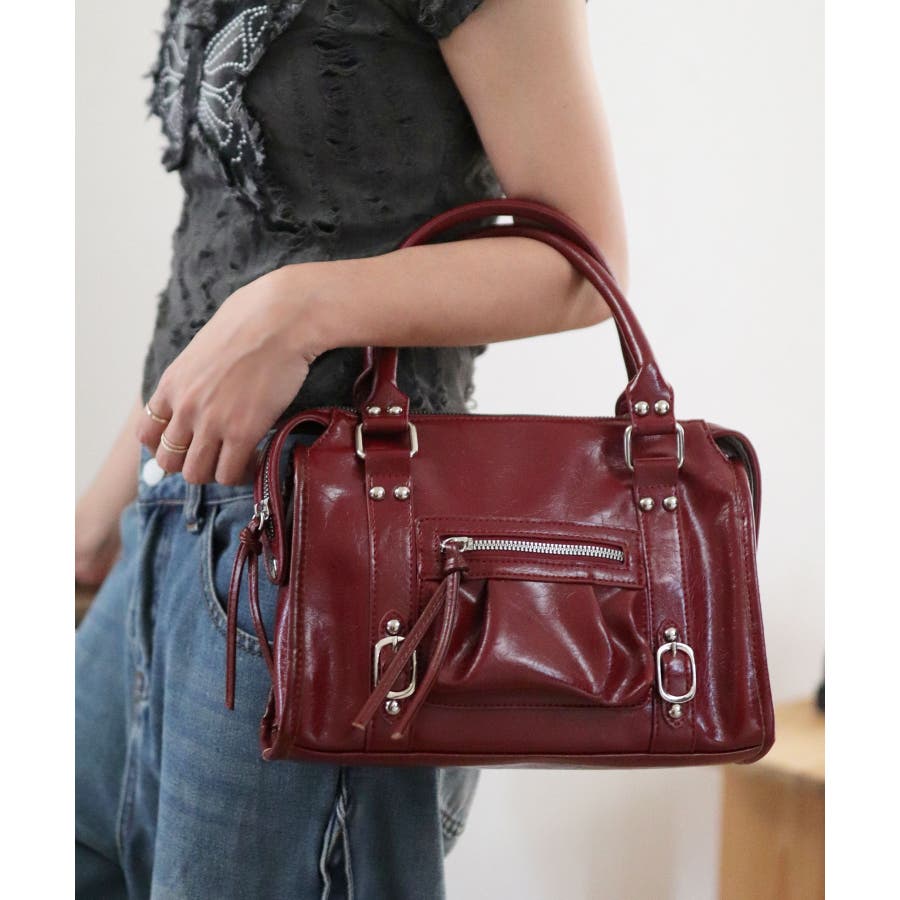 ハードな印象のサークルスタッズにベルトデザインを組み合わせた、トレンドライクな韓国Y2Kデザインのショルダーバッグ。