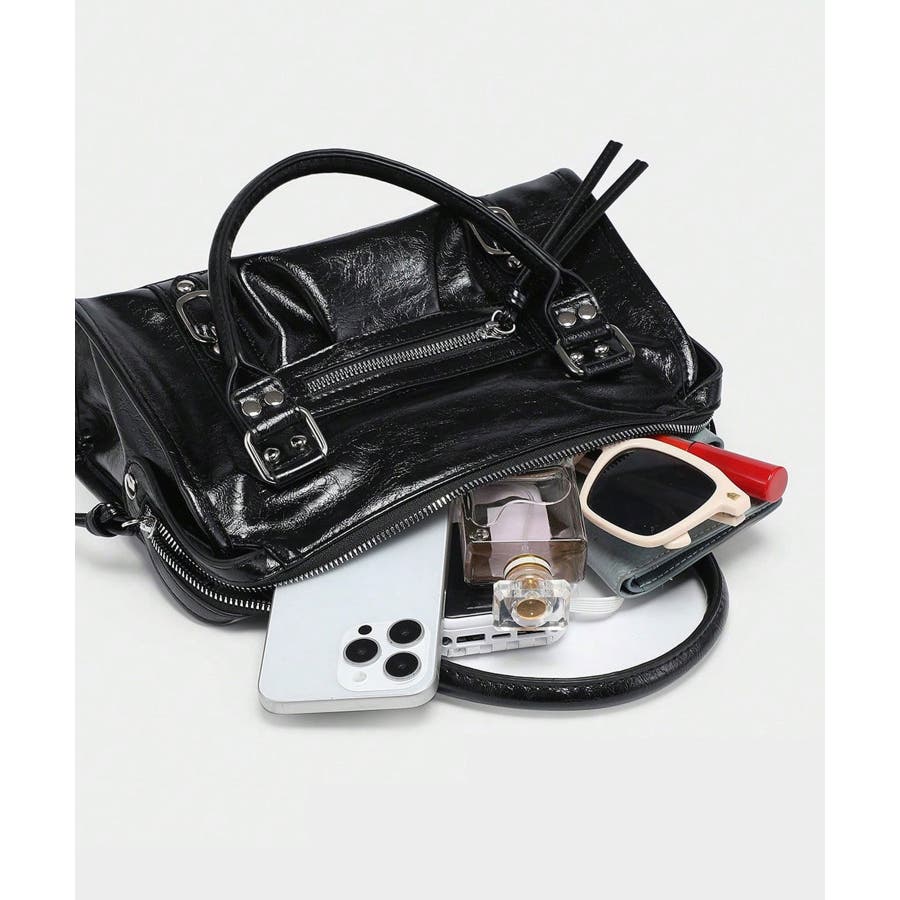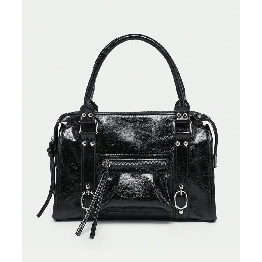 シルバースタッズスクエアボストンバッグ/ハンドバッグ/ショルダーバッグ。