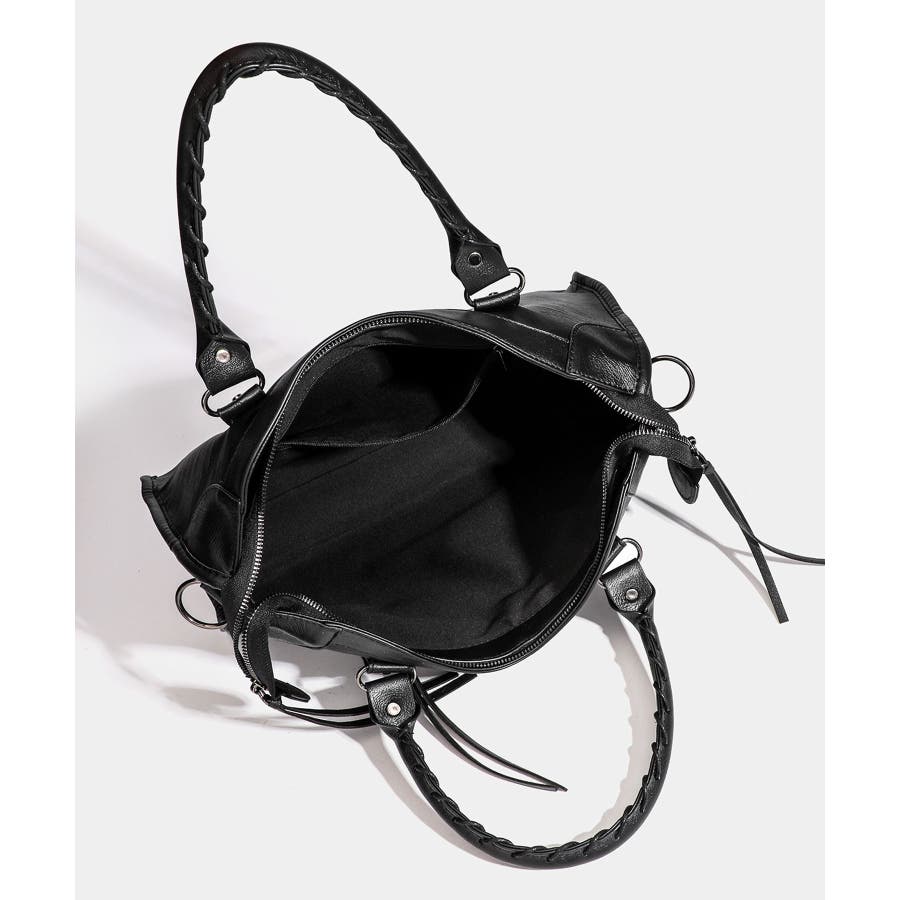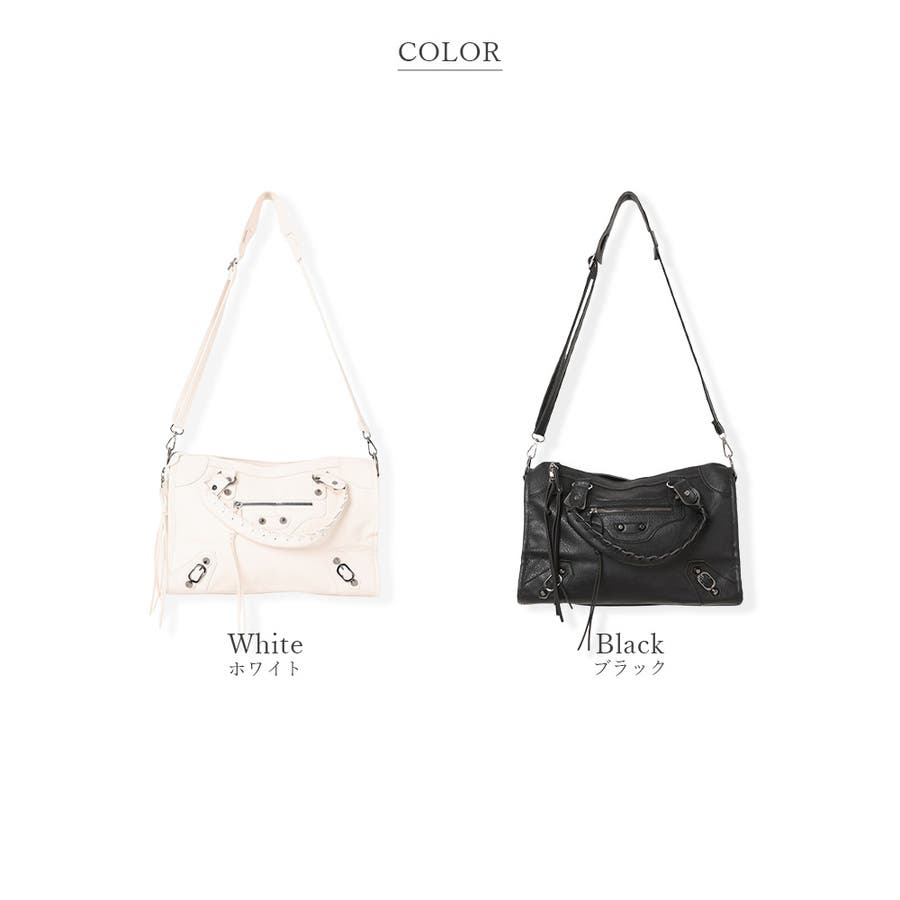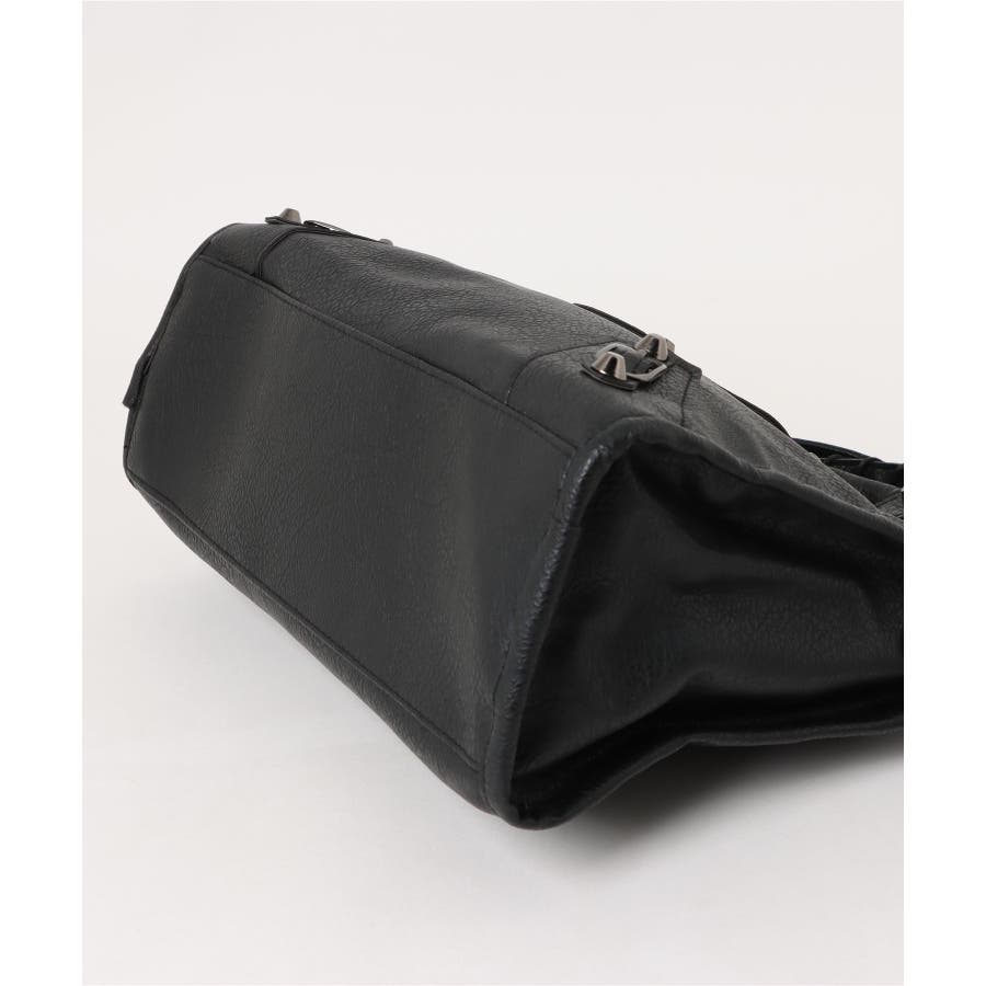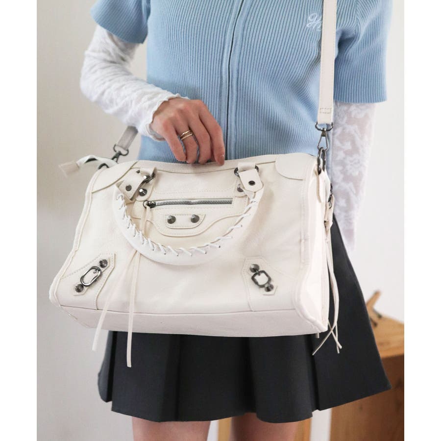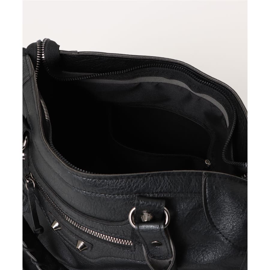 ハードな印象のサンカクスタッズにベルトデザインを組み合わせた、トレンドライクな韓国Y2Kデザインのボストンバッグ。