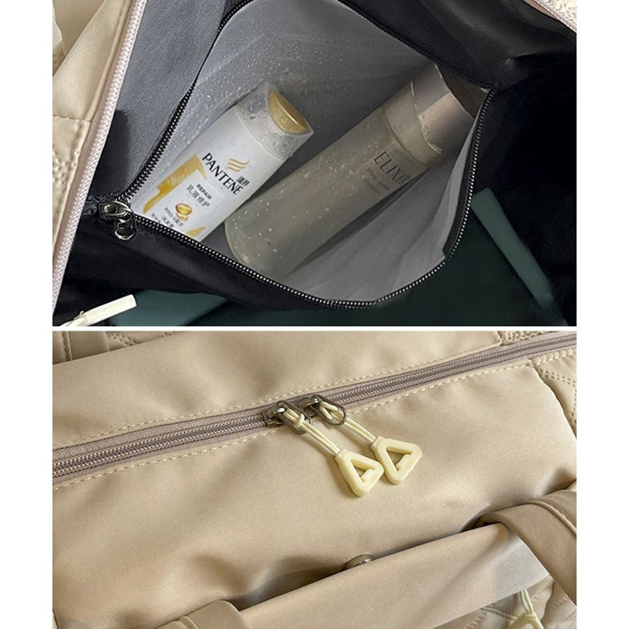 ・外側:ファスナーポケット中×1、マグネットボタン付ポケット大×1、サイドファスナーポケット×1、独立式シューズボックス×1