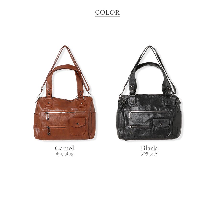 しっとりソフトなPUレザーを使用し、バラエティ豊かなポケットをあしらった大人かわいいショルダーバッグ。