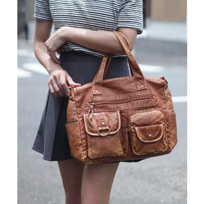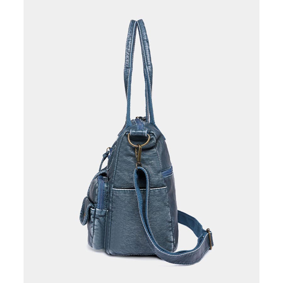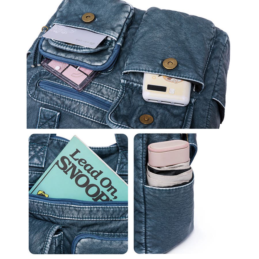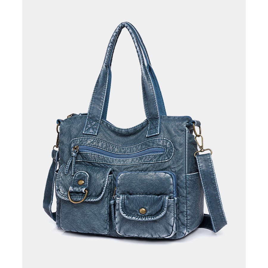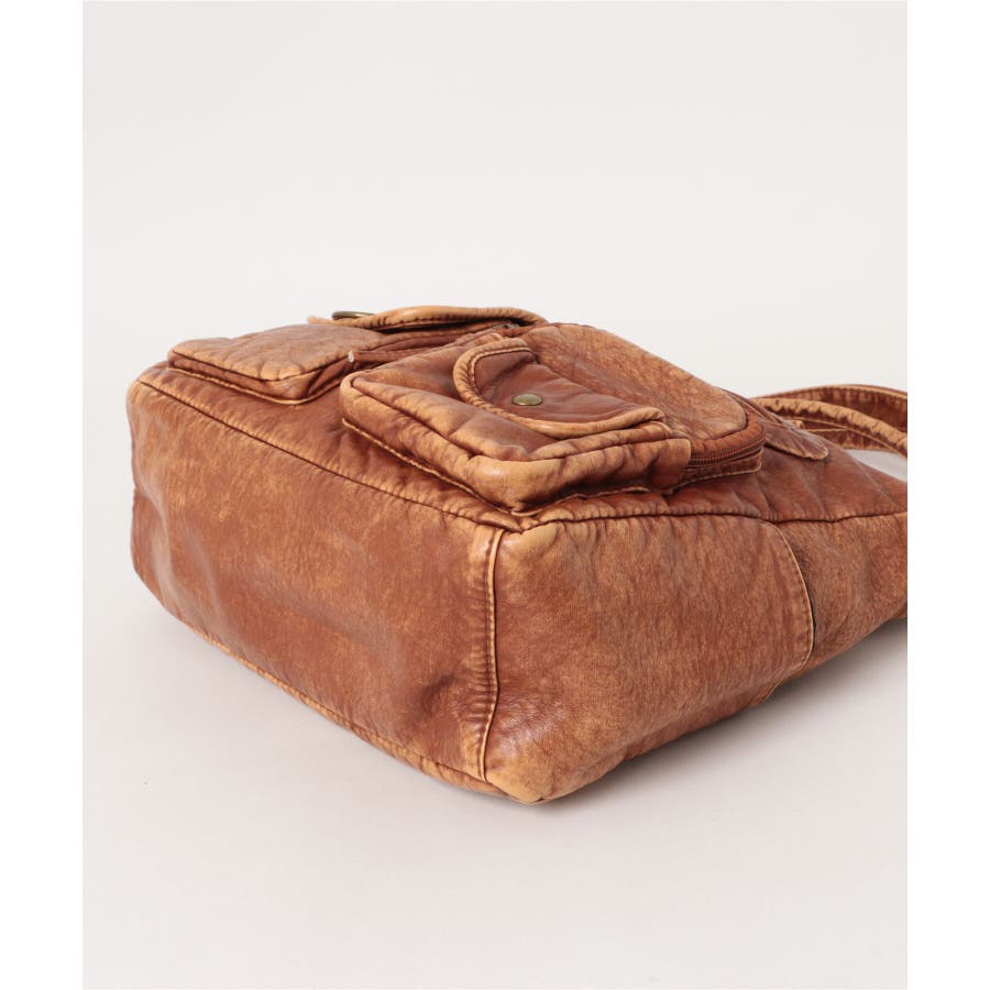 ヴィンテージ調PUレザーマルチポケットボストンバッグ/ハンドバッグ/ショルダーバッグ。