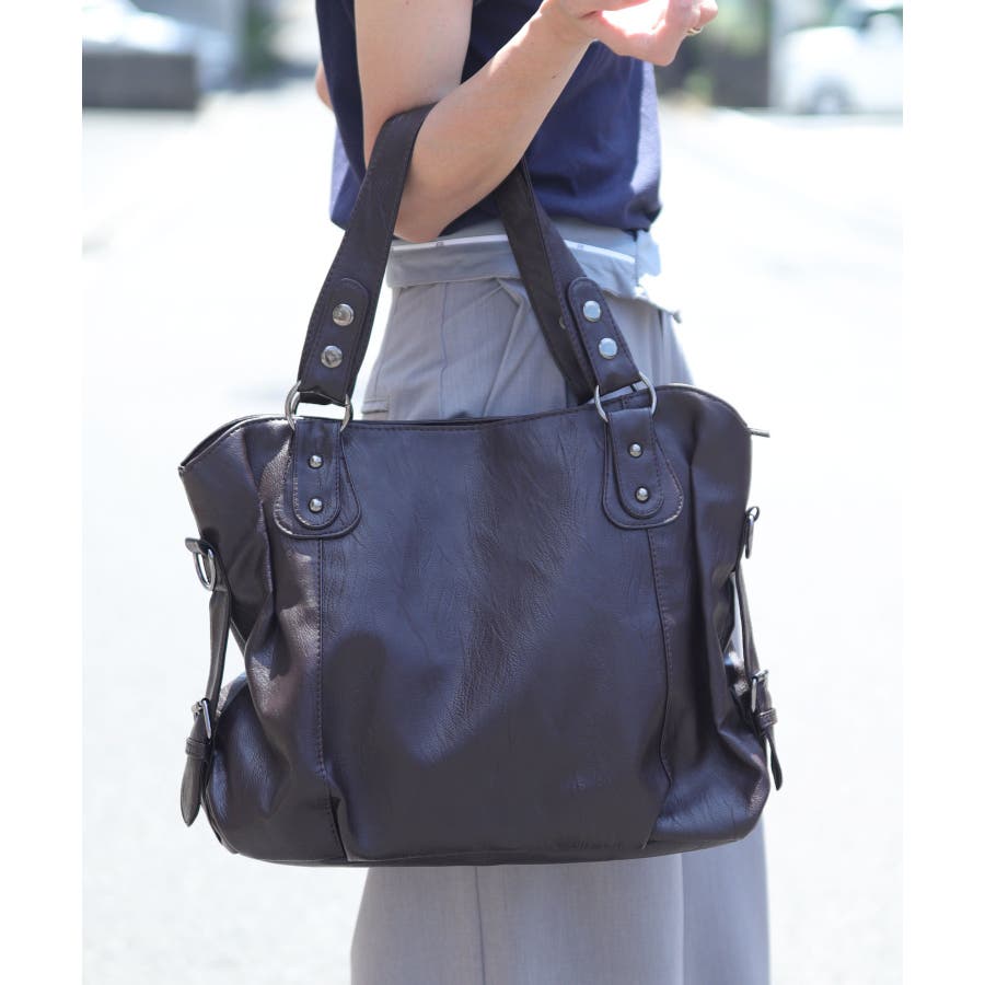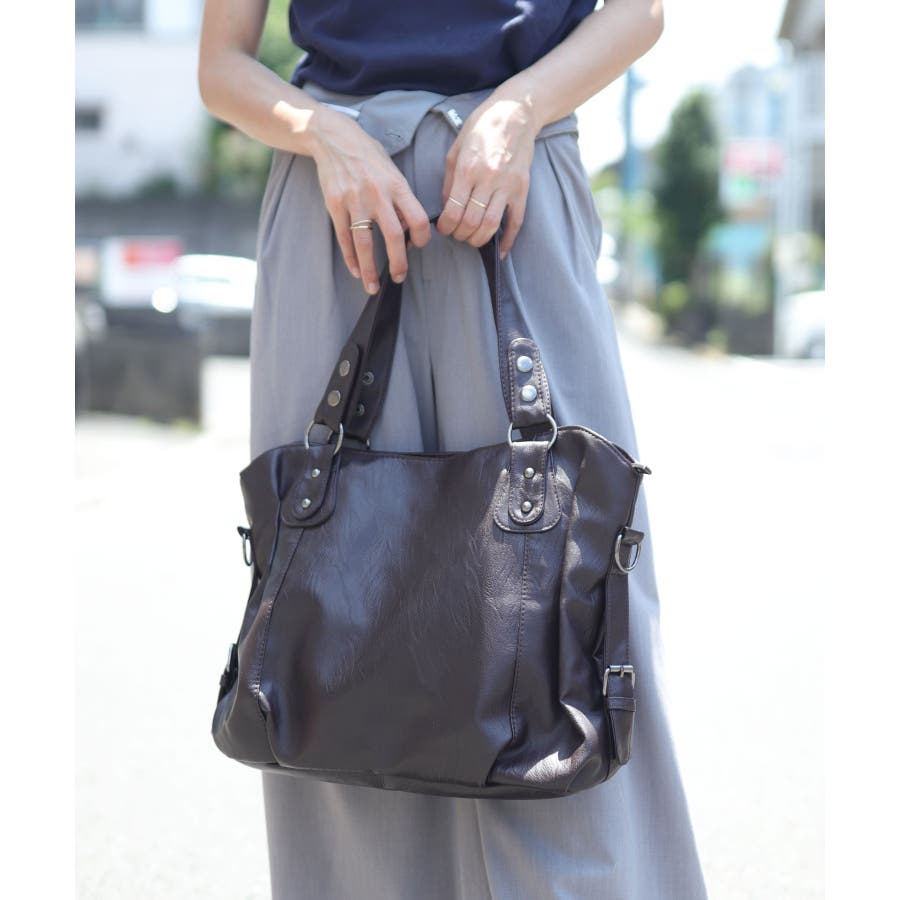 程よく艶あるワッシャーレザーを使用し、スタッズアクセントが大人かわいいショルダーバッグ。