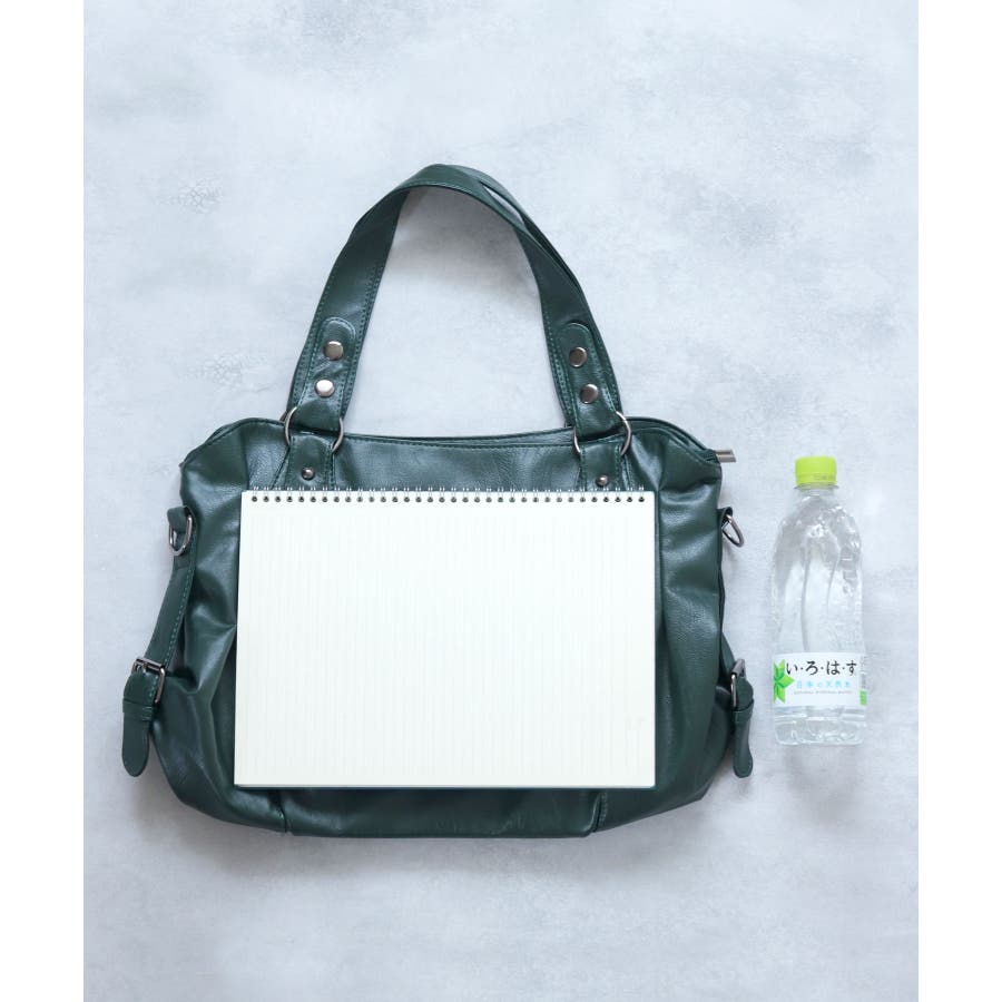 高さ28cm/横幅40cm/奥行(底マチ)11cmと大きめで、A4ノートや500mlペットボトル、ポーチ、長財布、ハンディファンが入る大容量◎