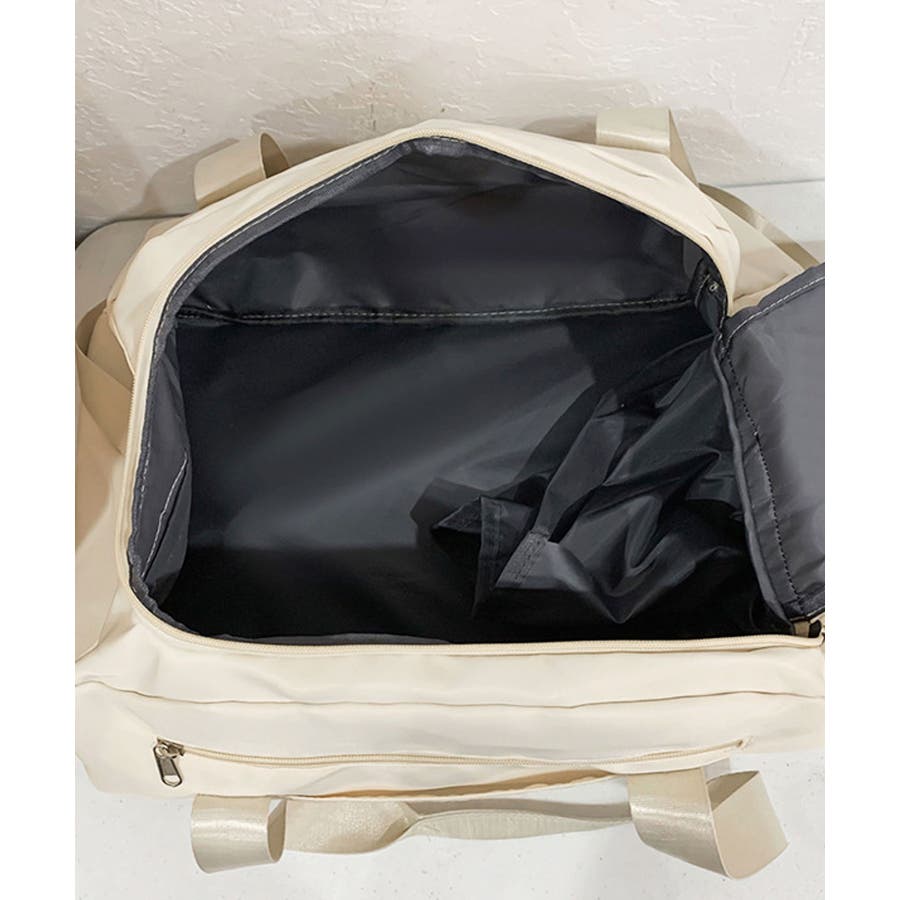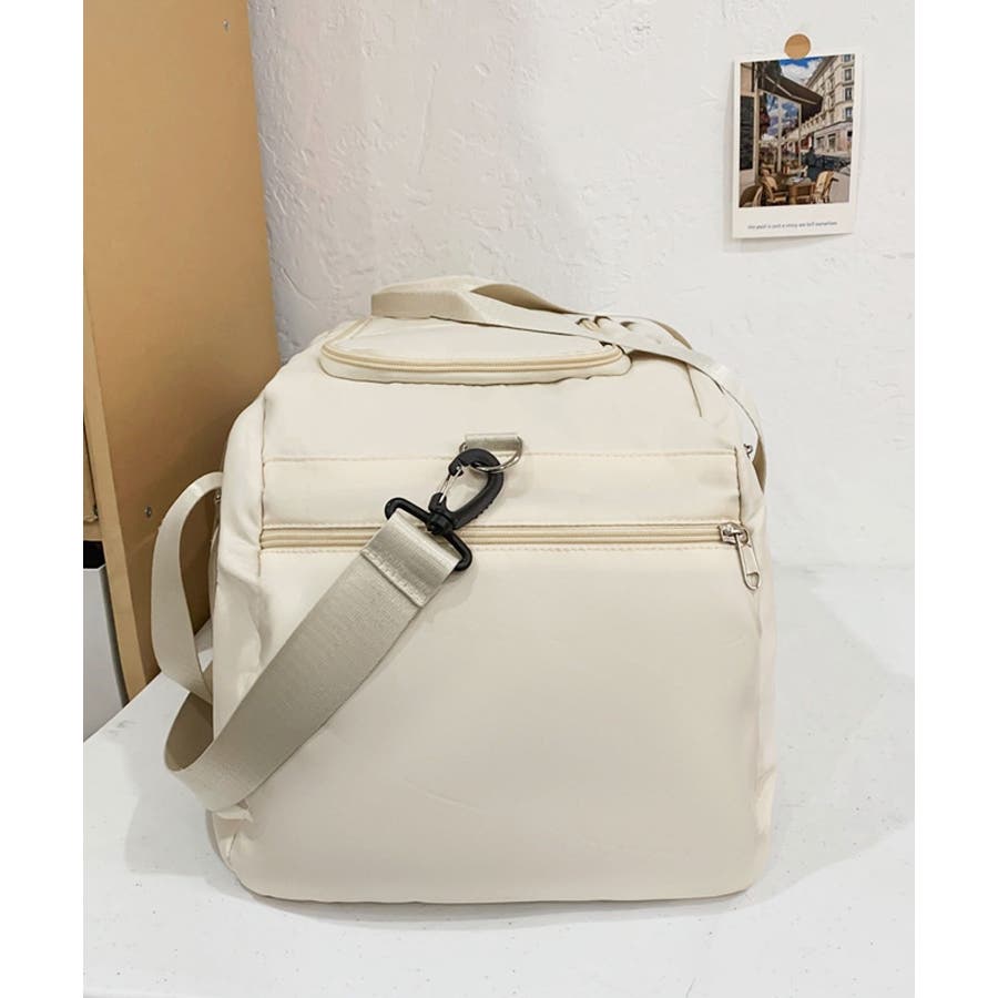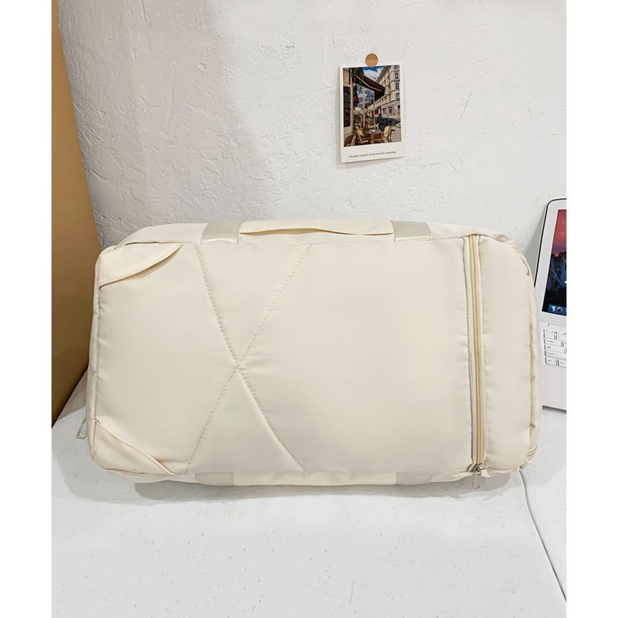 ・外側:ファスナーポケット中/小×各1、独立式シューズボックス×1、防水防湿ファスナーポケット×1、キャリーオンベルト