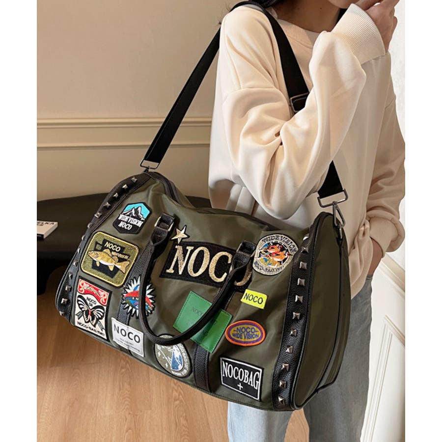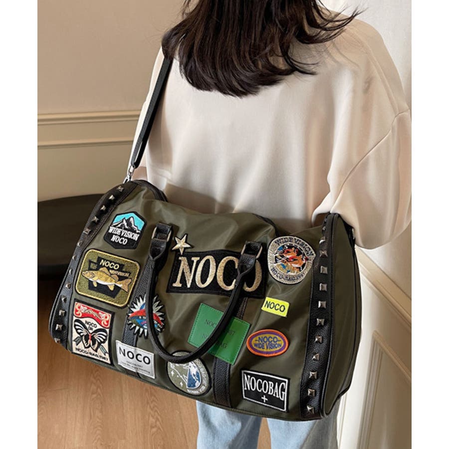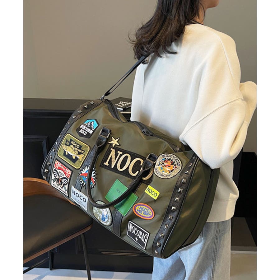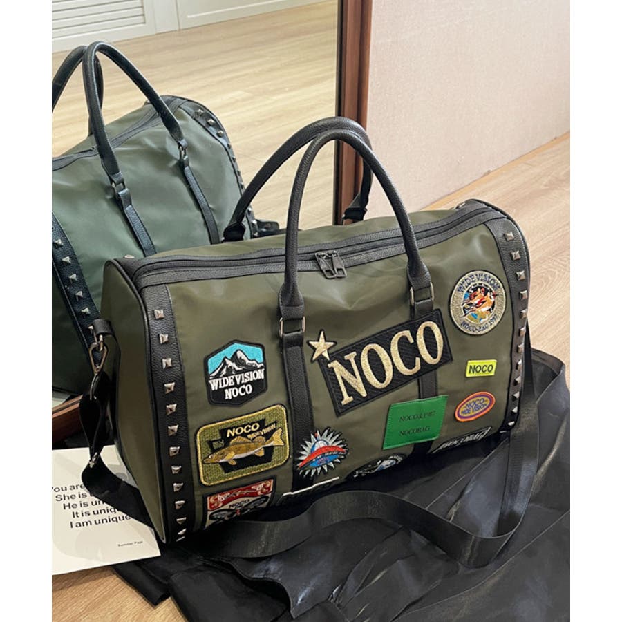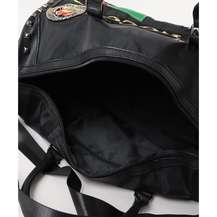 デザイン性の高い刺繍ワッペンを縫い付け、目に留まるストリート&ミリタリーデザインのボストンバッグ。