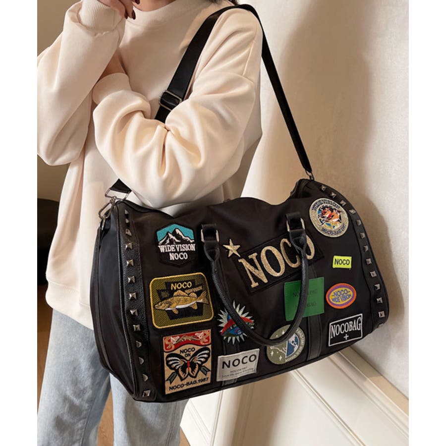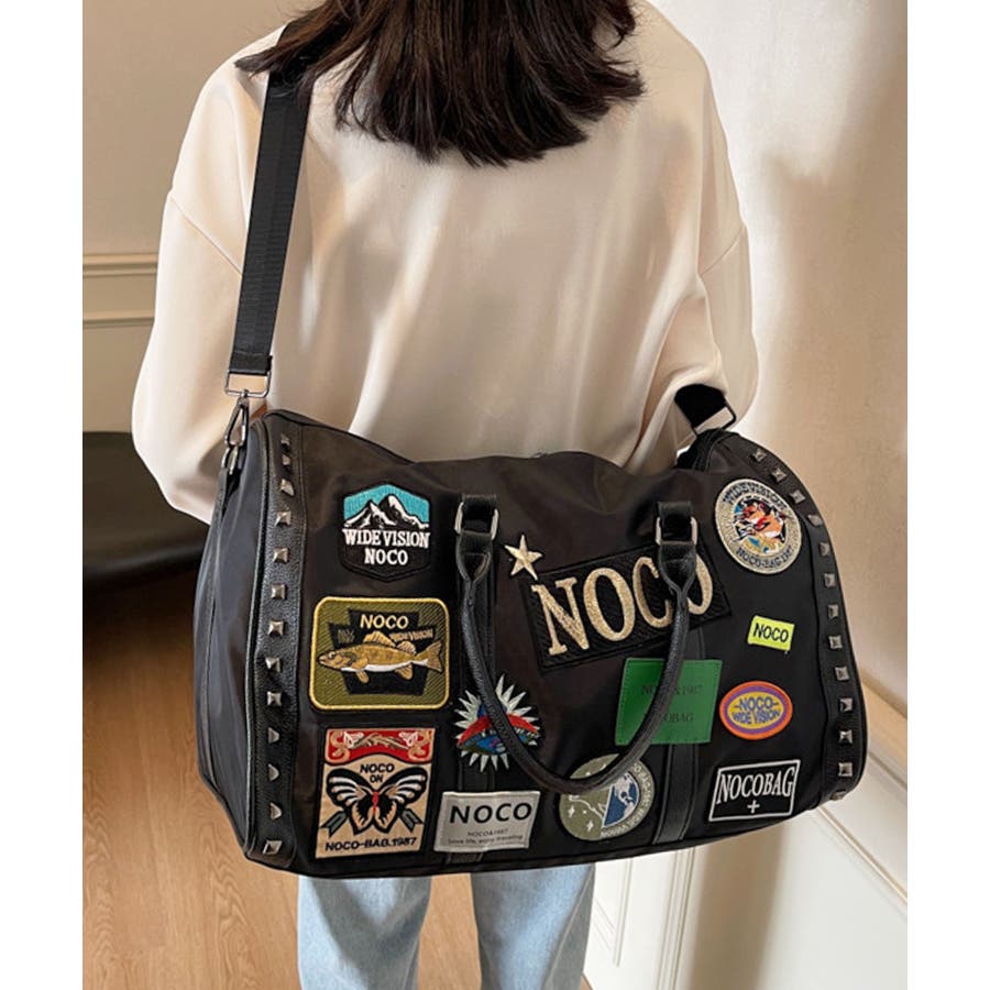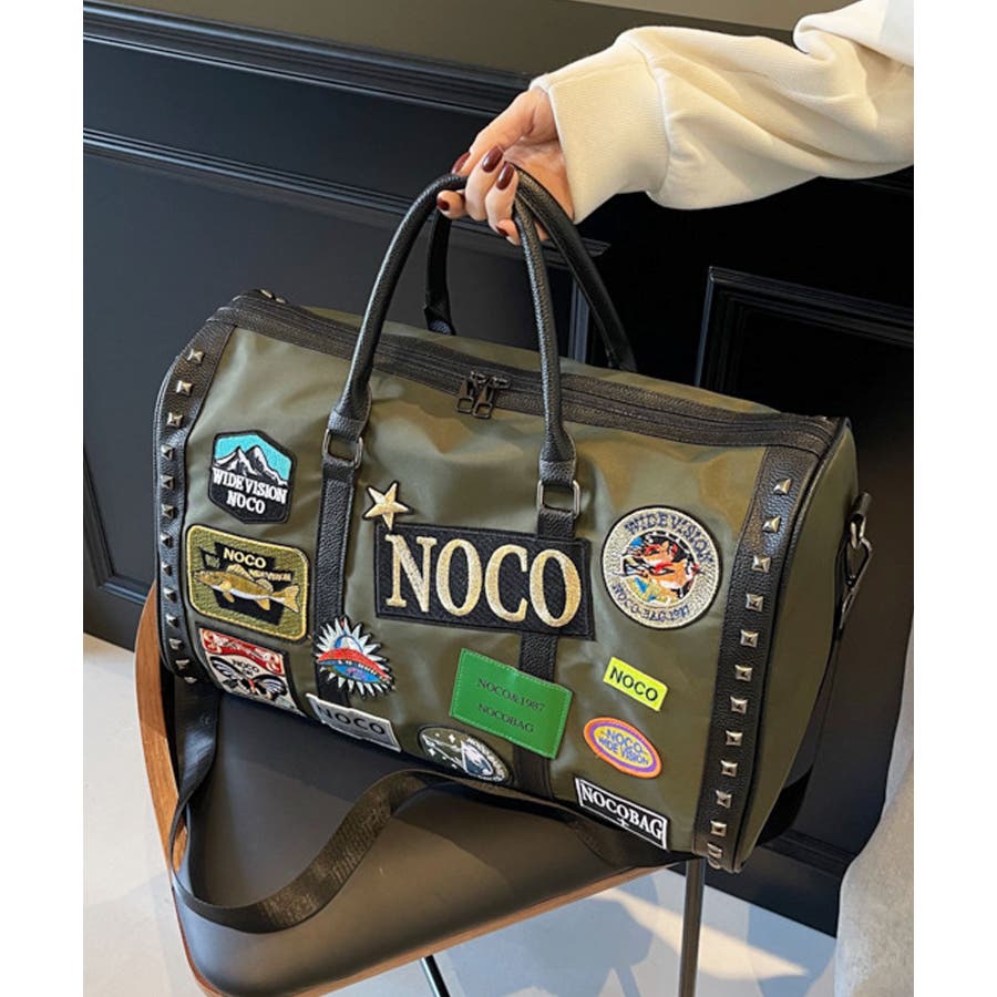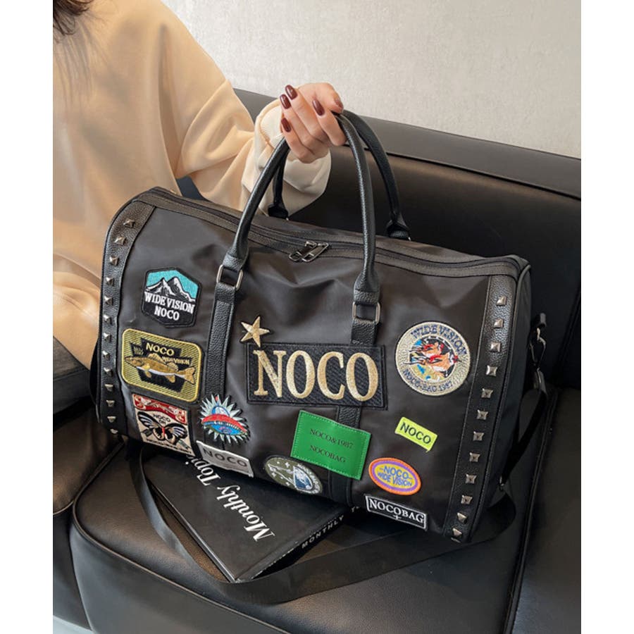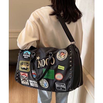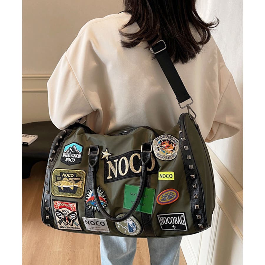デザイン性の高い刺繍ワッペンを縫い付け、目に留まるストリート&ミリタリーデザインのボストンバッグ。