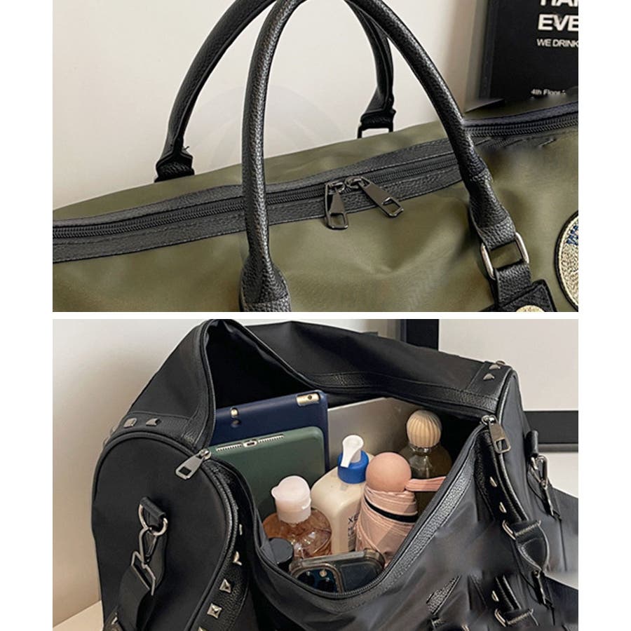 さらにガンメタスタッズをサイドに打ち付けることで、強めテイストをより印象付けるボストンバッグに。