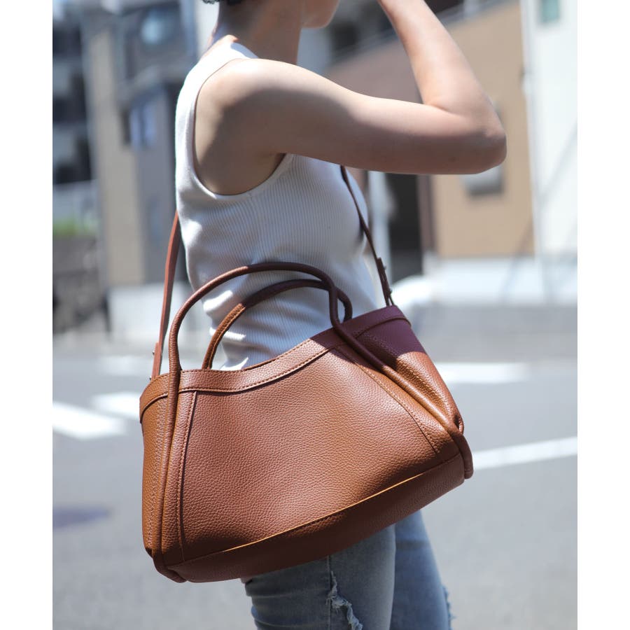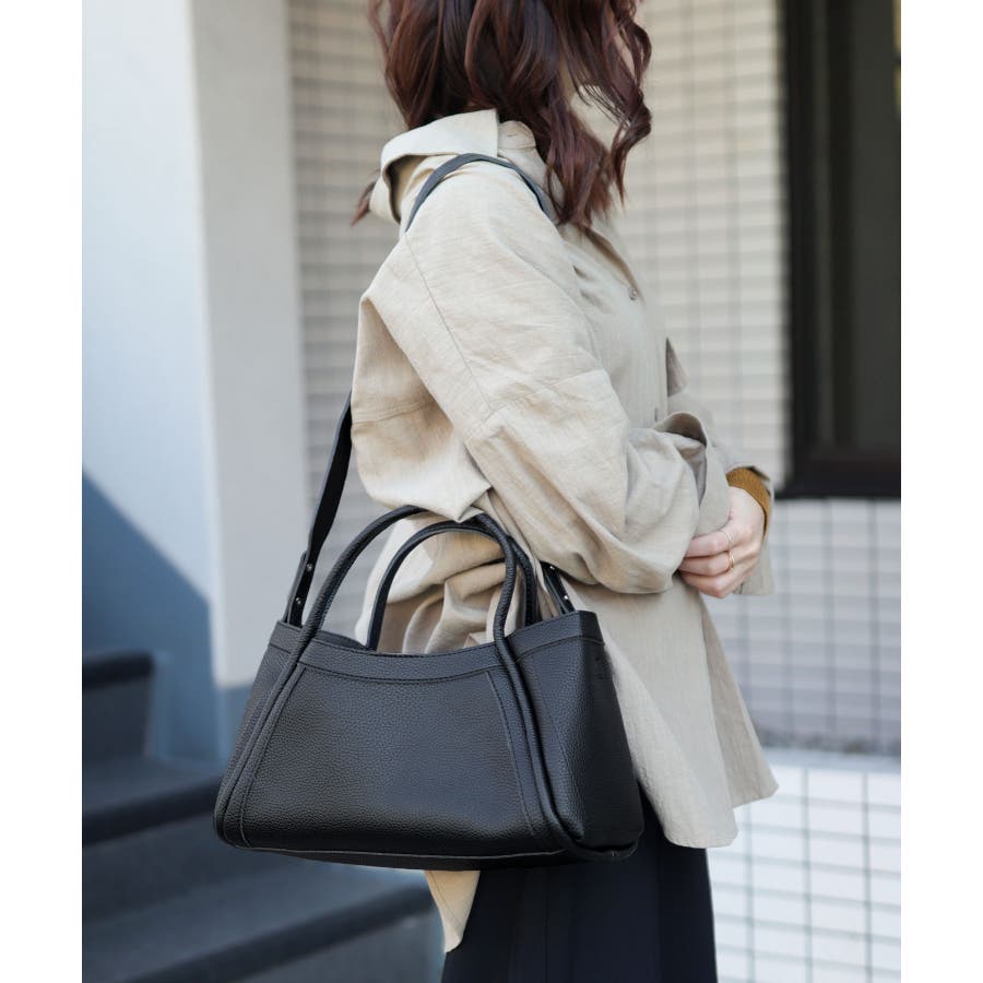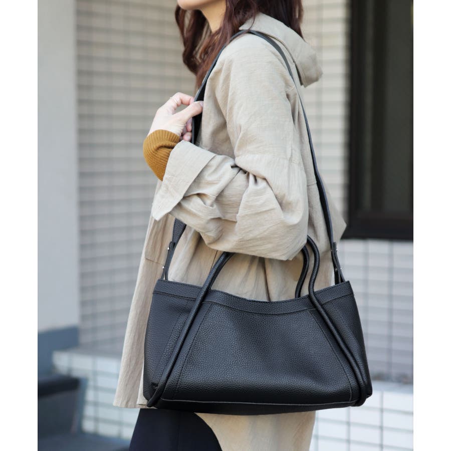 ミニマルな作りによってマテリアルの上質さが引き立ち、洗練された表情の大人のハンドバッグです。